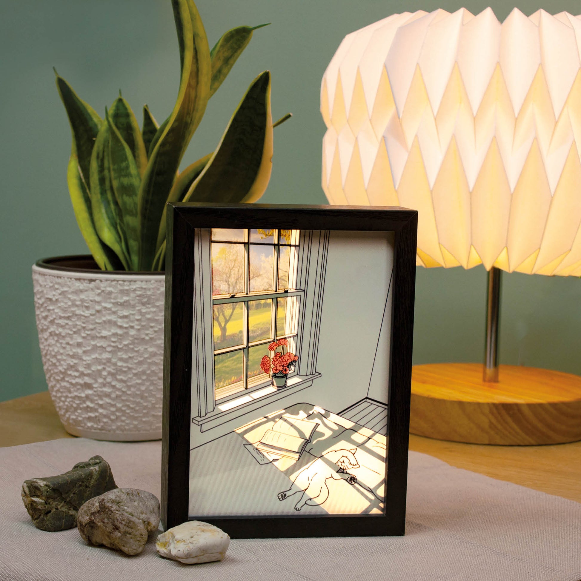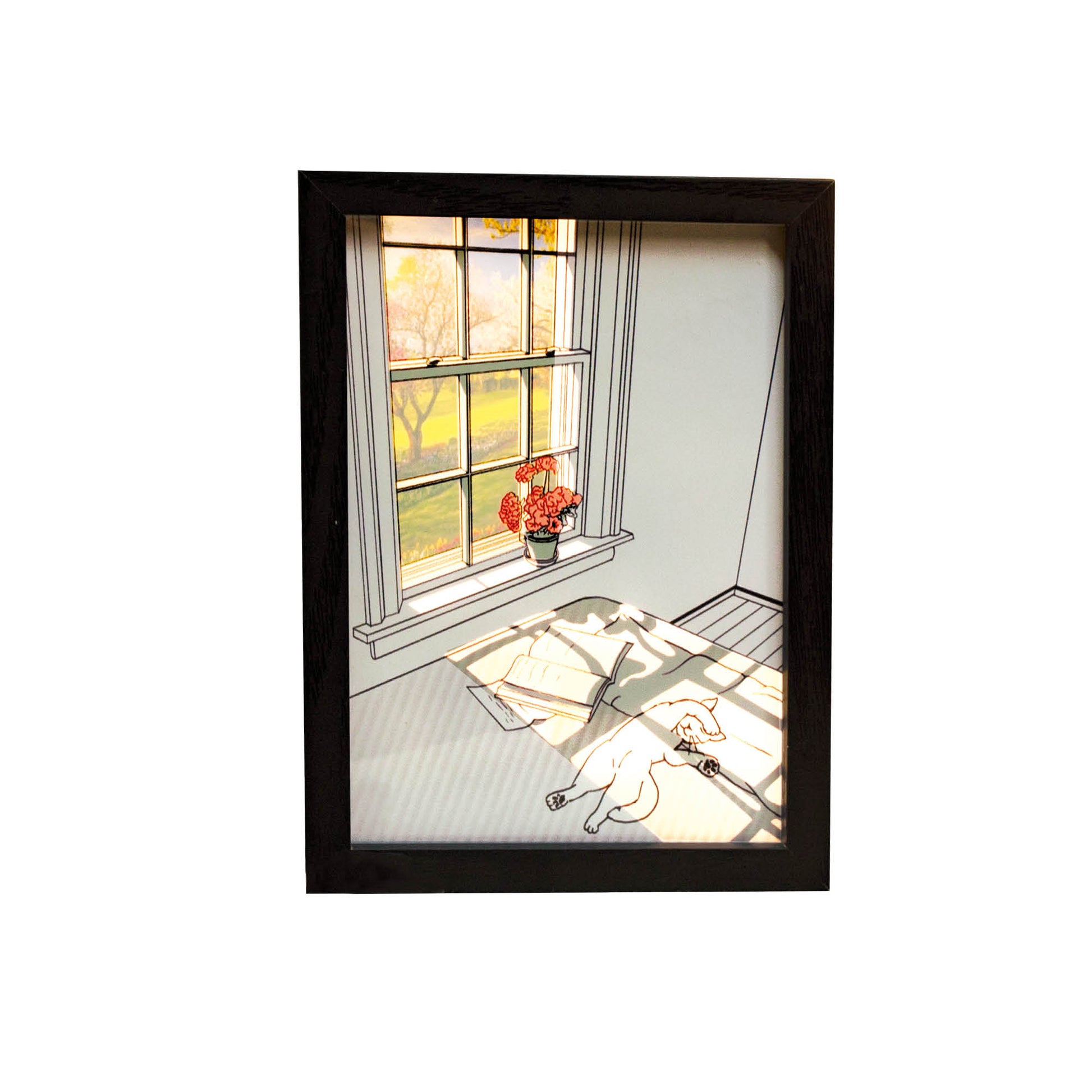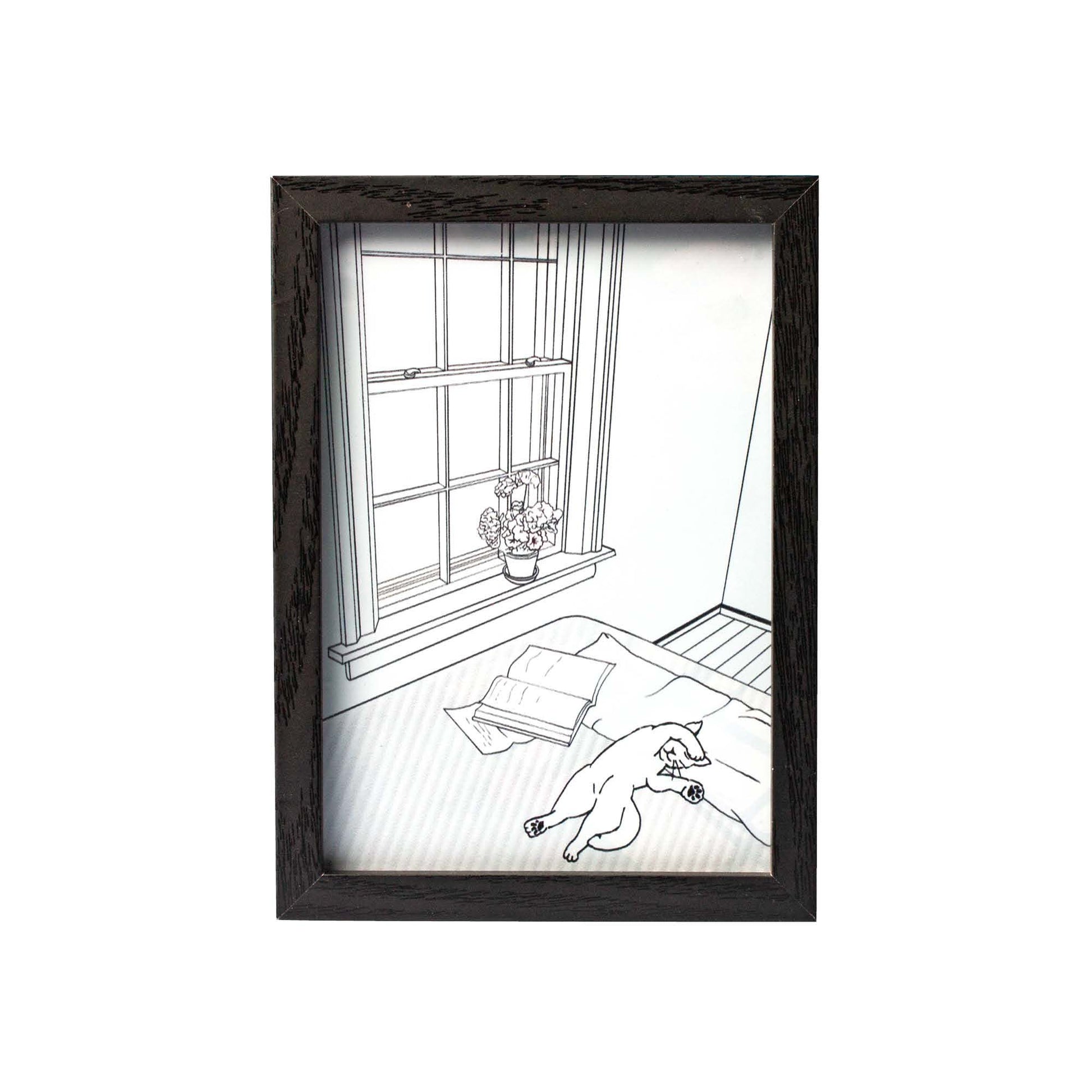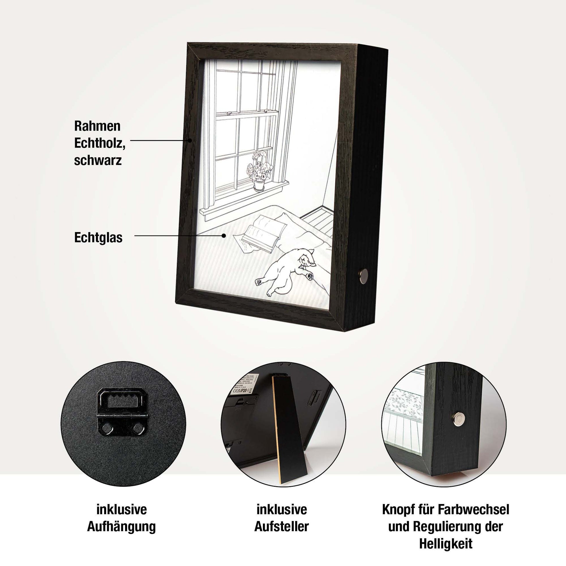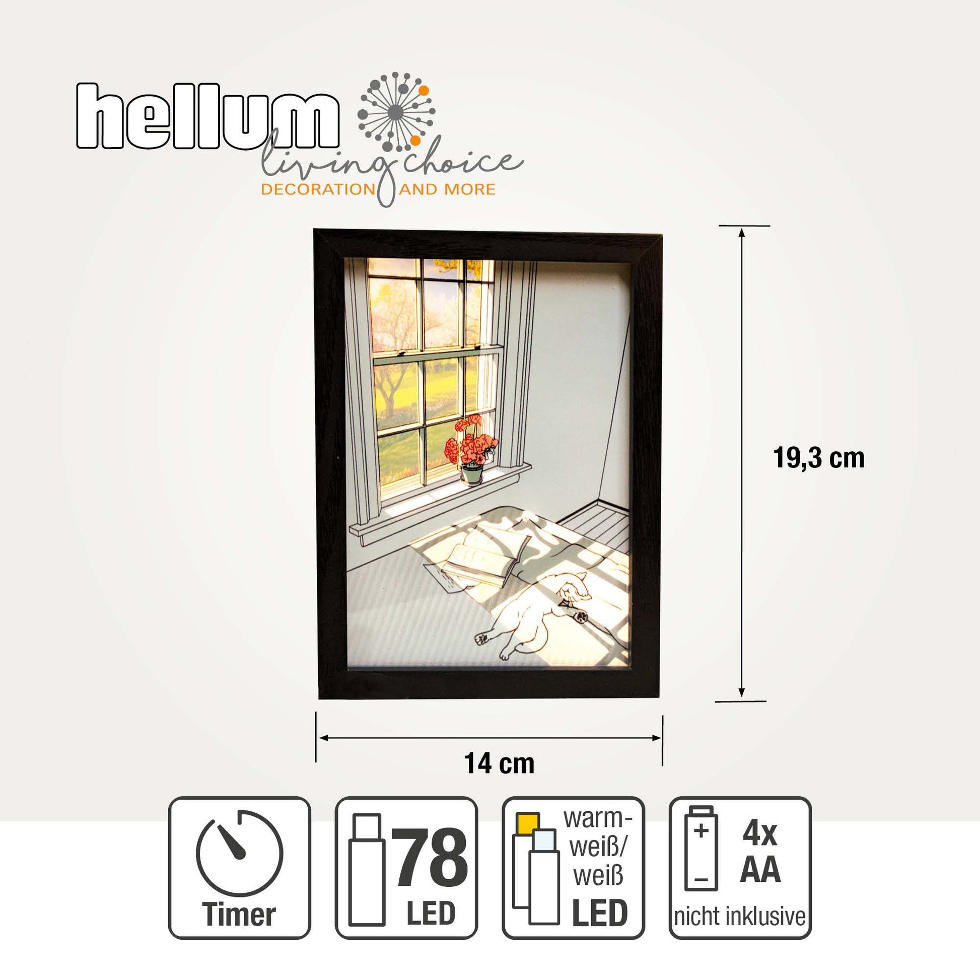LED-Bild "Katze im Schlafzimmer" klein, batteriebetrieben