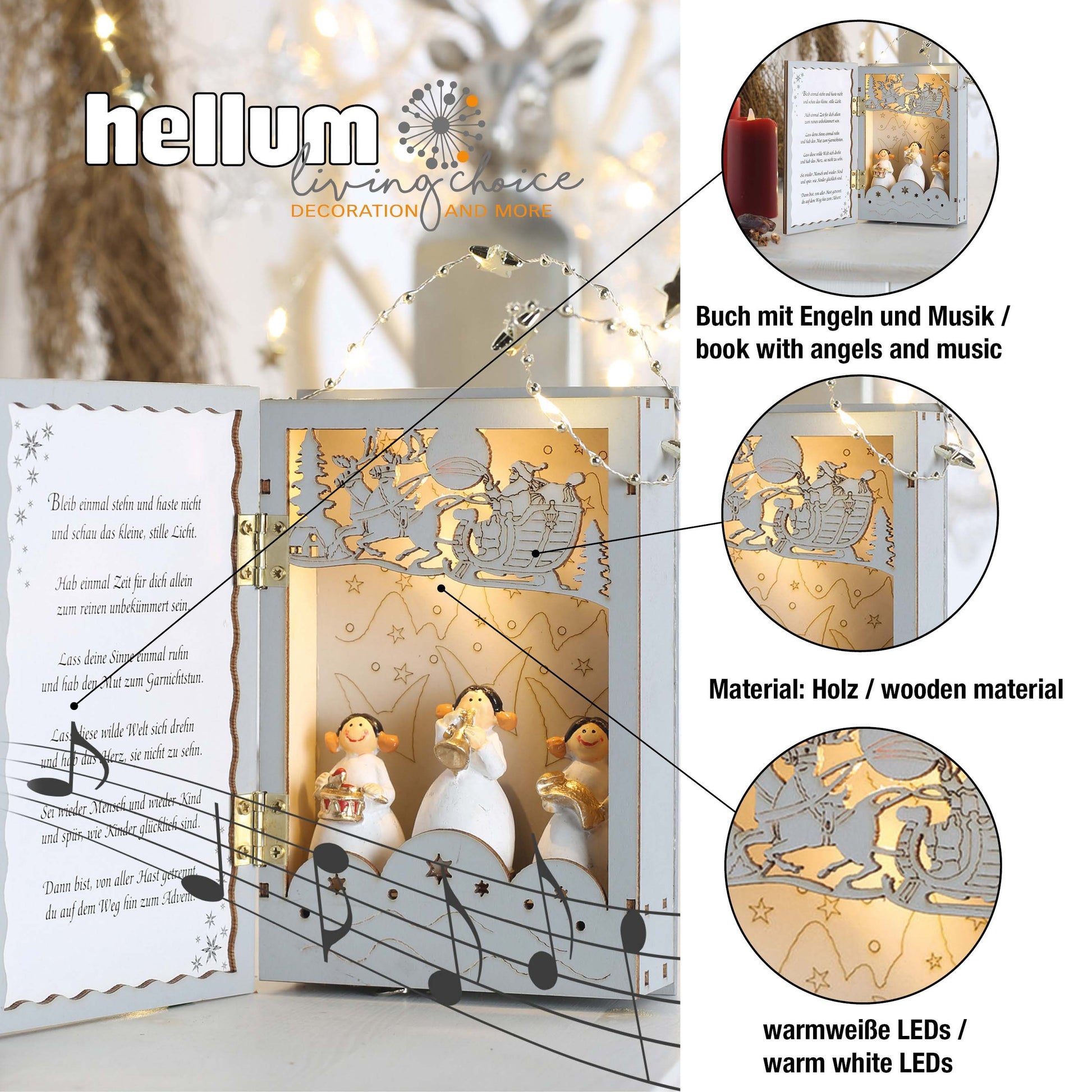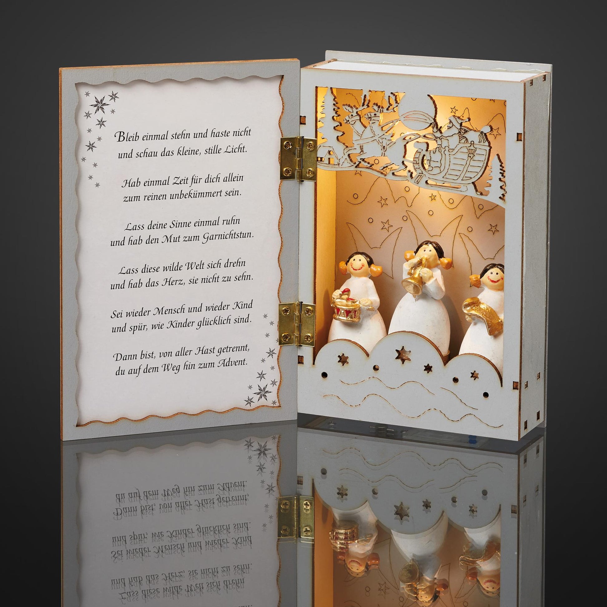 LED-Holzbuch mit Engeln und Musik, 1 LED ww, batteriebetrieben