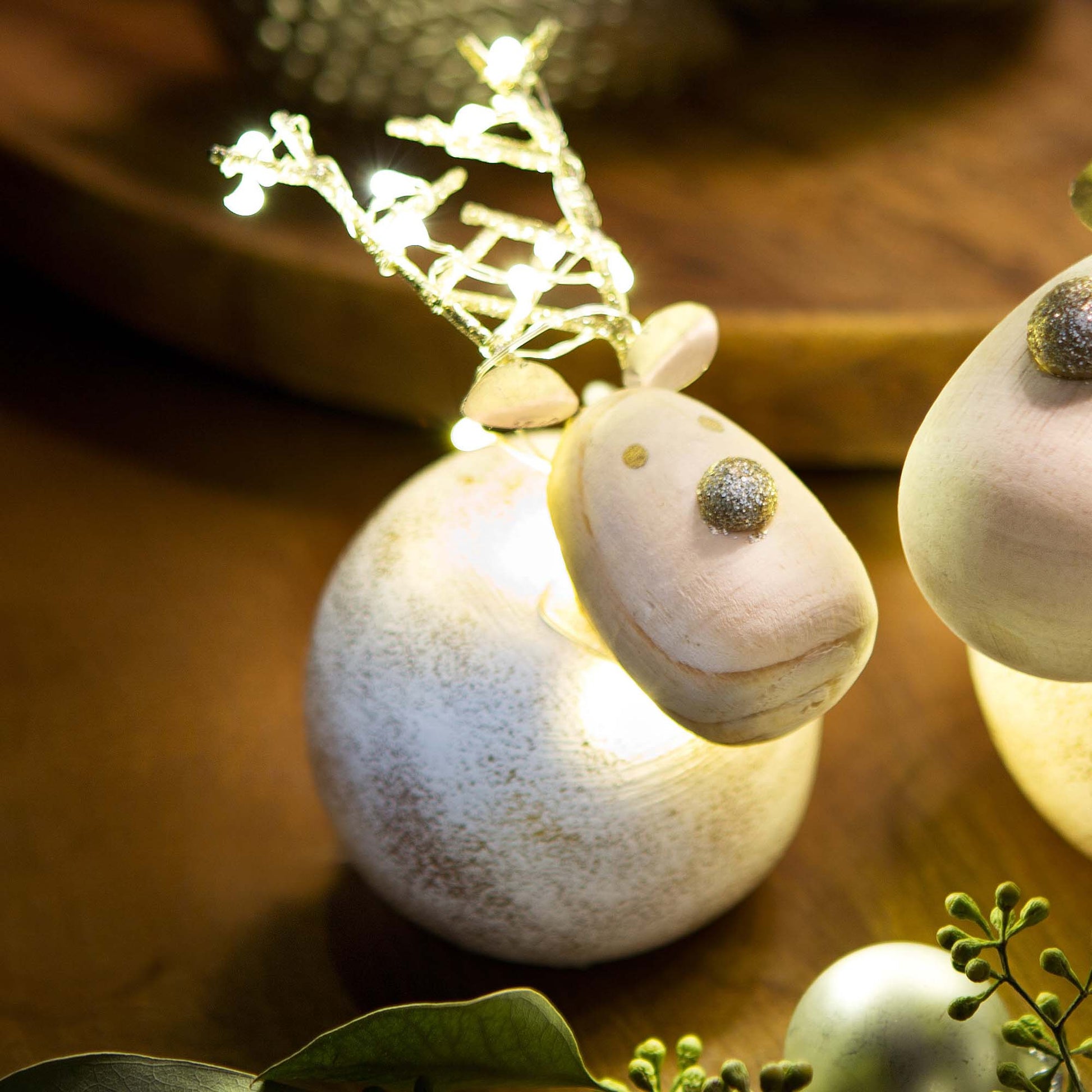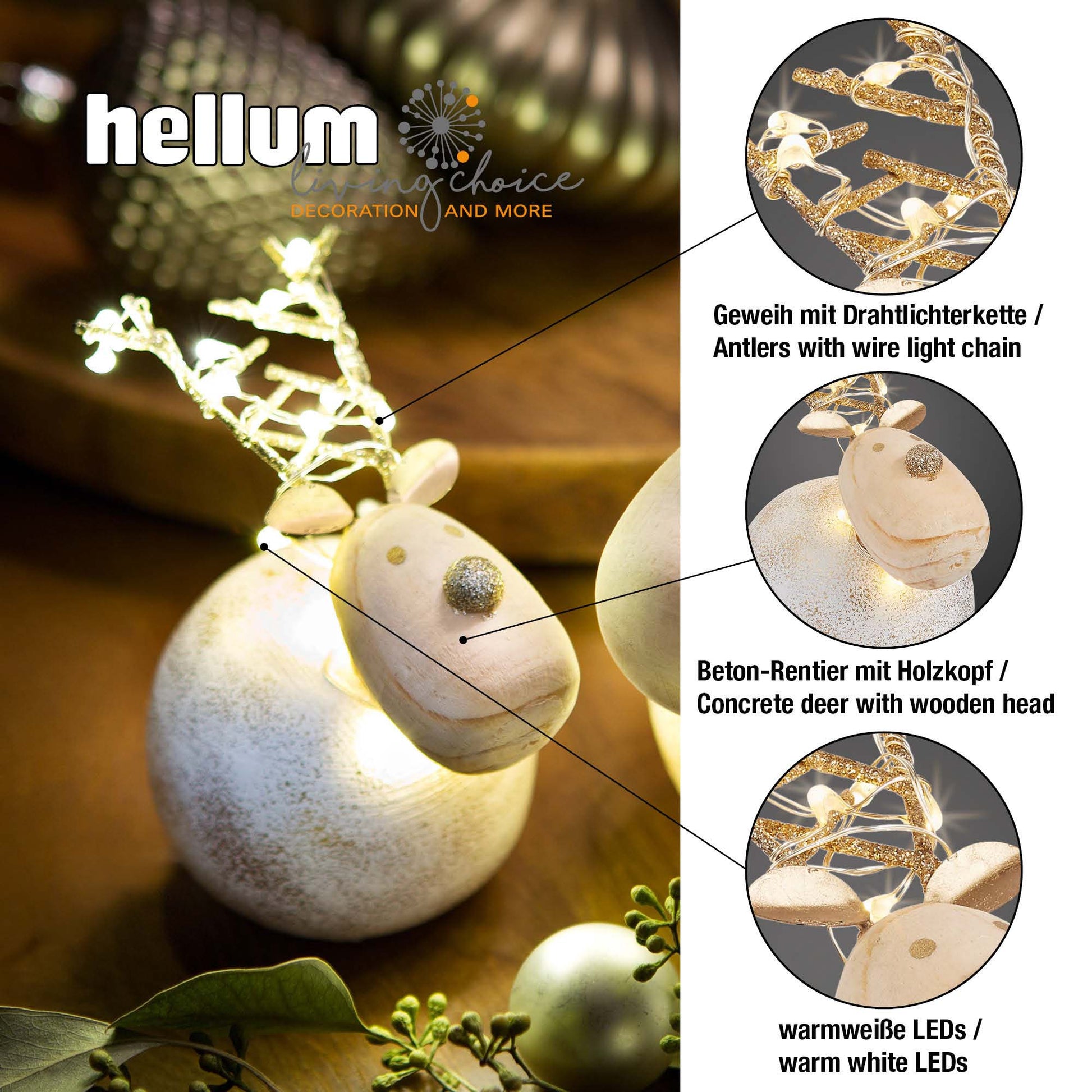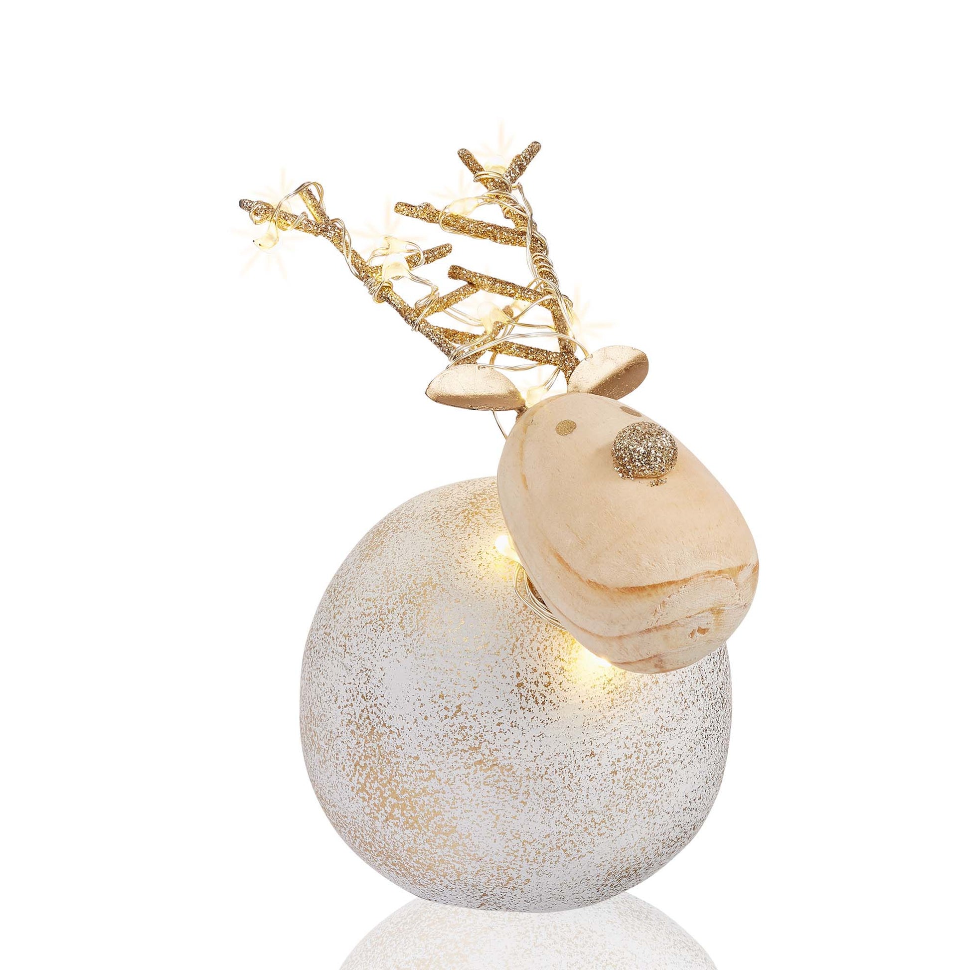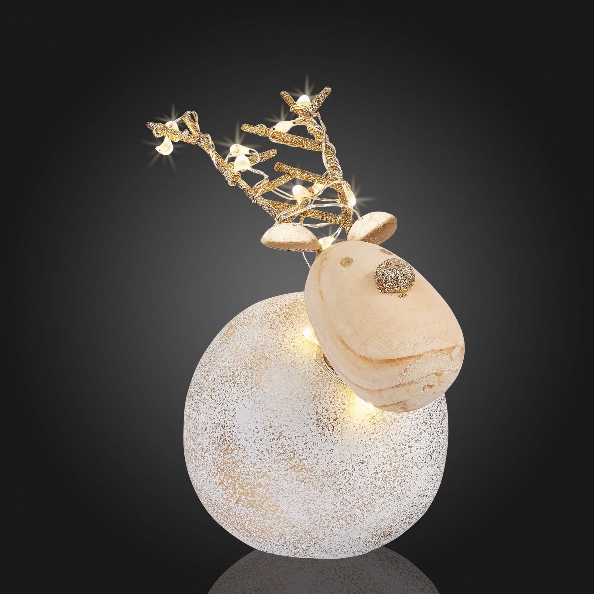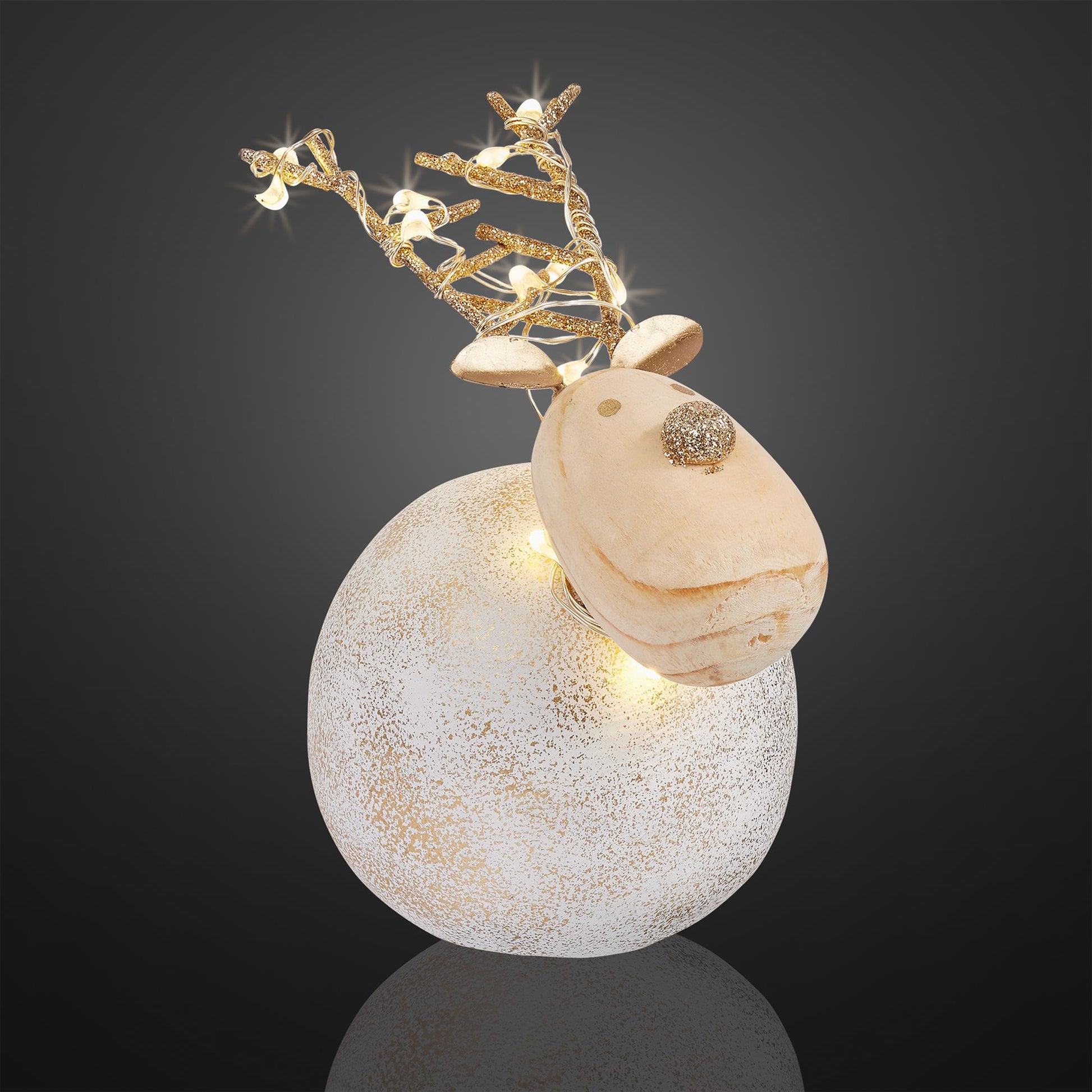 LED-Dekofigur "Beton-Rentier", 10x7 cm, 10 LEDs ww, batteriebetrieben