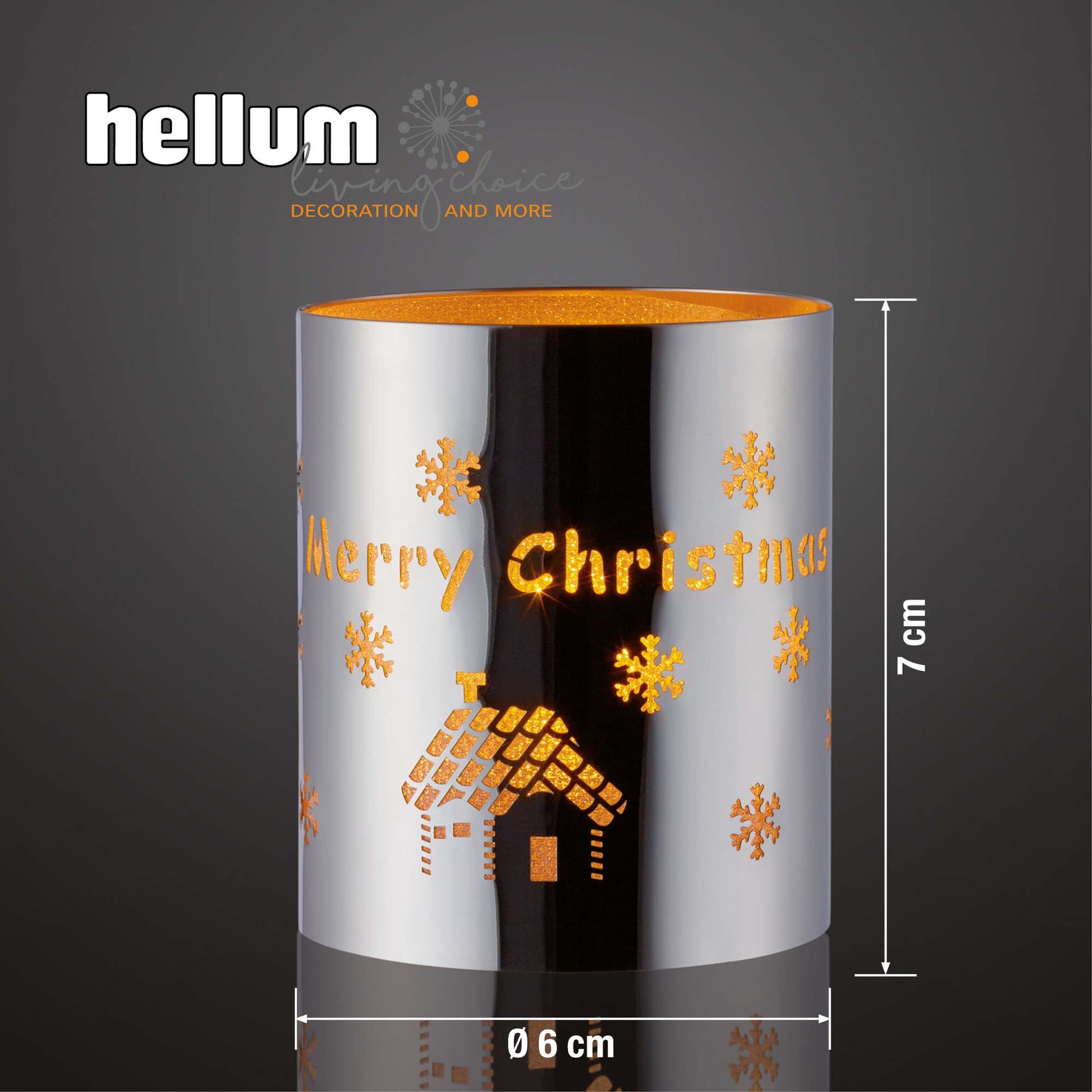 Dieses stylische runde Windlicht wartet mit der Aufschrift "Merry Christmas" auf, umgeben von einer 3D-Folie. Das mitgelieferte Teelicht sorgt für ein angenehmes Licht, während die Motive auf die Umgebung reflektiert werden. Der Korpus ist auch hochwertigem Metall, was in Verbindung mit dem Licht eine großartige weihnachtliche Wohlfühlatmosphäre garantiert. Lassen Sie sich inspirieren!