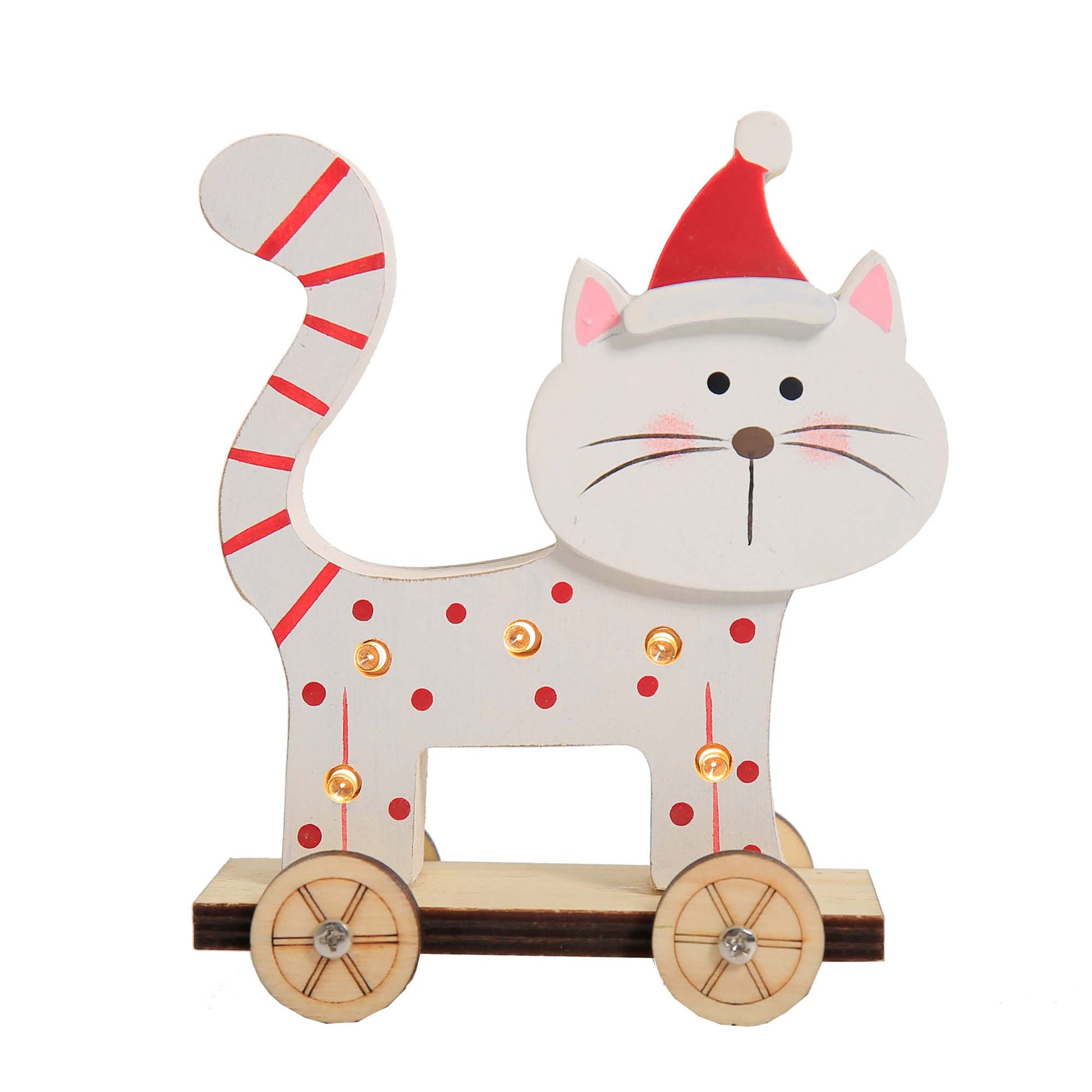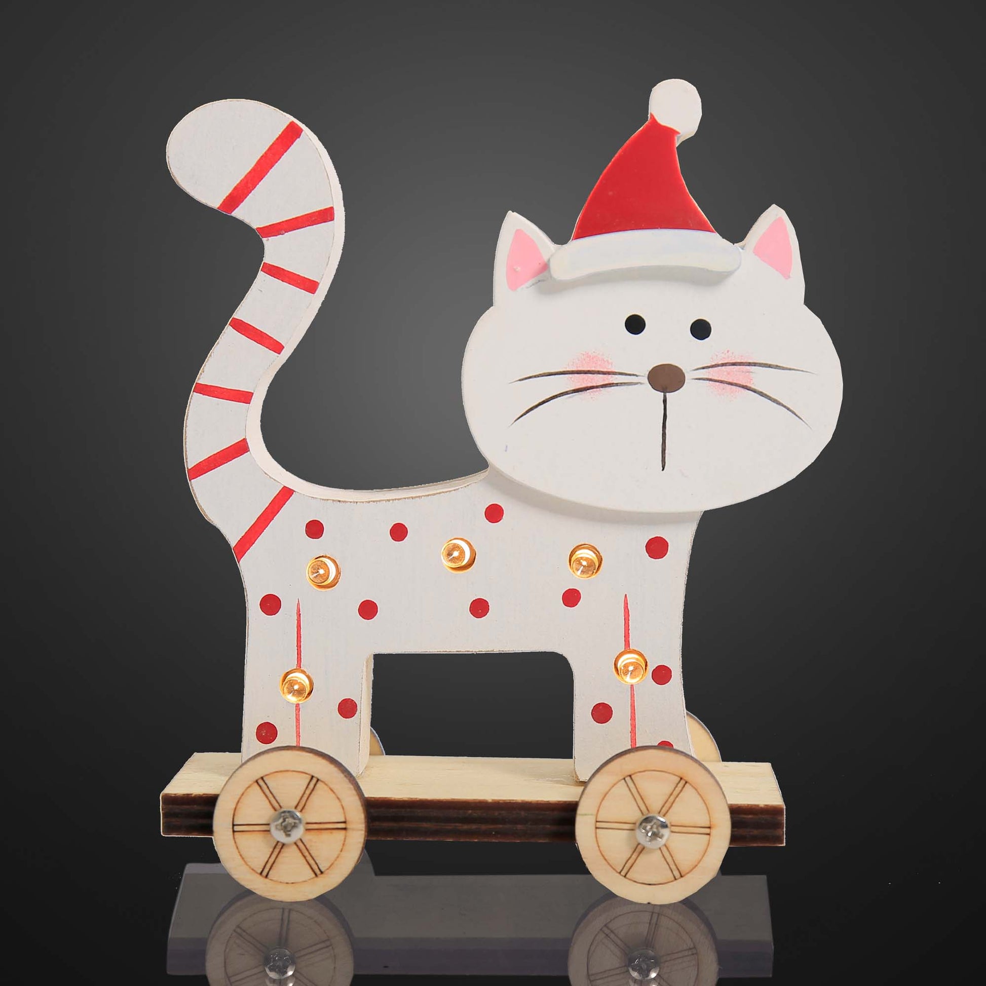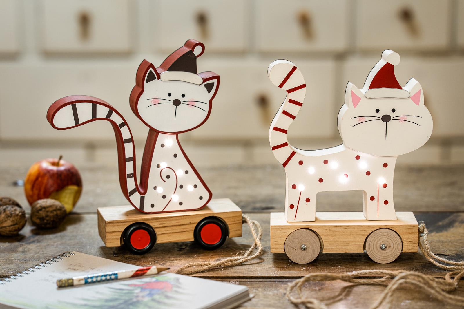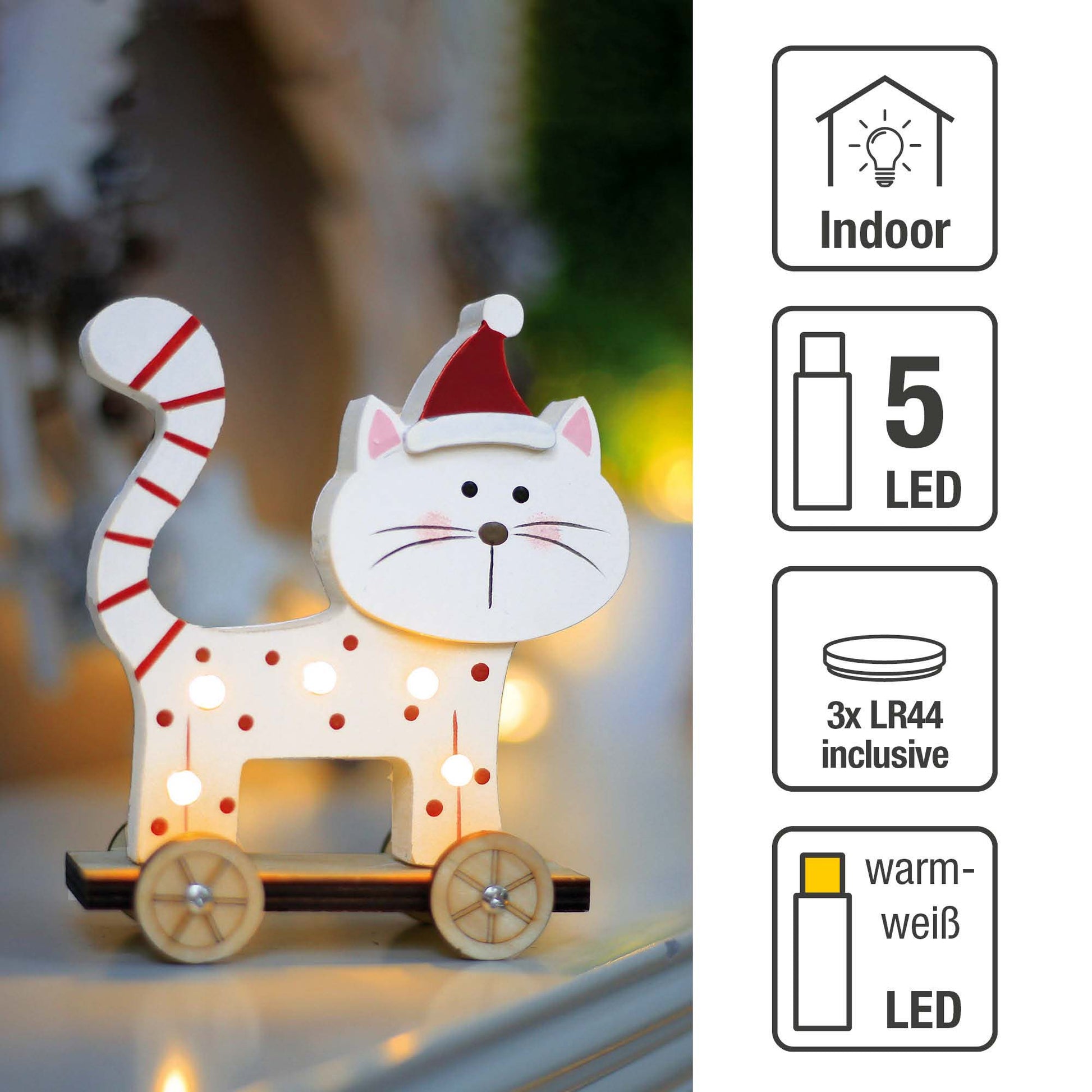 LED-Holz-Katze stehend, 5 LEDS ww, inkl. Batterien