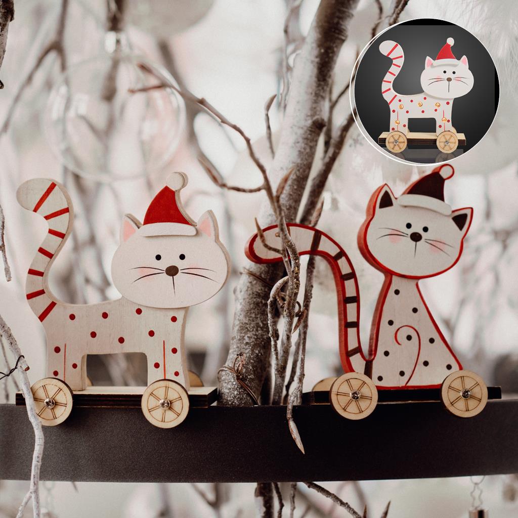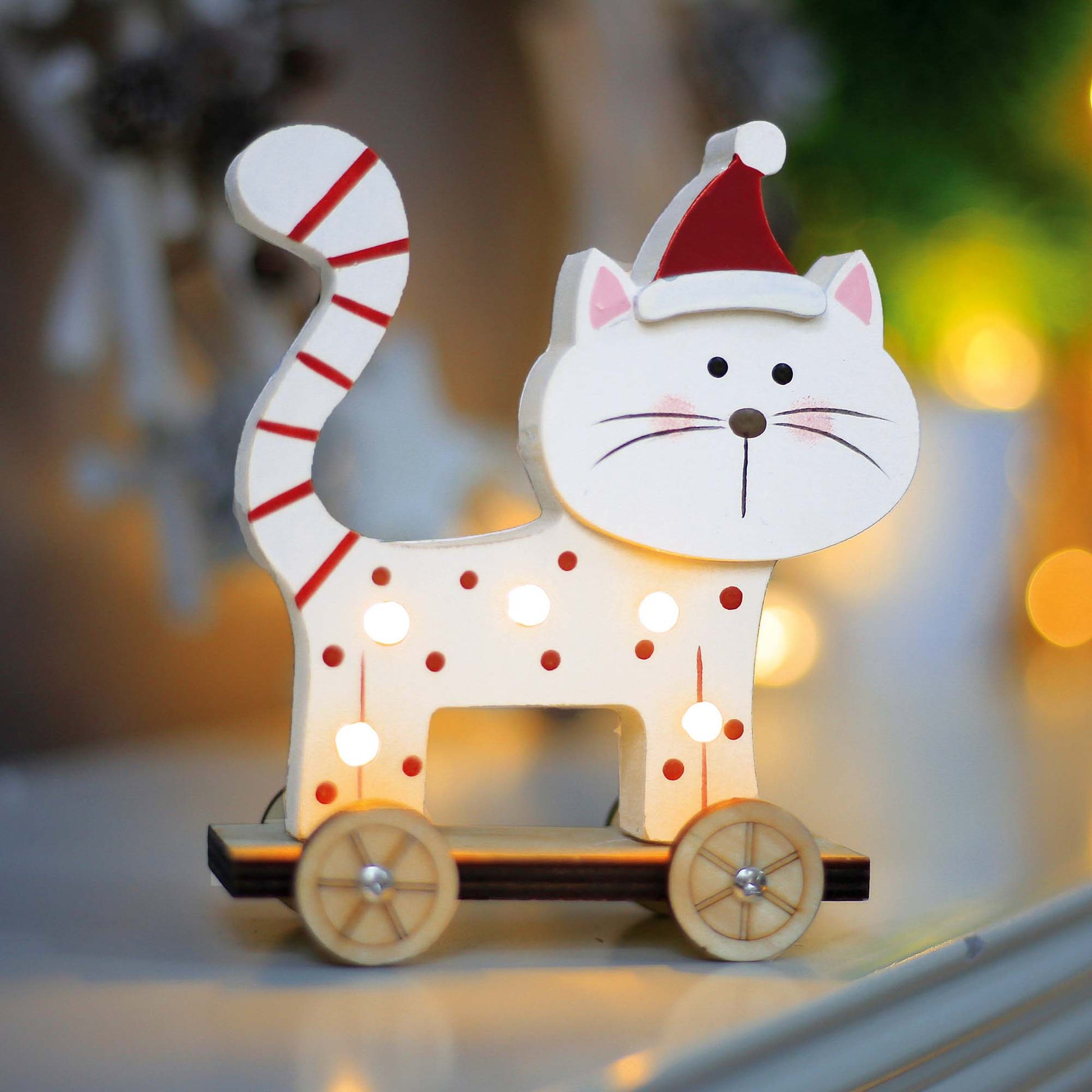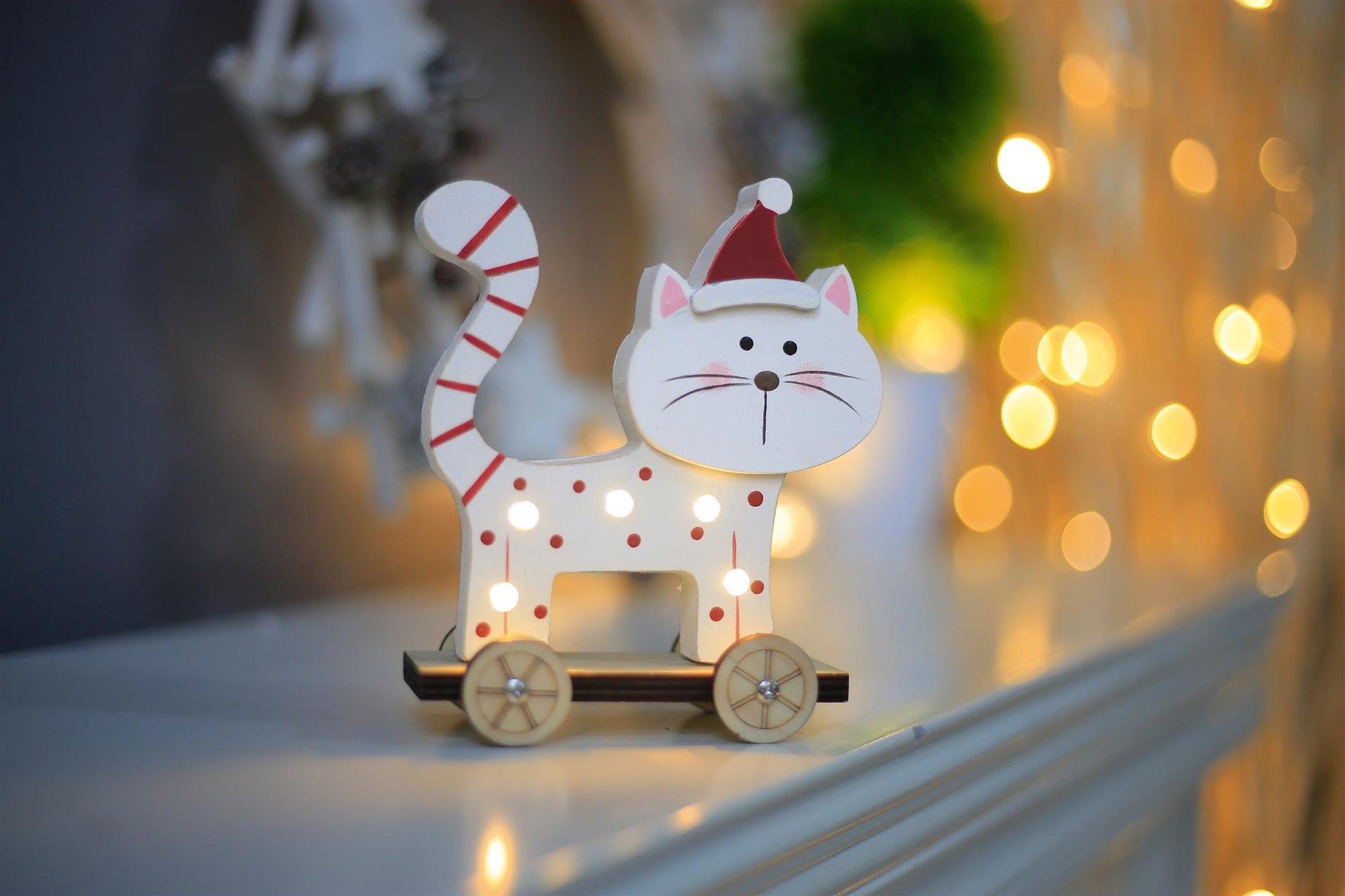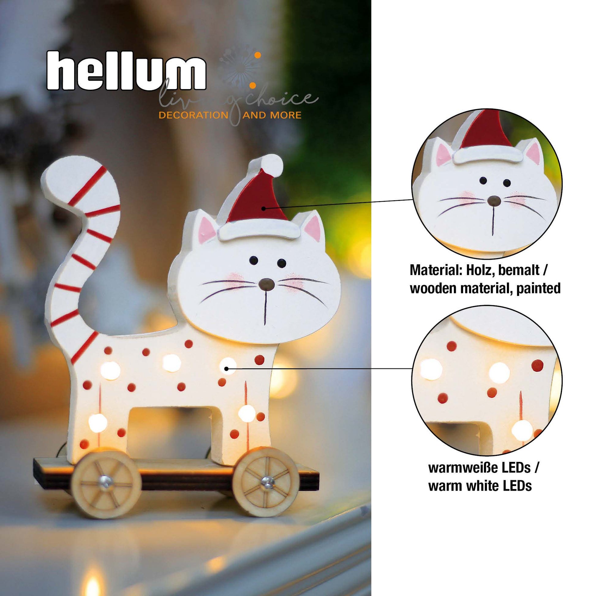 LED-Holz-Katze stehend, 5 LEDS ww, inkl. Batterien