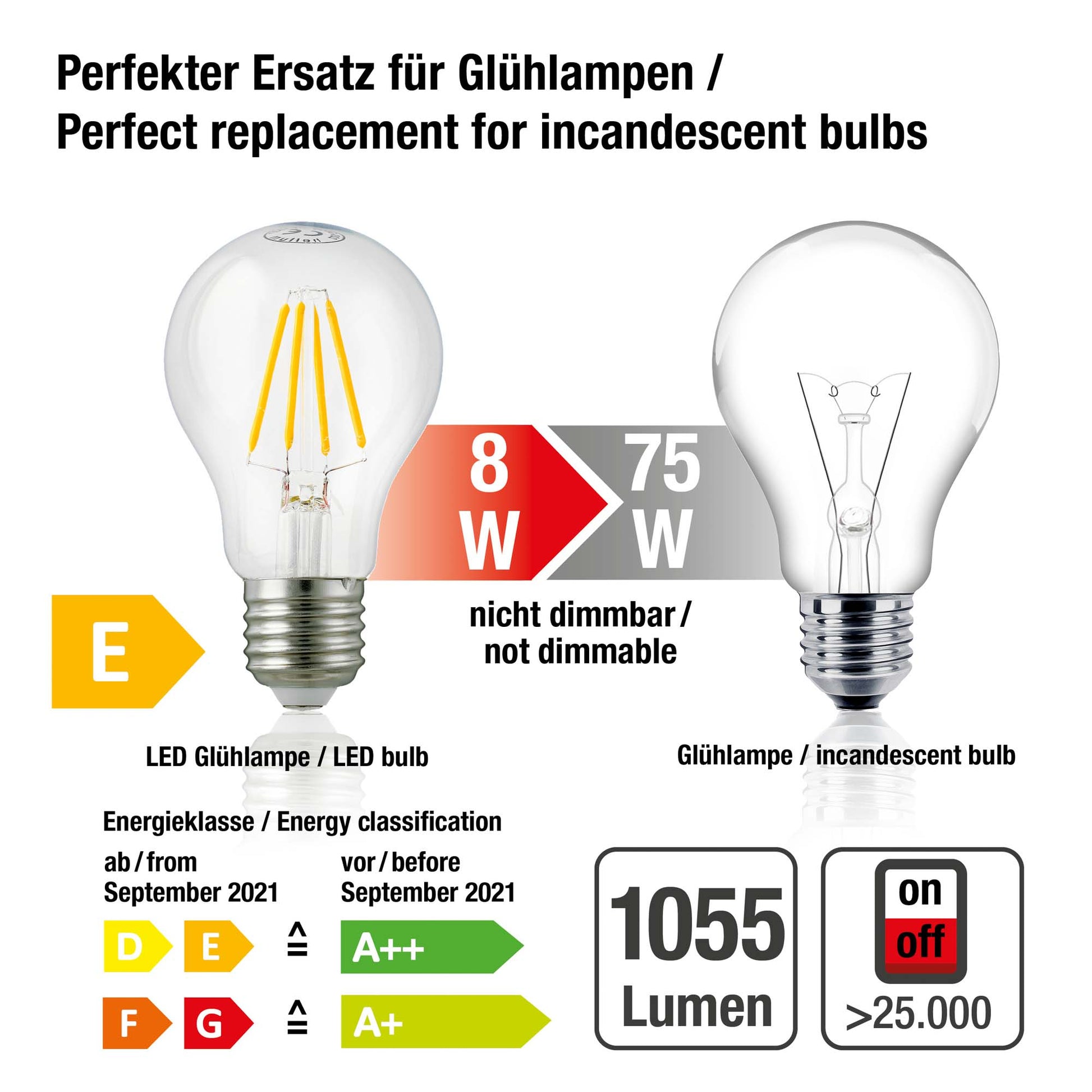 LED-Filament-Lampe A60, E27, 9.5W, Glas klar, 1055 lm_206159