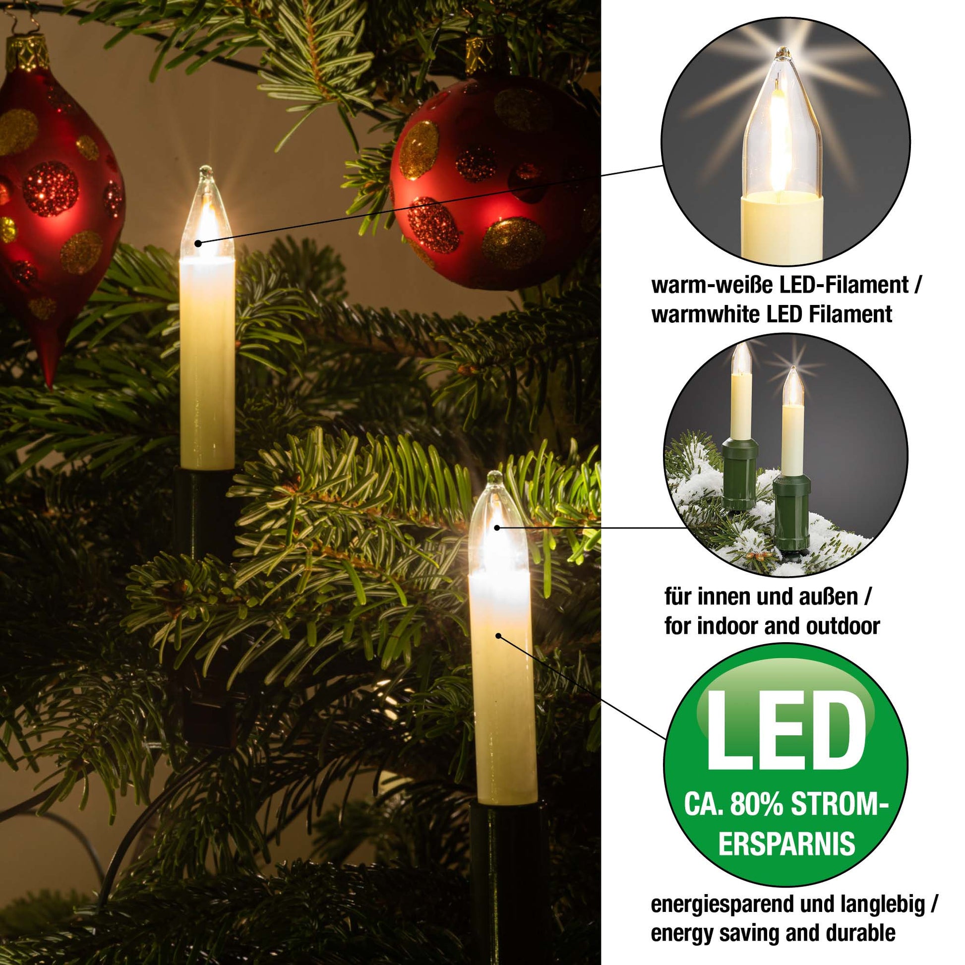 Ersatzkerzen Lichterkette LED-Filament 16V 0,5W für Lichterketten & Schwibbogen, 2 Stk Schaftkerzen E10 für 15 Brennstellen innen & außen 904970