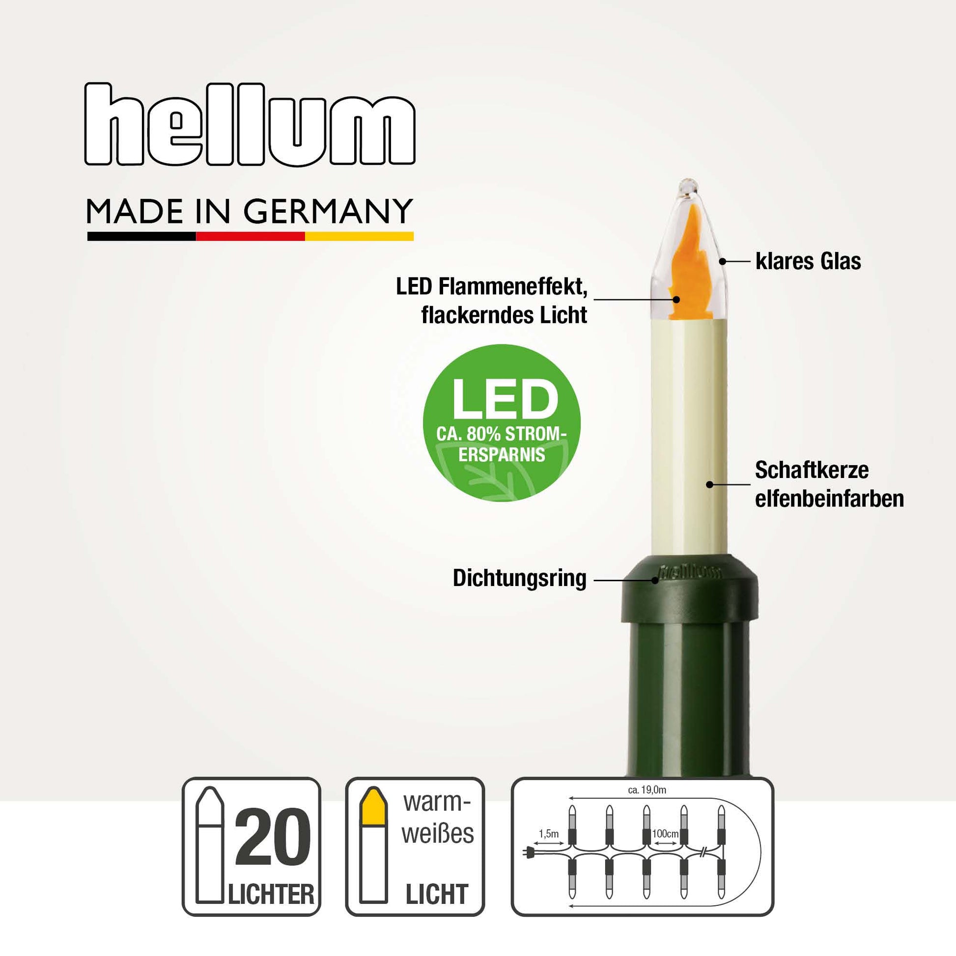 Lichterkette Weihnachtsbaum LED Filament mit Flammeneffekt, außen 20 teilig, Made in Germany, Schaftkerzen