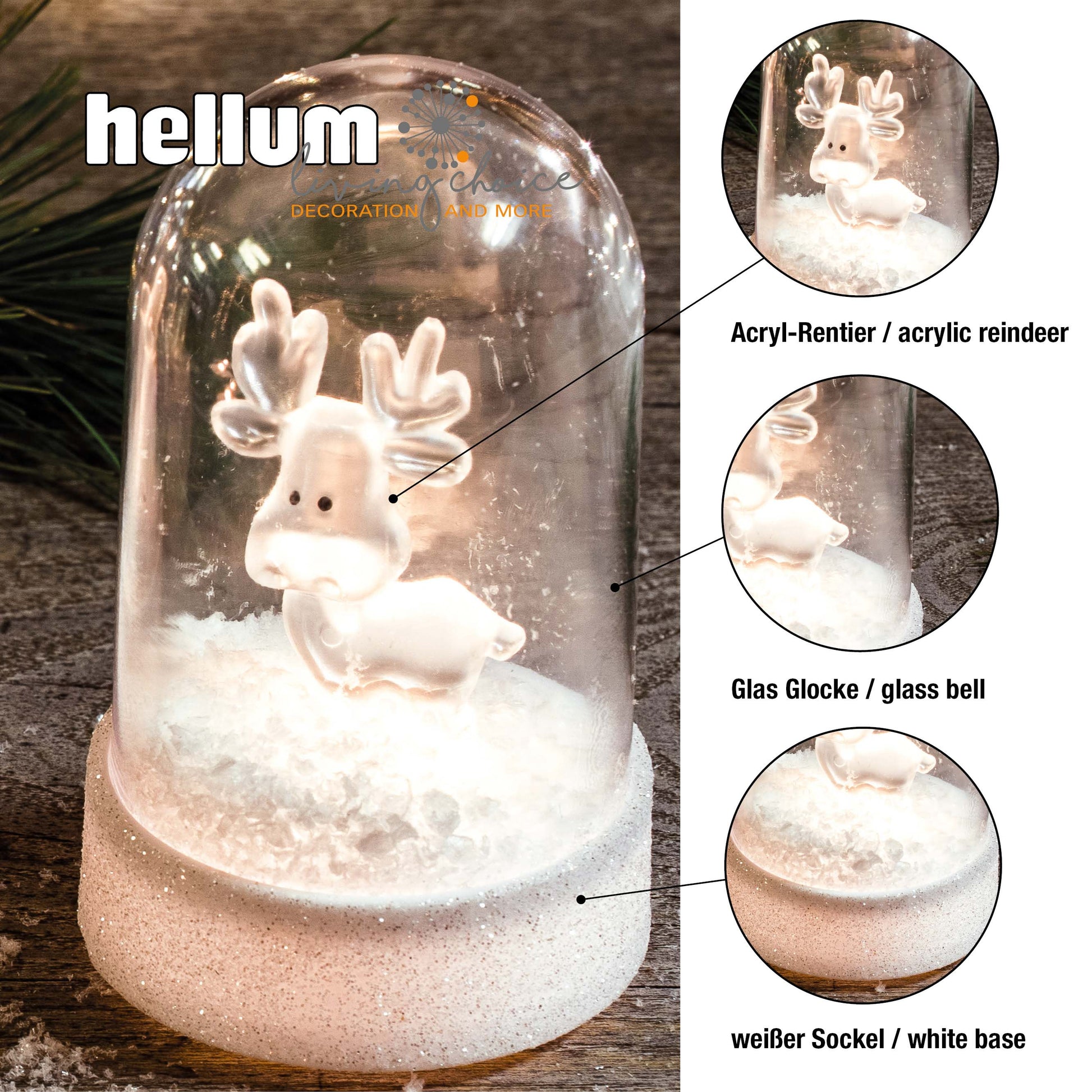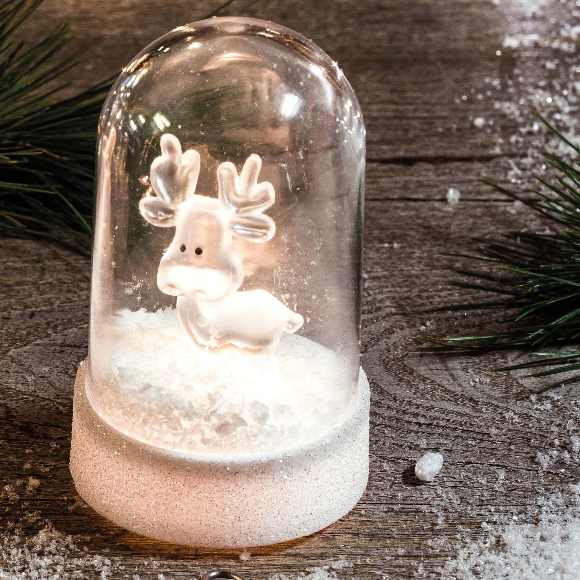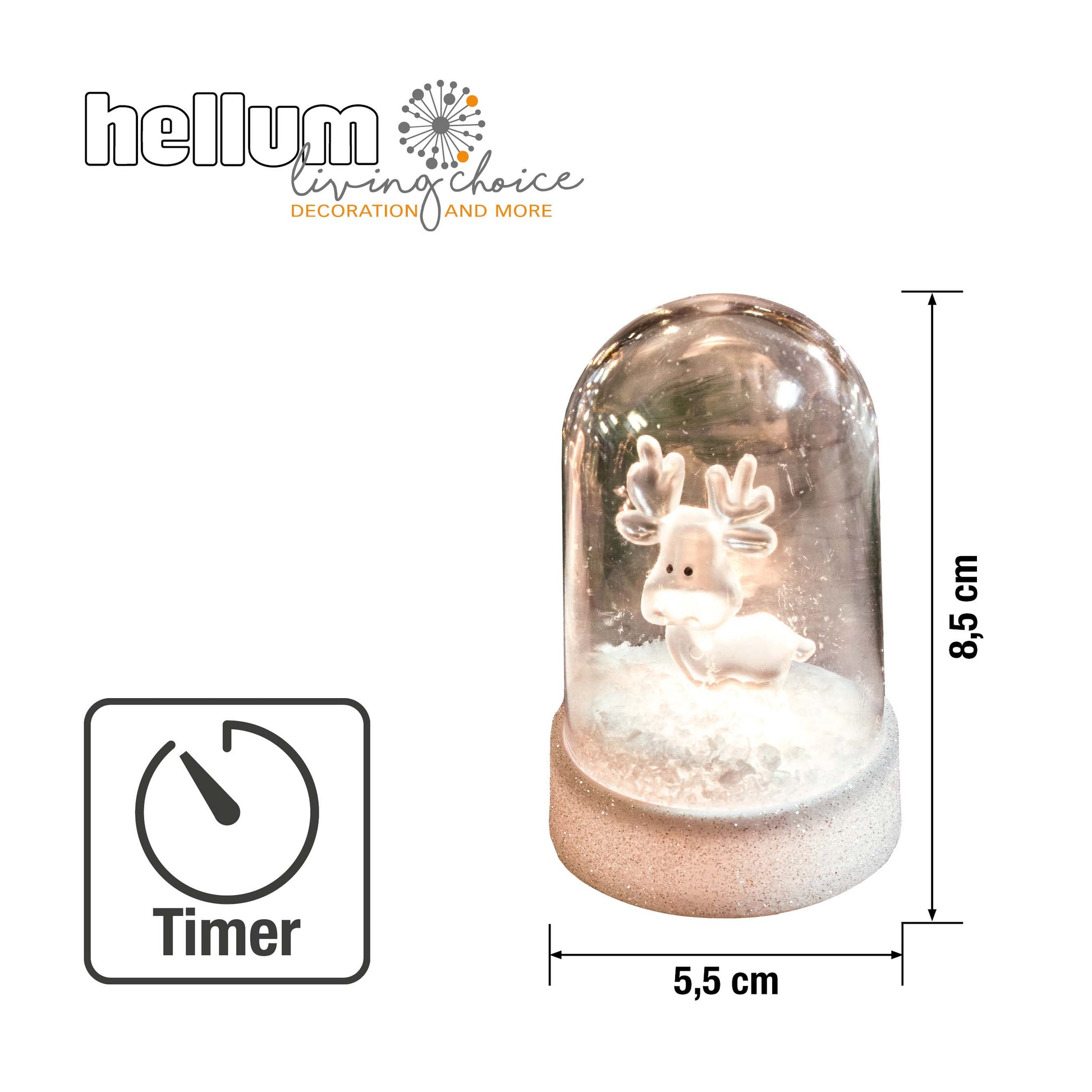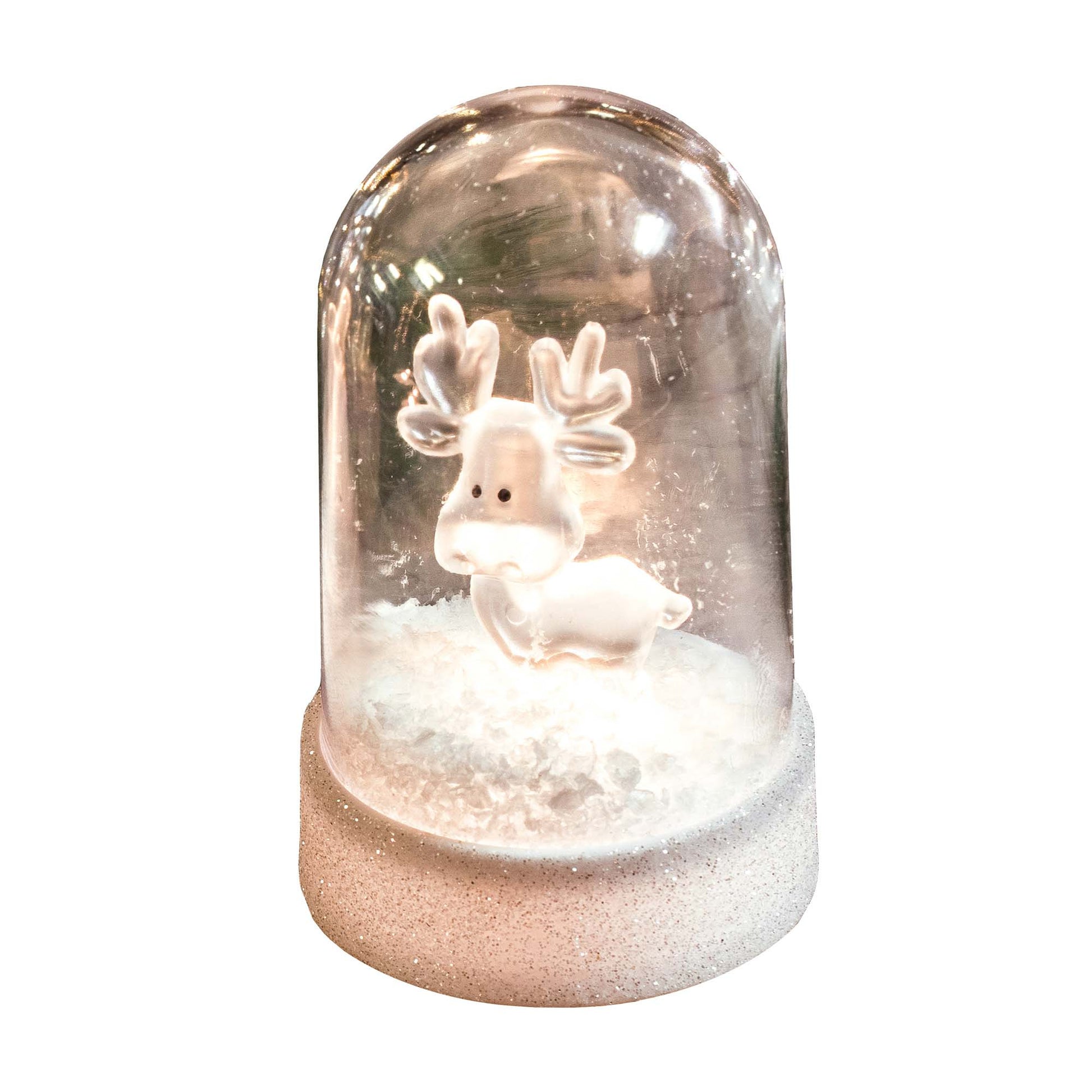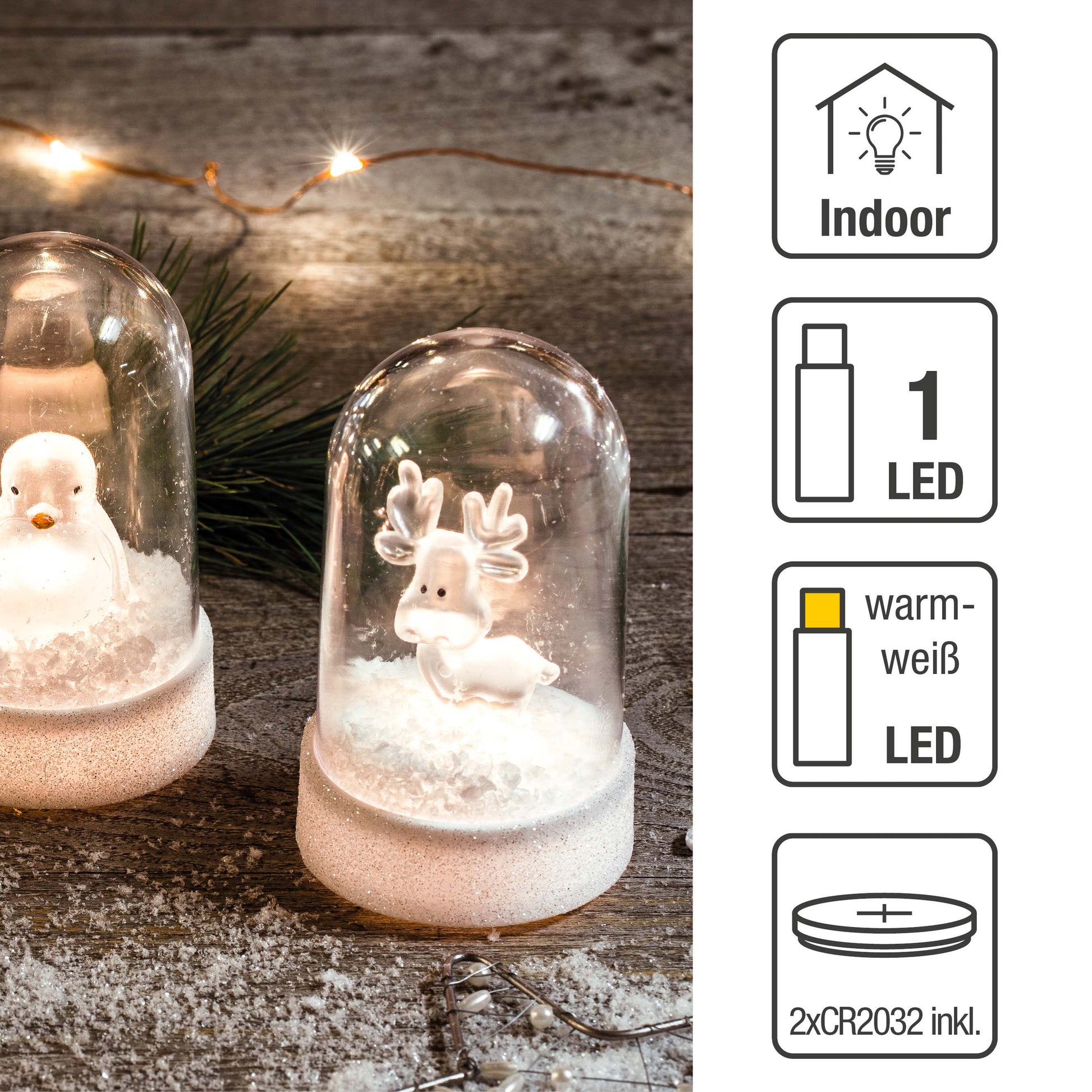 LED-Kuppel auf weißem Sockel, 1 LED ww, mit Acryl-Rentier, mit Timer, inkl. Batterie