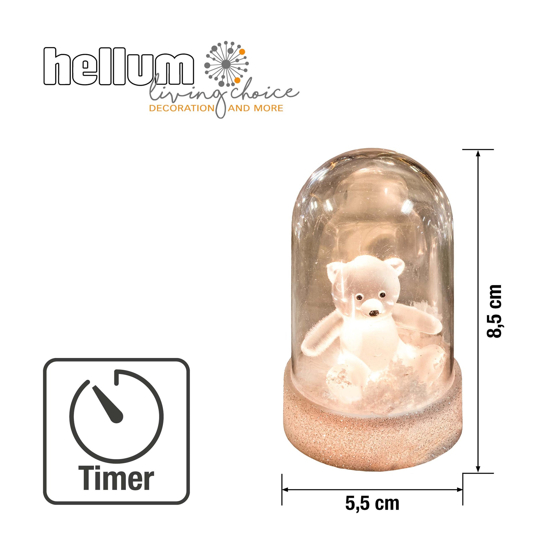 LED-Kuppel auf weißem Sockel, 1 LED ww, mit Acryl-Teddybär, mit Timer, batteriebetrieben