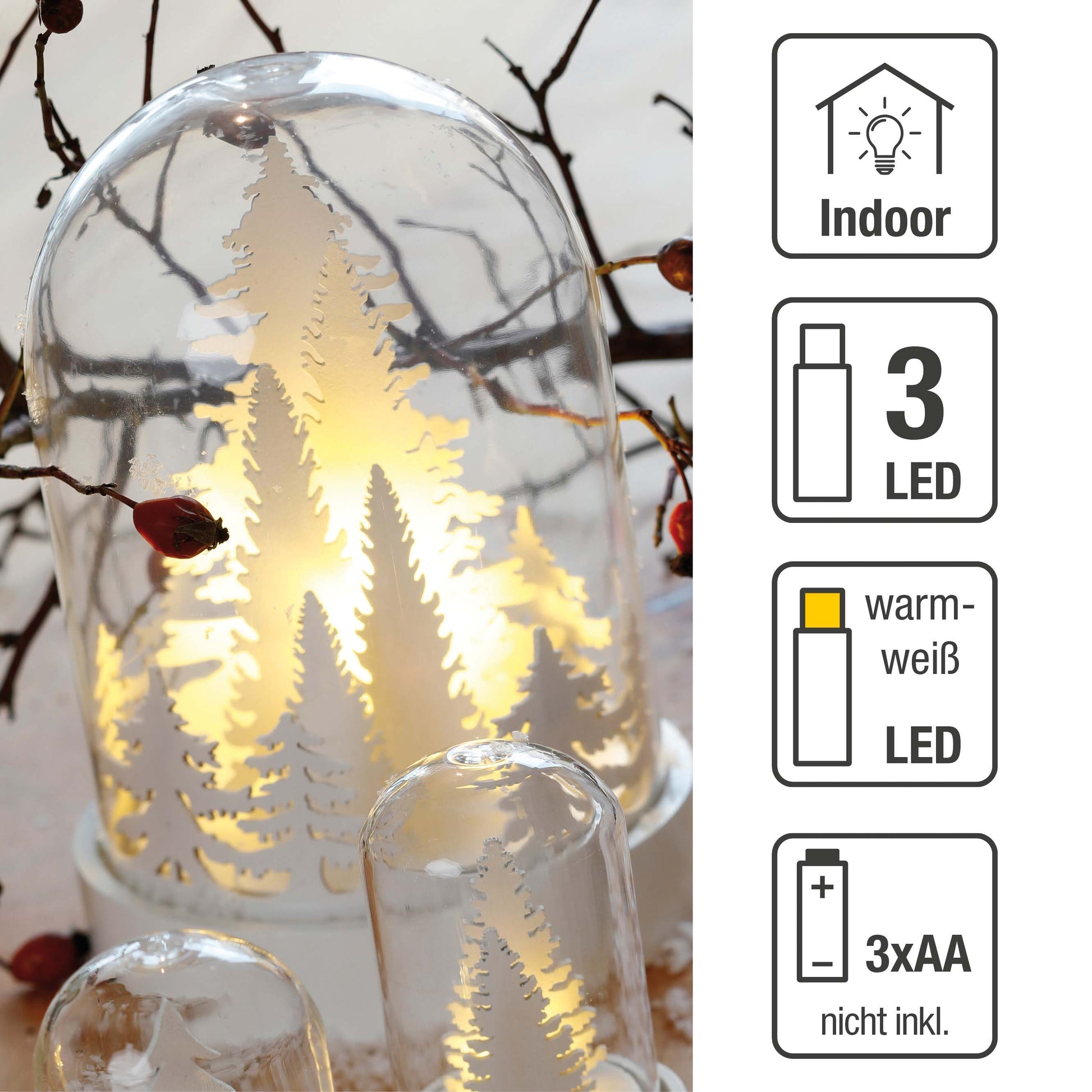 LED-Glocke mit weißen Tannenbäumen, 3 LEDs ww, batteriebetrieben