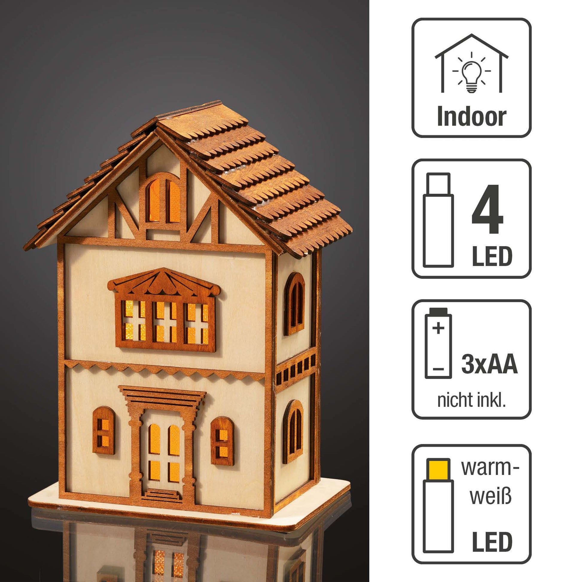 LED-Fachwerkhaus, 4 LEDs ww, batteriebetrieben