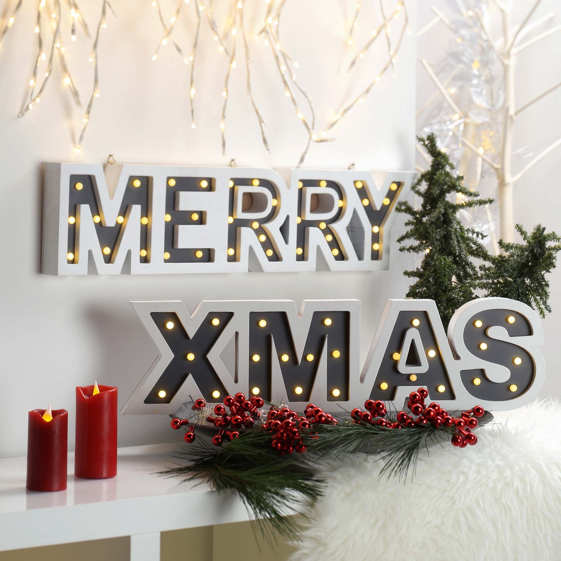 Set bestehend aus LED-Holzschilder "Merry" und "X-Mas", batteriebetrieben