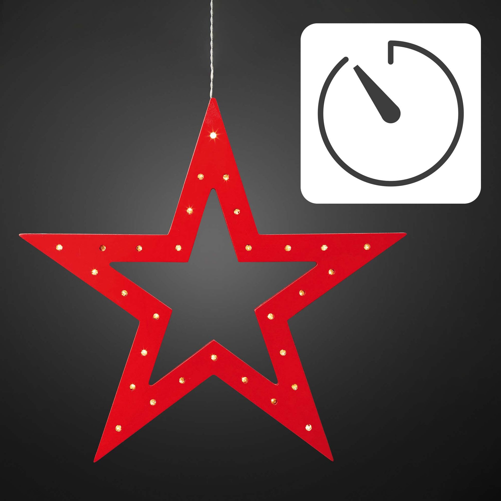 Der wunderschöne weihnachtliche LED-Holzstern ist ein richtiger Hingucker: sein in roter Farbe gehaltenes Holz zeugt von zeitloser Eleganz, die 30 langlebigen warmweißen LEDs sorgen für eine dezente Ausleuchtung. Der integrierte Timer lässt den Stern auf Wunsch nach 6 Stunden ausgehen. Durch das integrierte Batteriefach ist der Stern quasi überall hin zu platzieren - lassen Sie Ihrer Kreativität freien Lauf!