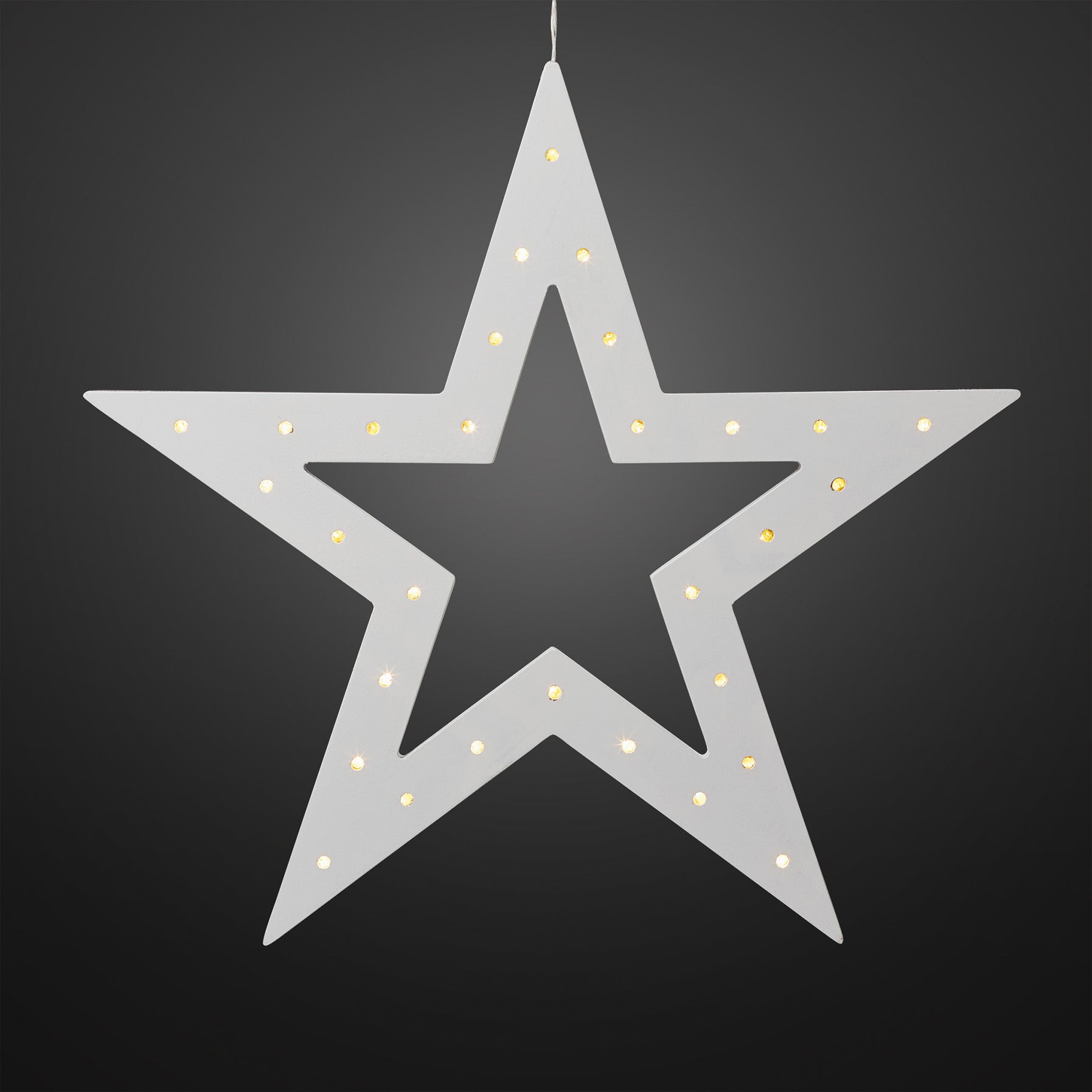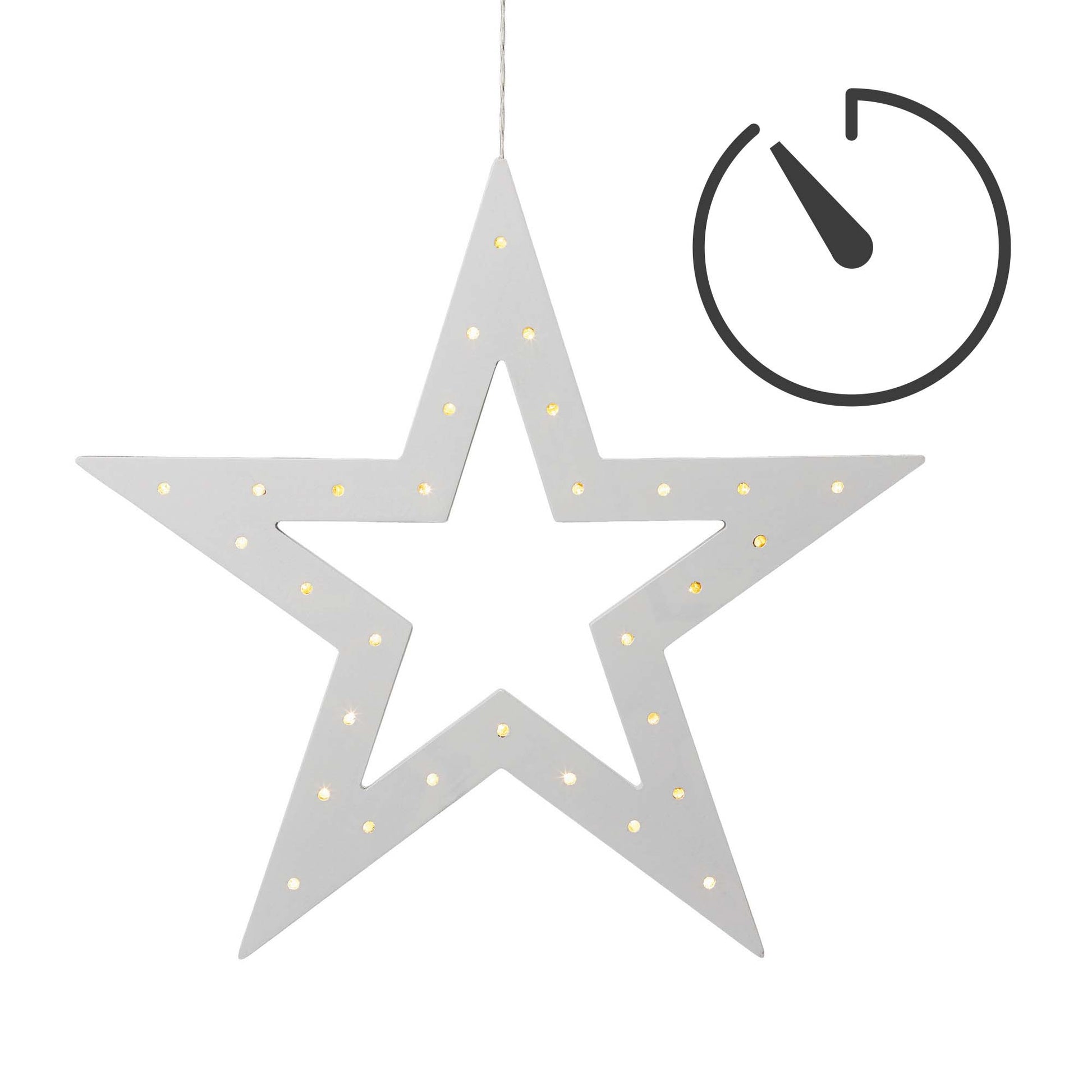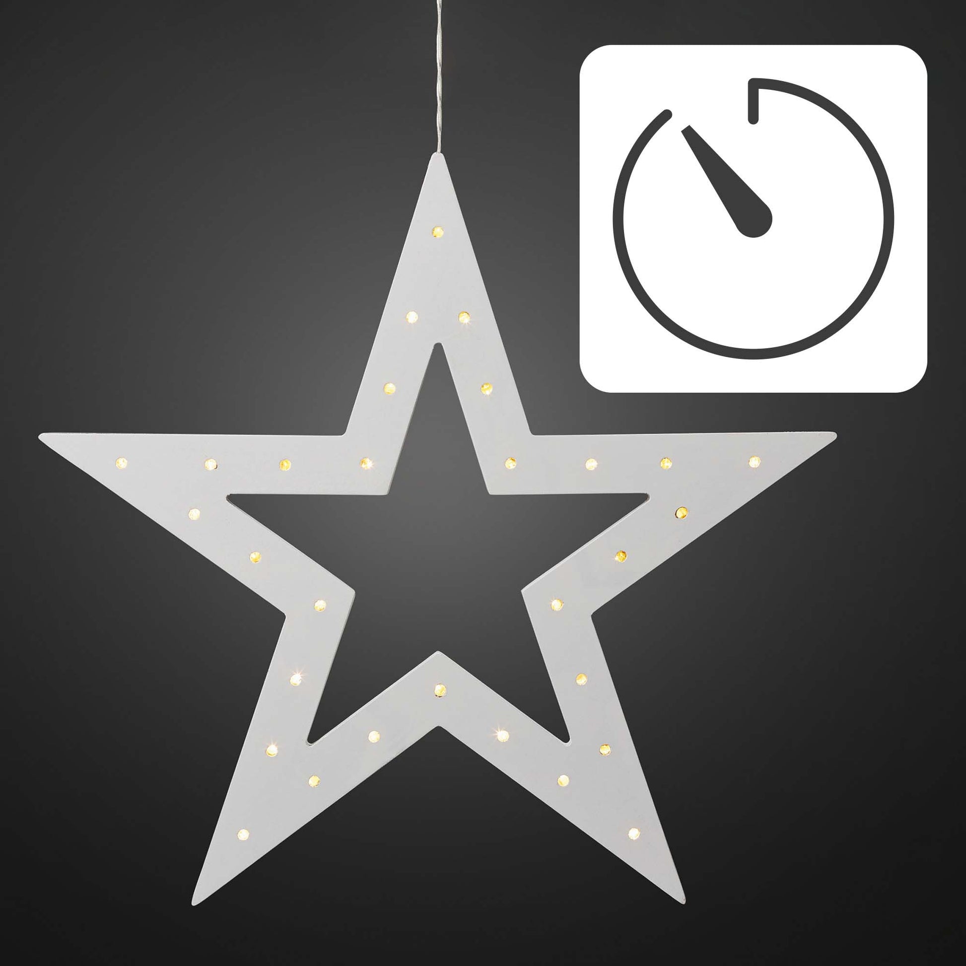 Der wunderschöne weihnachtliche LED-Holzstern ist ein richtiger Hingucker: sein in weißer Farbe gehaltenes Holz zeugt von zeitloser Eleganz, die 30 langlebigen warmweißen LEDs sorgen für eine dezente Ausleuchtung. Der integrierte Timer lässt den Stern auf Wunsch nach 6 Stunden ausgehen. Durch das integrierte Batteriefach ist der Stern quasi überall hin zu platzieren - lassen Sie Ihrer Kreativität freien Lauf!
