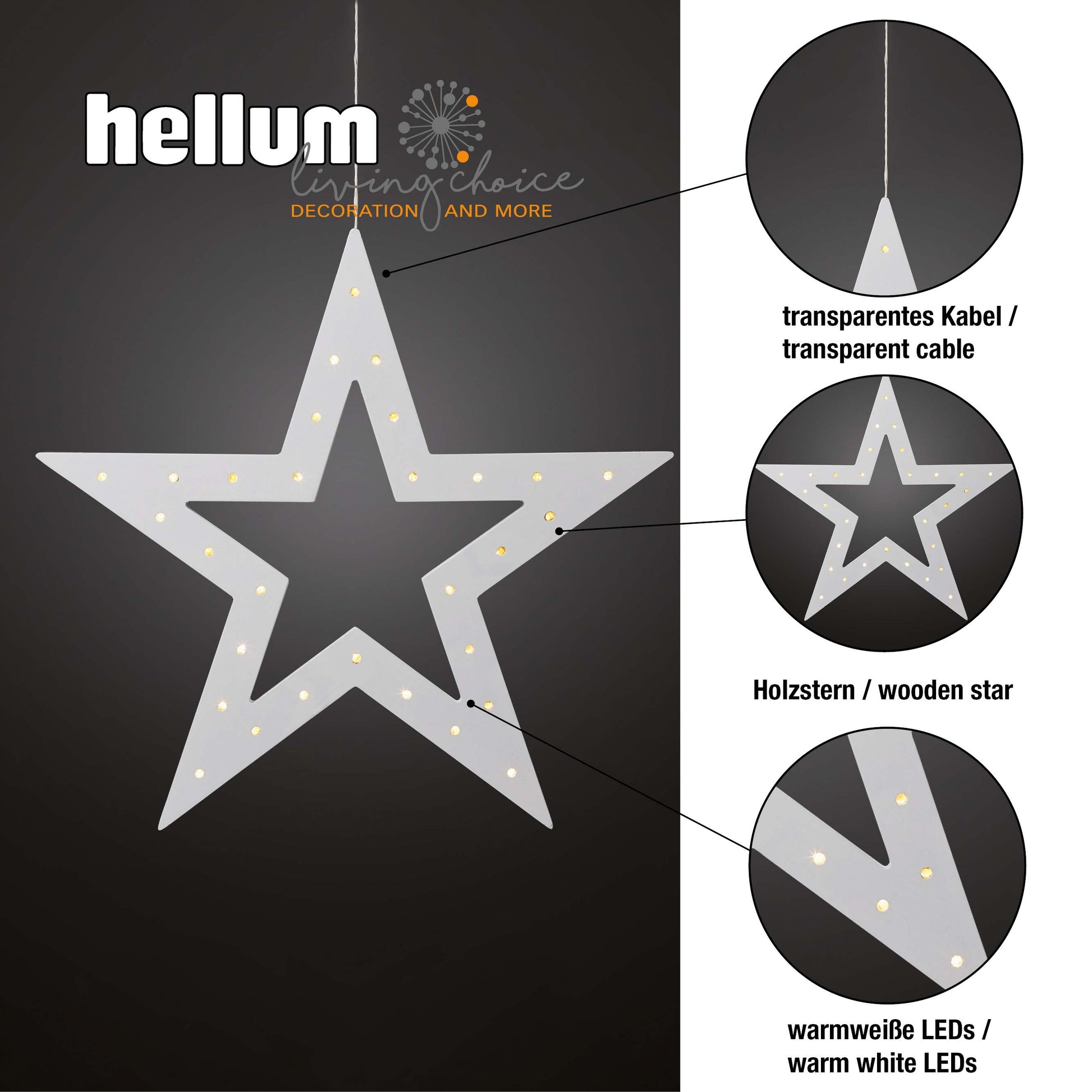 LED-Holzstern weiß, 30 LEDs ww, batteriebetrieben