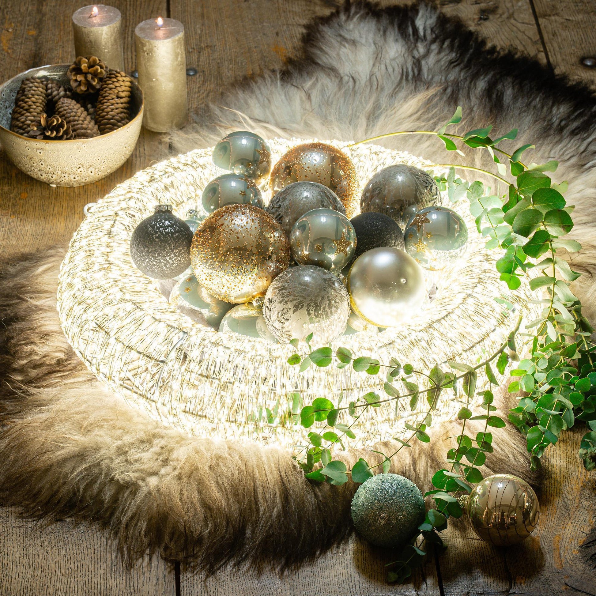 LED-Kranz mit Tauperlen, 2650L, φ40cm, warm-weiß, silber Kabel, Außen-Trafo, new