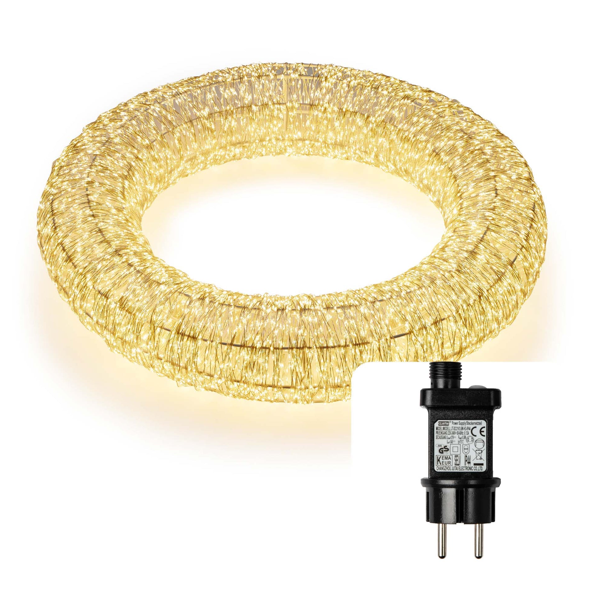 LED-Kranz mit Lichterkette "Tauperlen", Ø70cm,7680 LEDs ww, Außen-Transformator