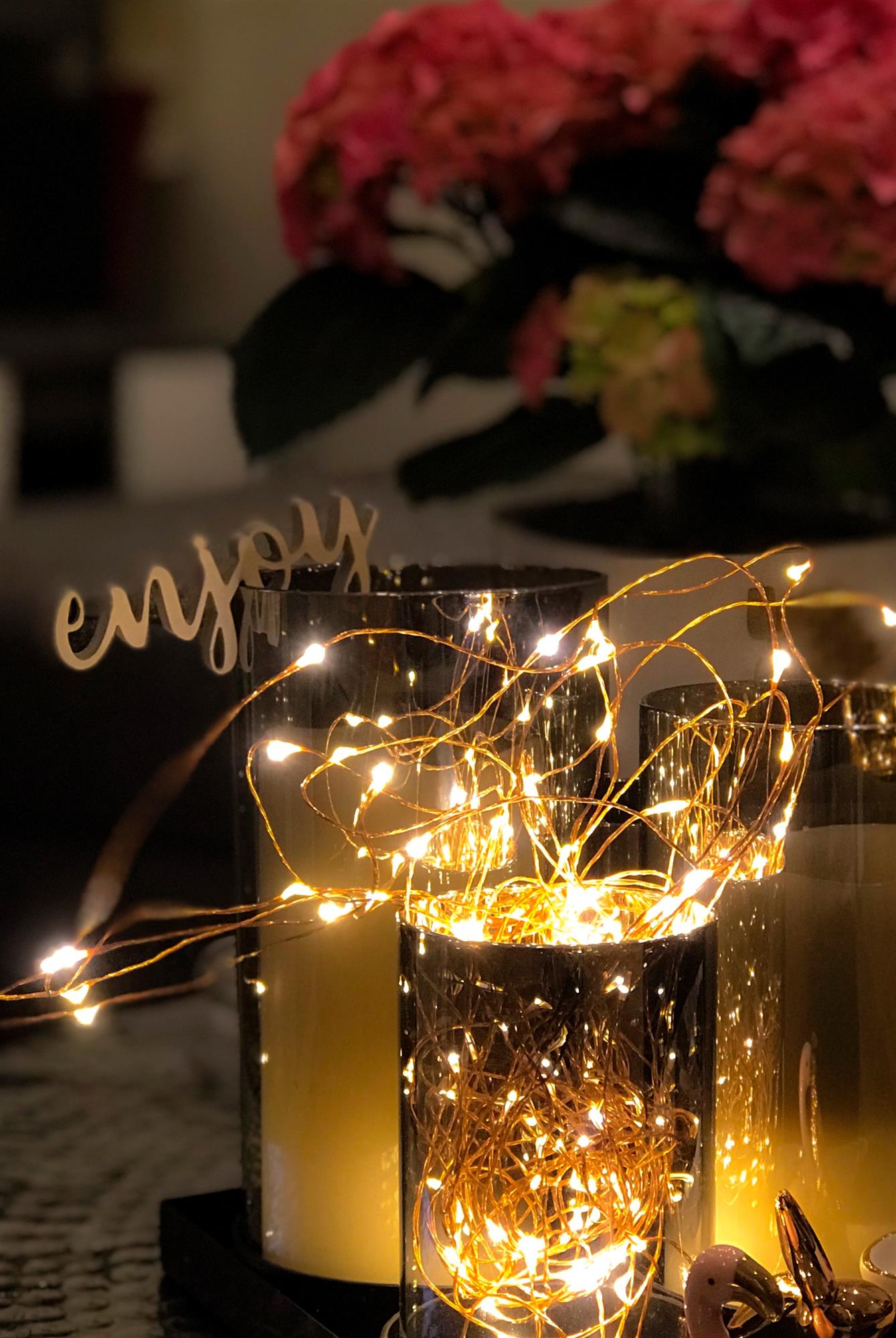 Die kleinen LED Punkte erinnern an kleine Sterne am Abendhimmel oder Tauperlen im Morgengrauen. Lassen Sie Ihrer Fantasie freien Lauf – ob in die Geschenkverpackung integriert, zum Basteln, im Blumenstrauß eingearbeitet oder als Dekoration in einer schönen Vase. Dieses Produkt überzeugt durch seine Vielseitigkeit im filigranen Design.