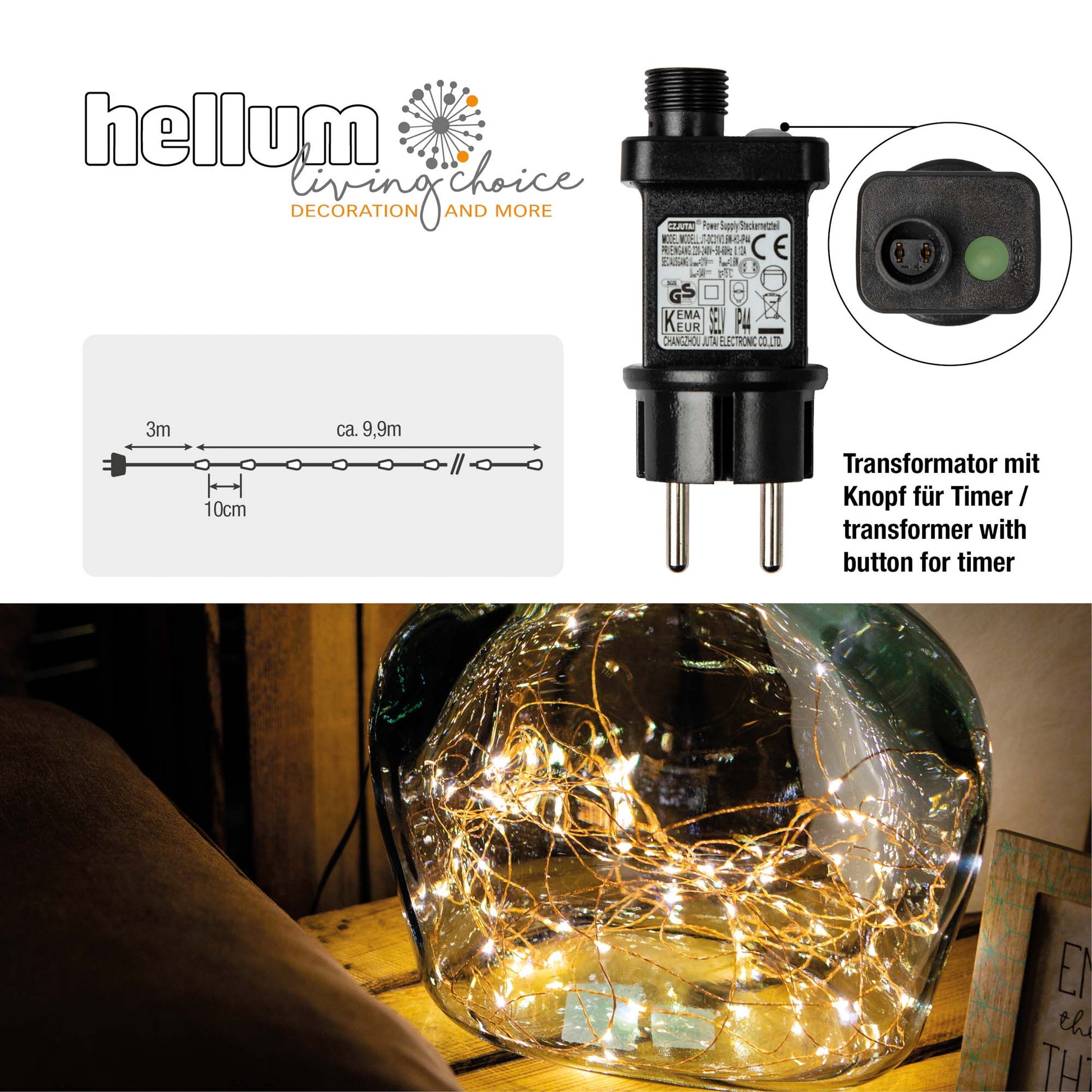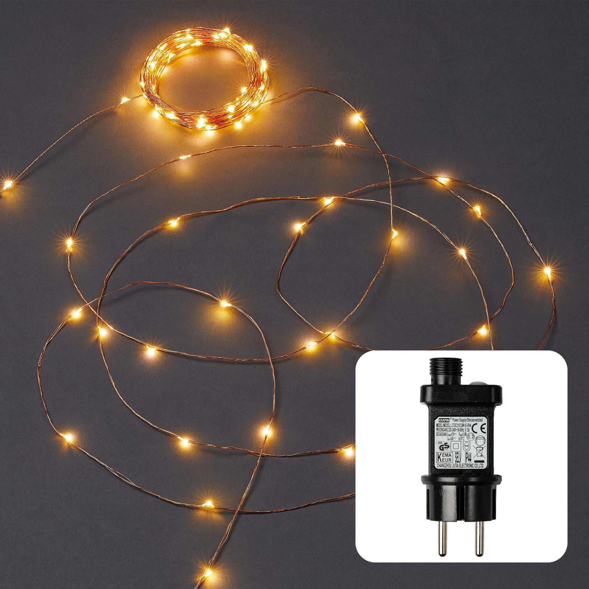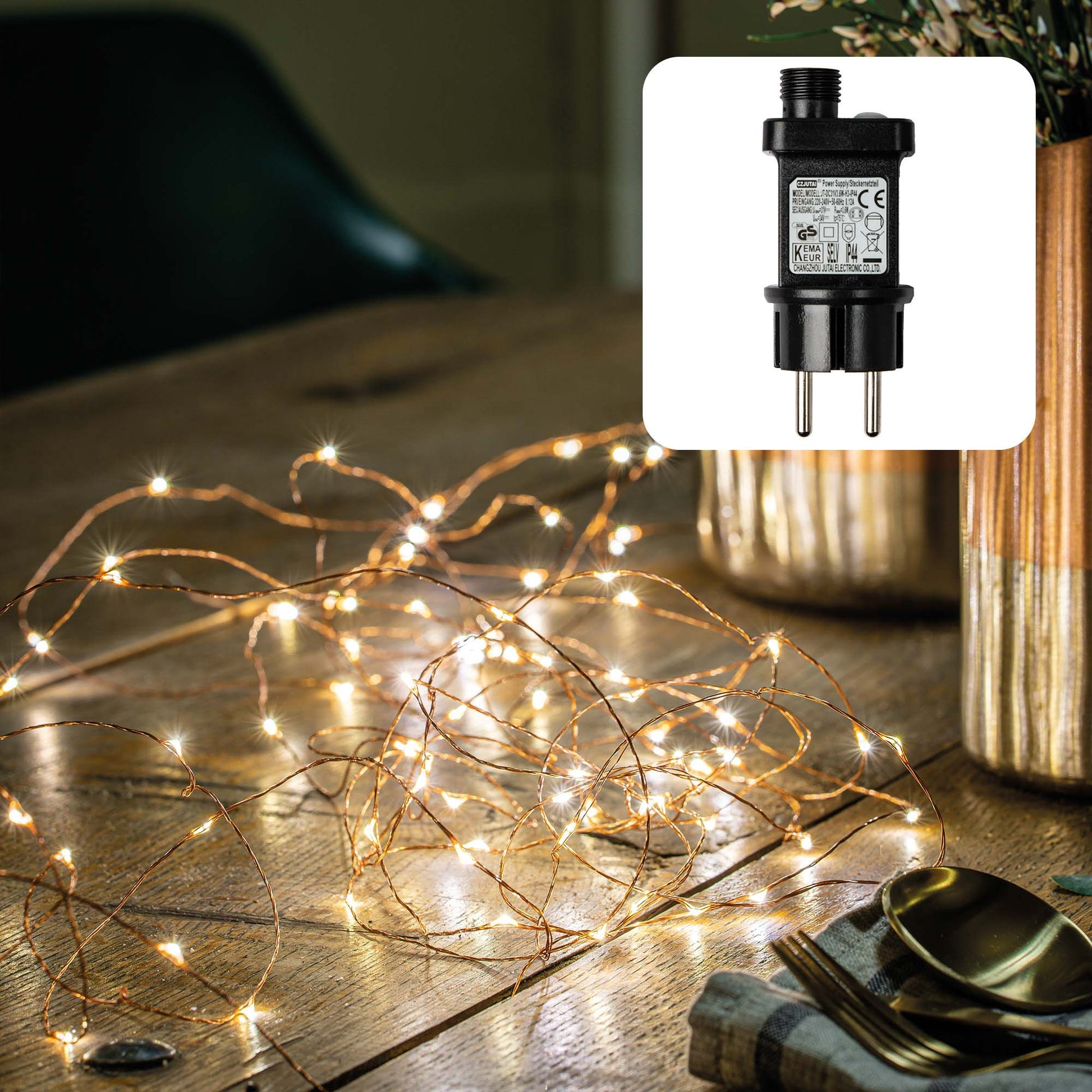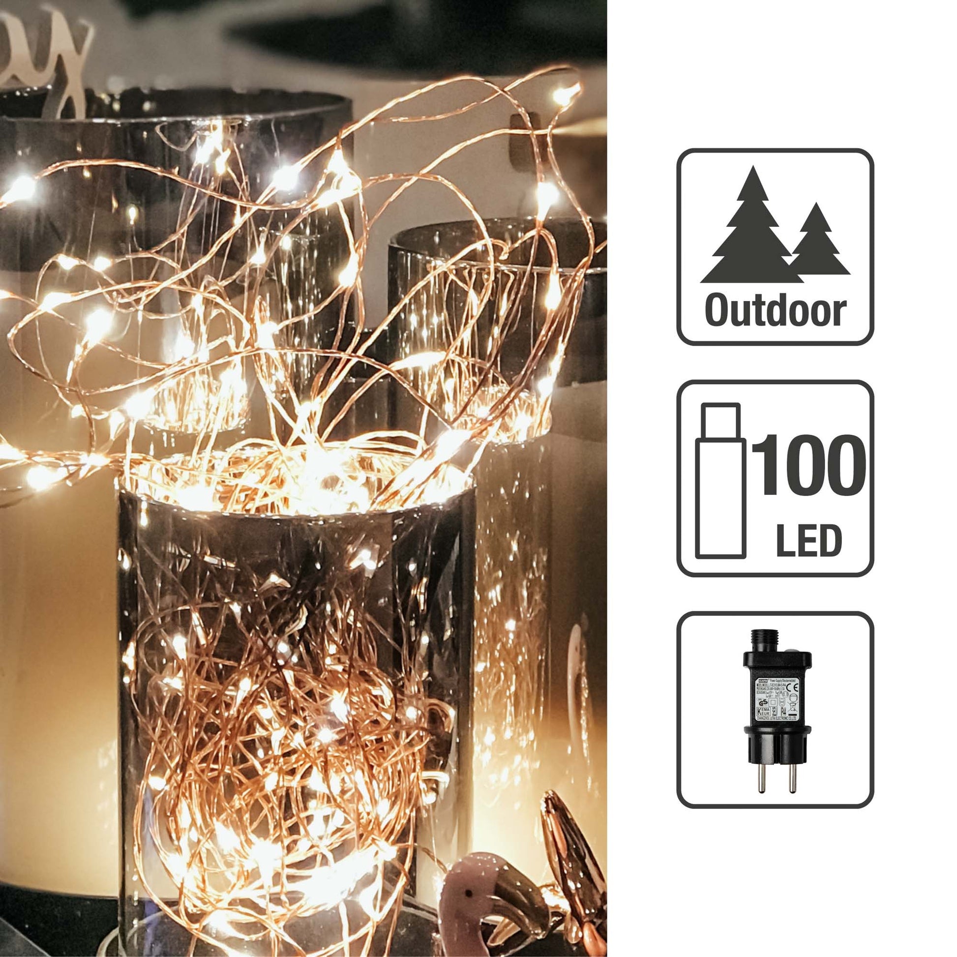 LED-Kupferkabel-Lichterkette, 100 LEDs ww, Timer, Außen-Transformator