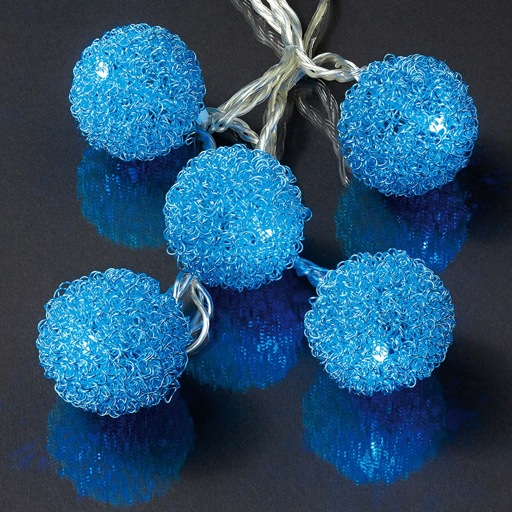 LED-Lichterkette mit blauen Metallkugeln, 20 LEDs blau, Innen-Transformator