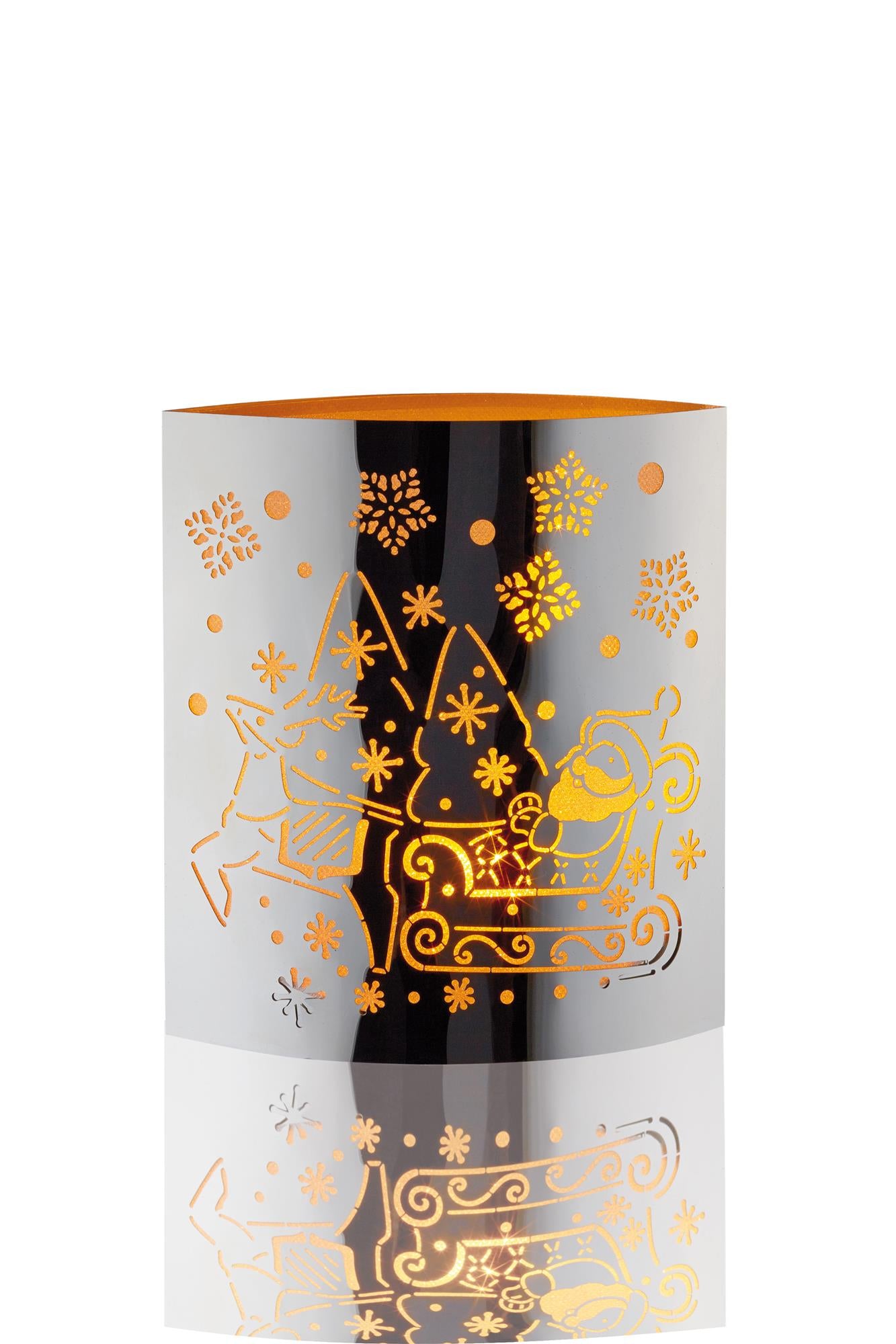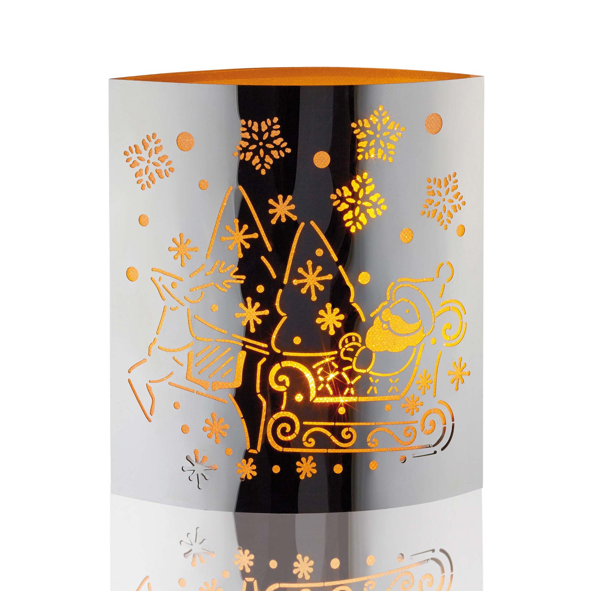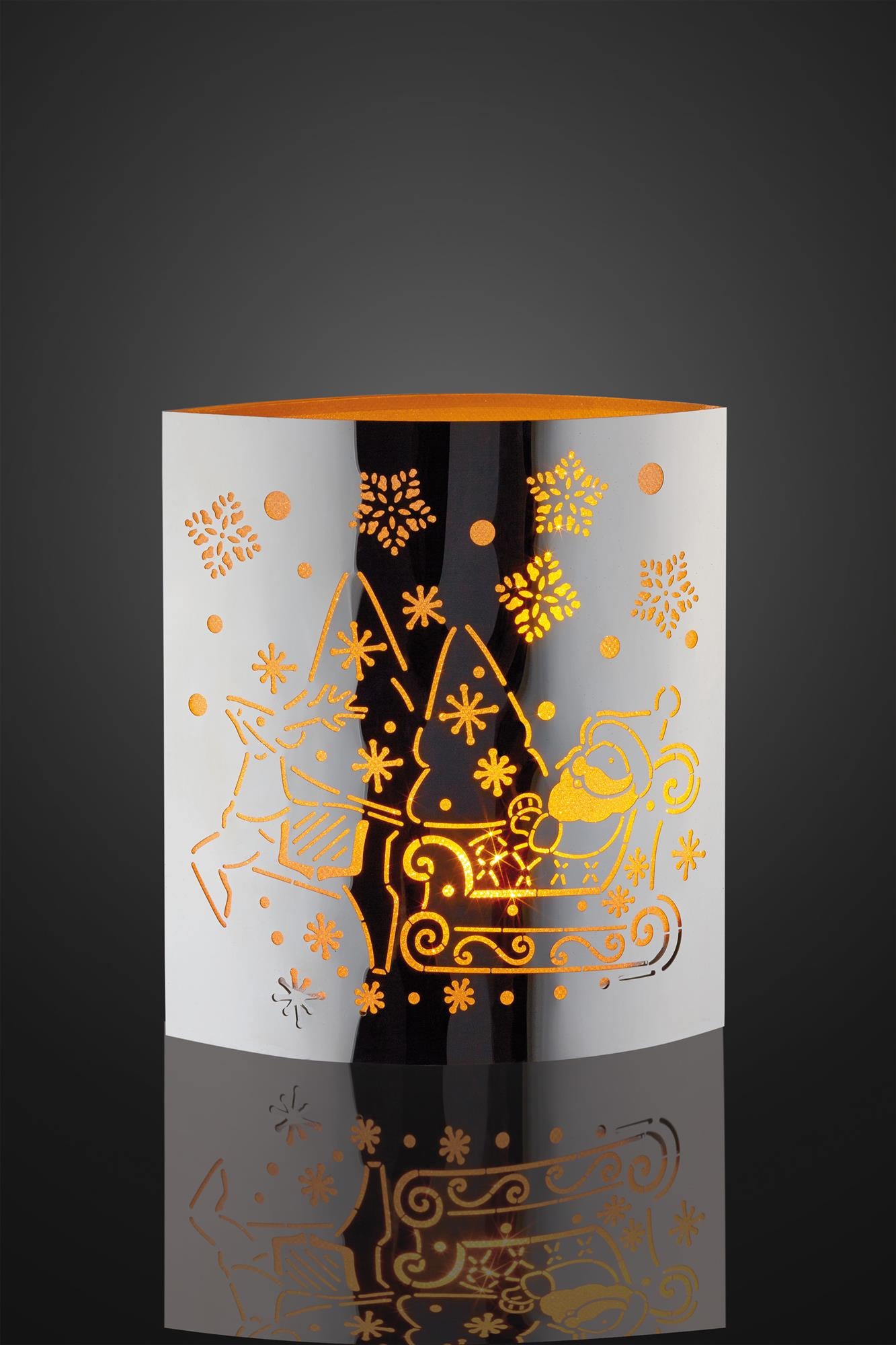Stylisches Windlicht mit weihnachtlichen Motiven ( Weihnachtsmann auf Schlitten mit Rentieren )