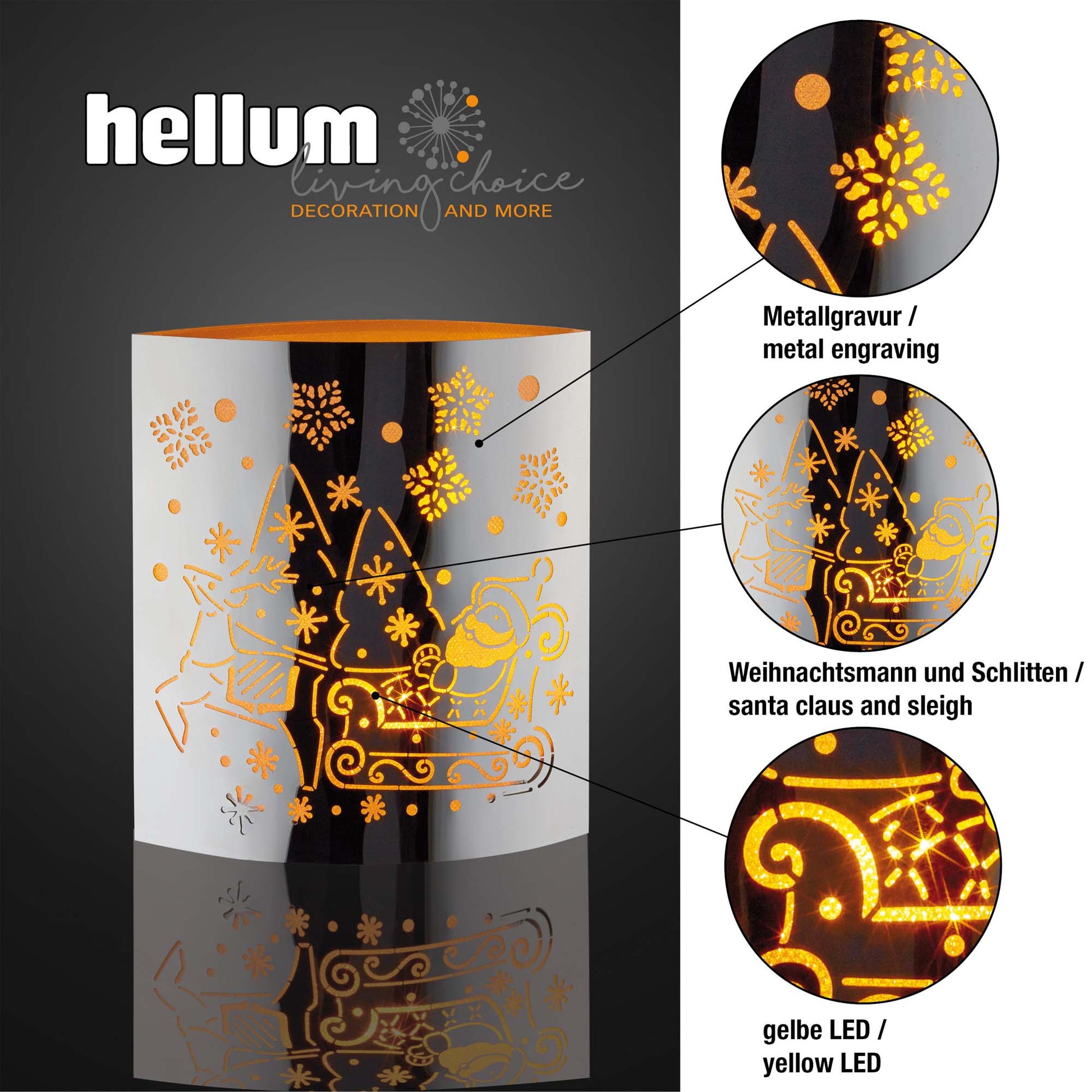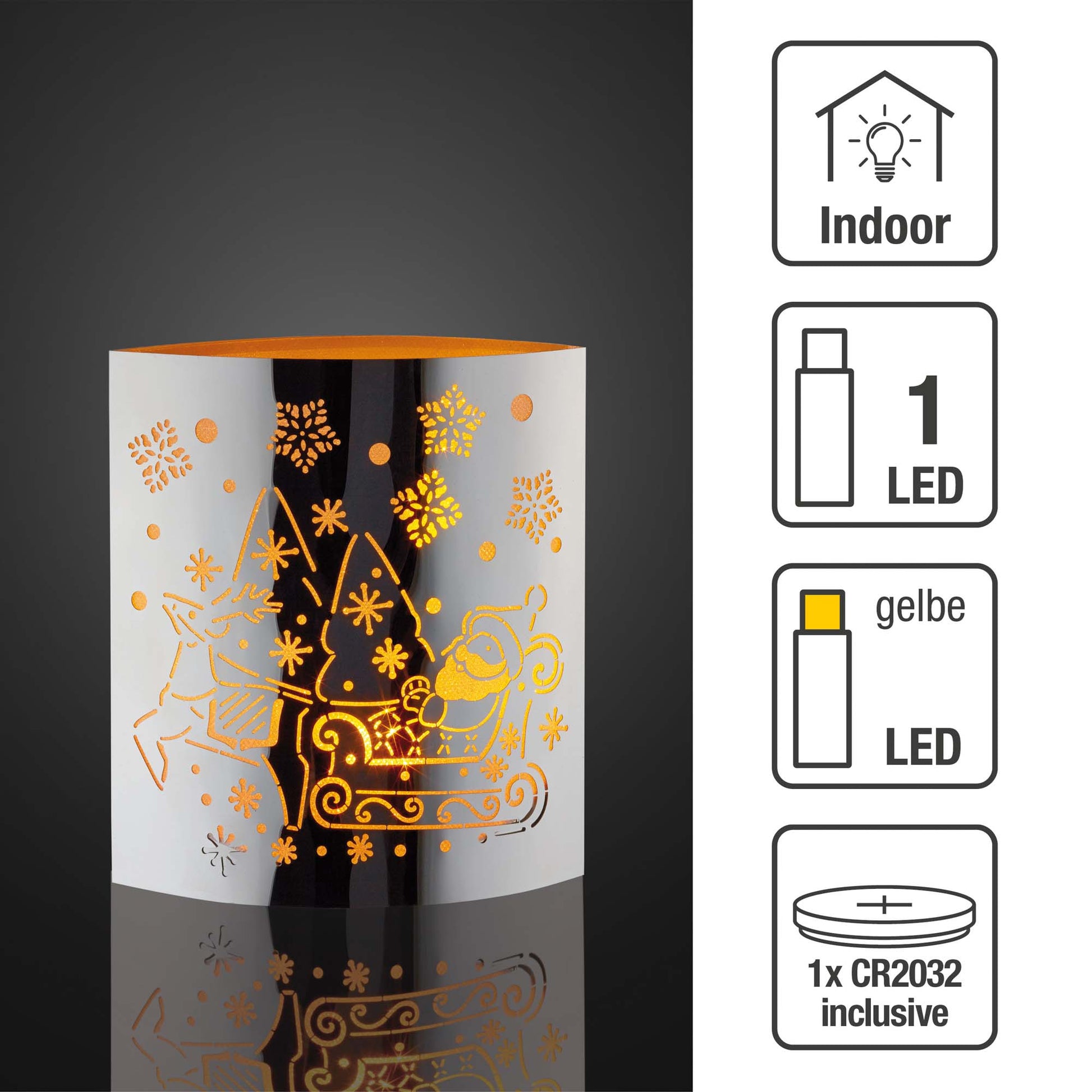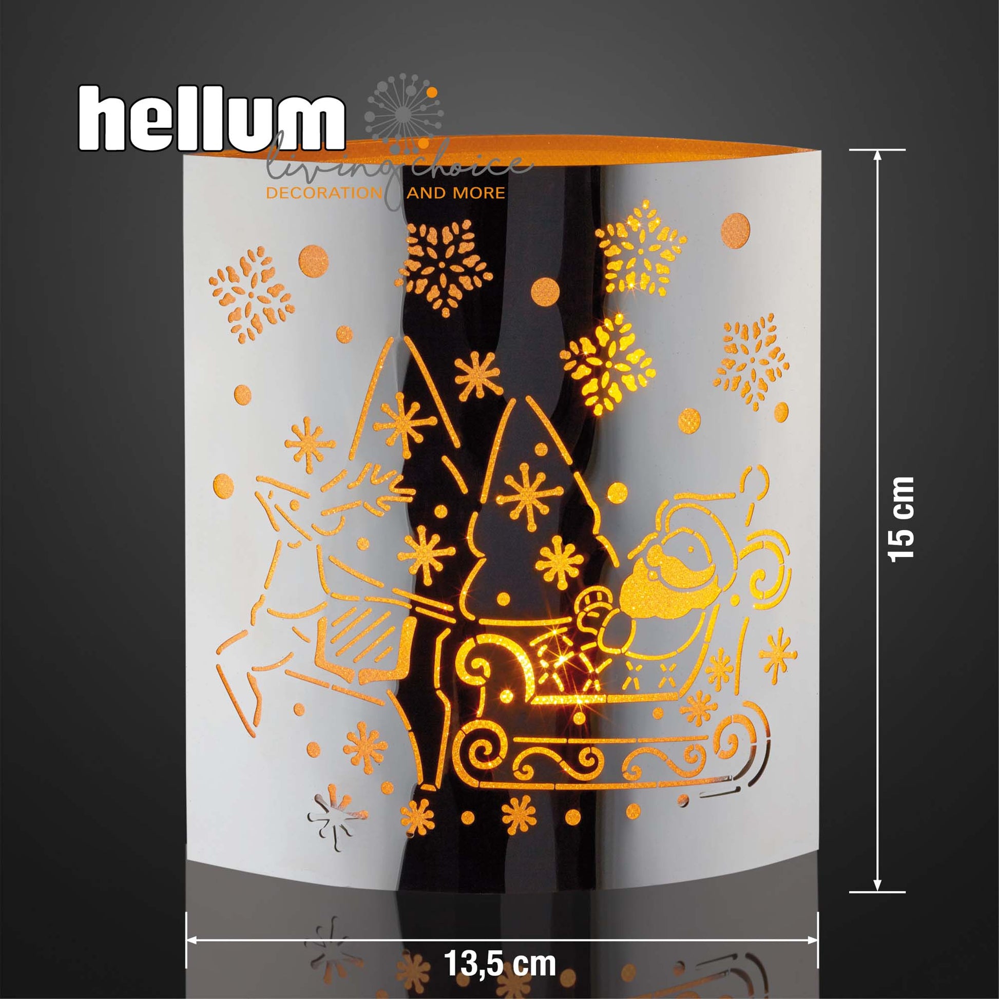 Stylisches Windlicht mit weihnachtlichen Motiven ( Weihnachtsmann auf Schlitten mit Rentieren )