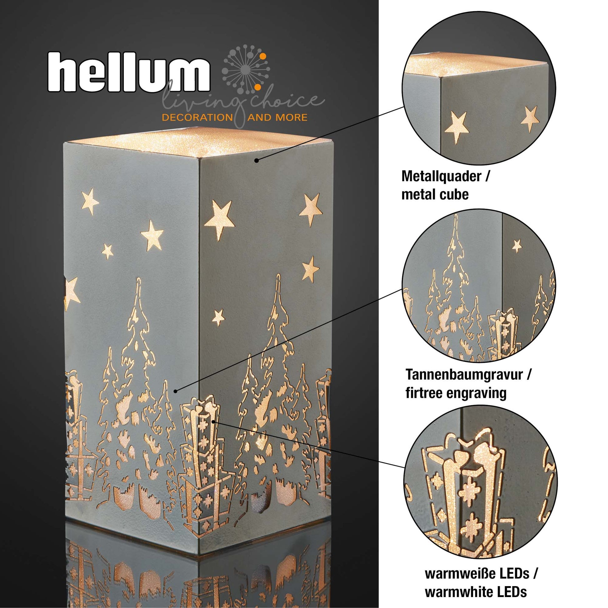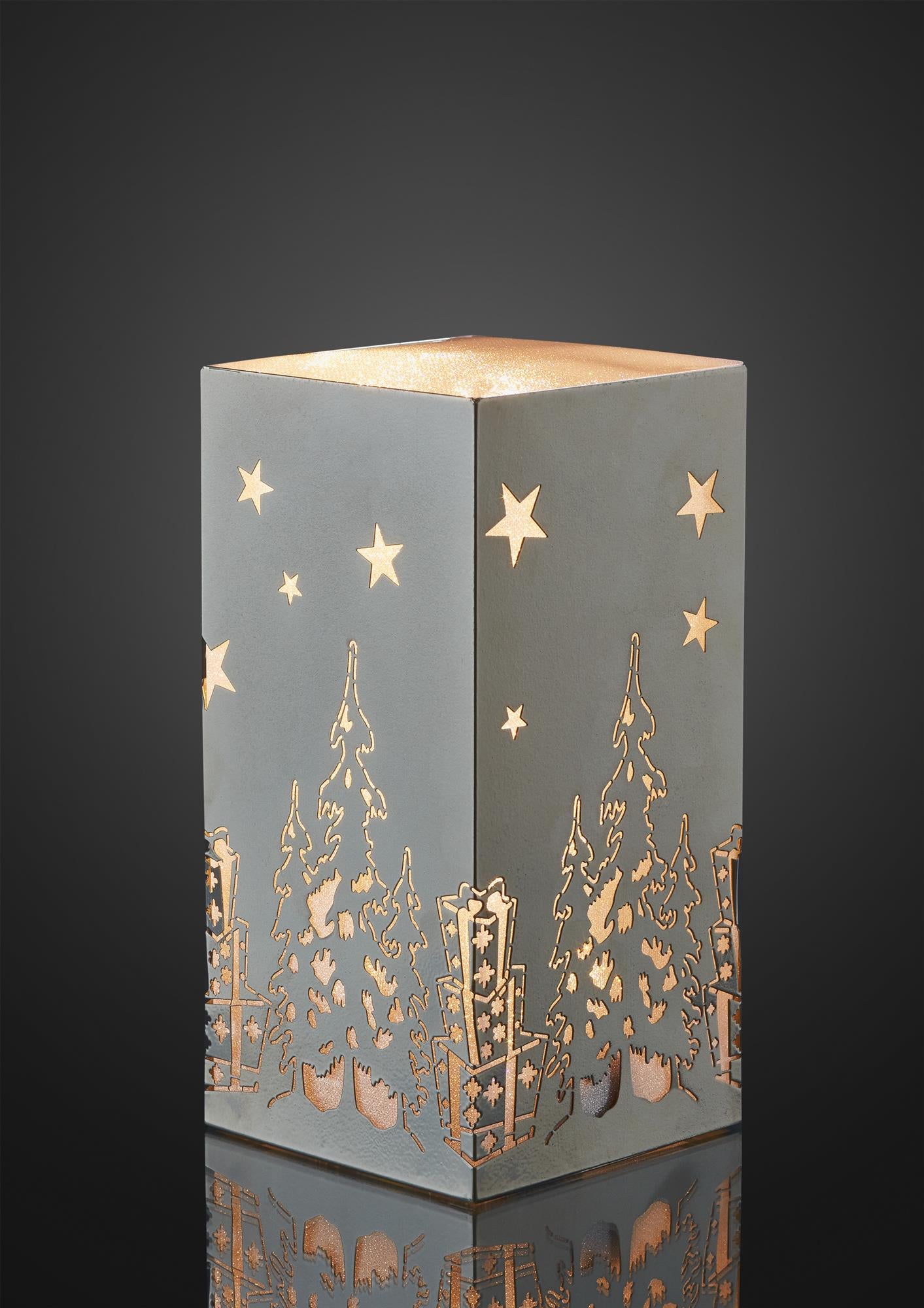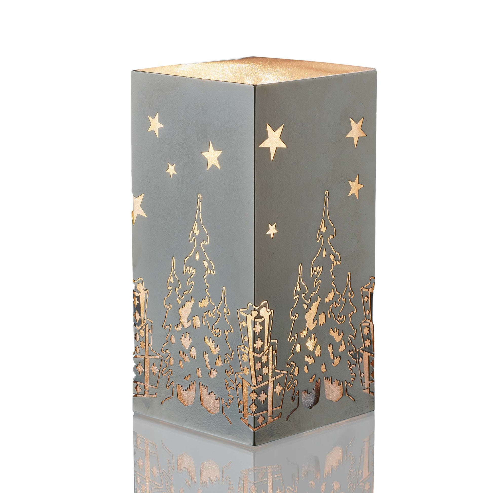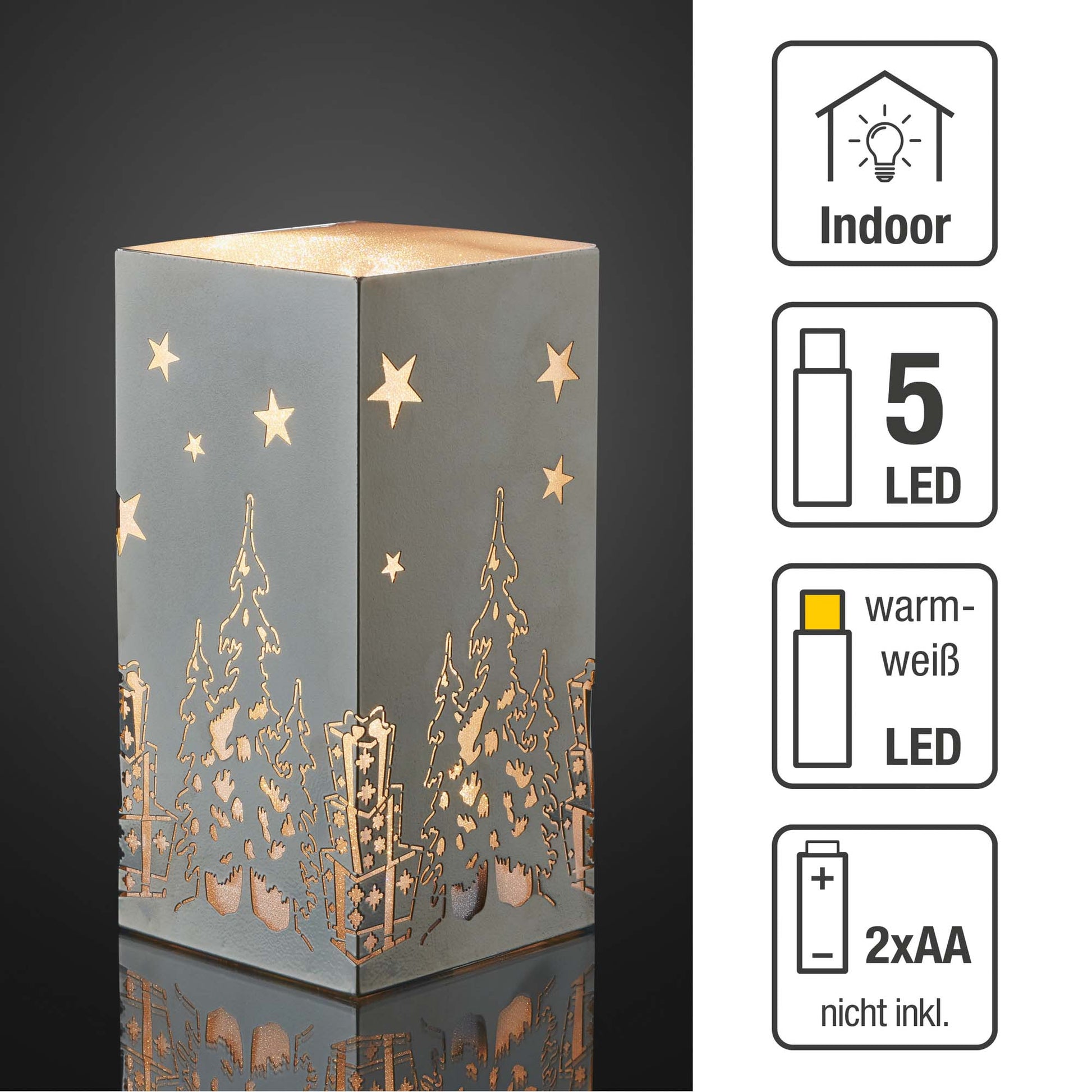 LED-Metall-Quader "Tannenbäume", 5 LEDs ww, batteriebetrieben
