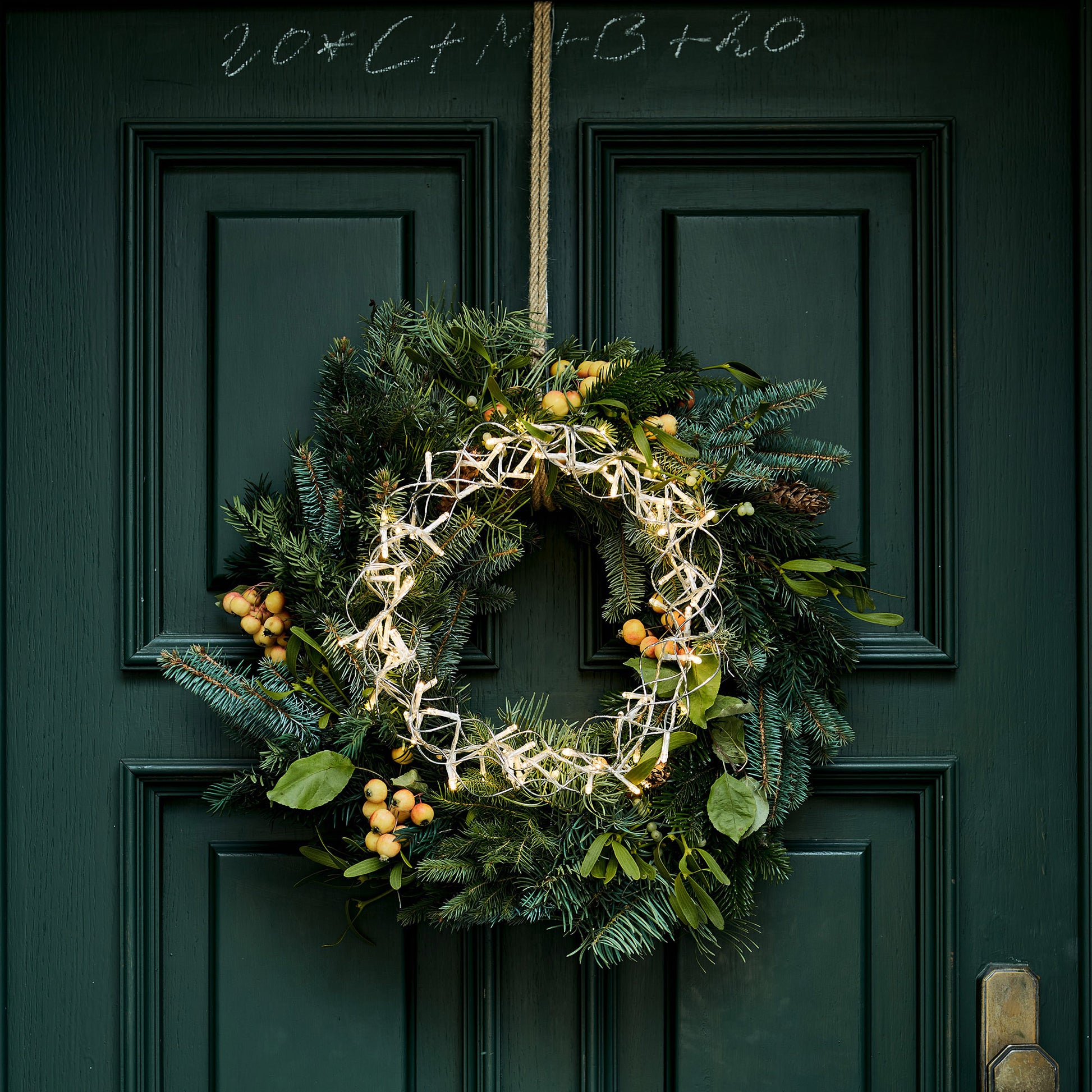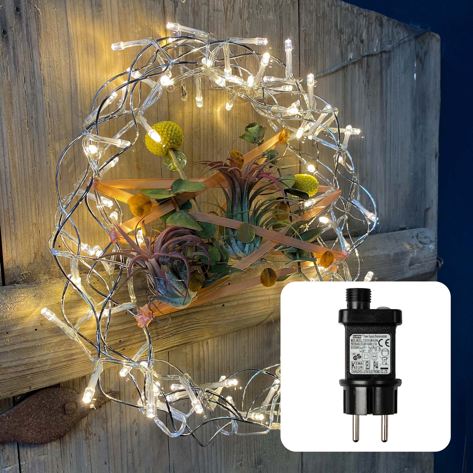 LED-Metall-Kranz DIA 45cm, 120 LEDs ww, Außentransformator