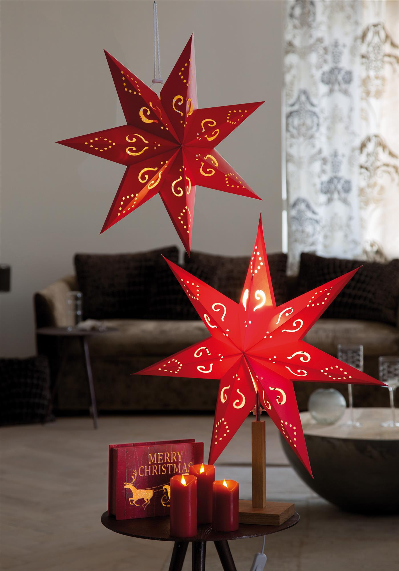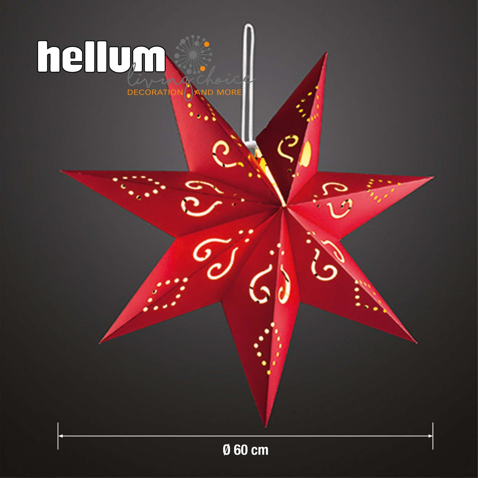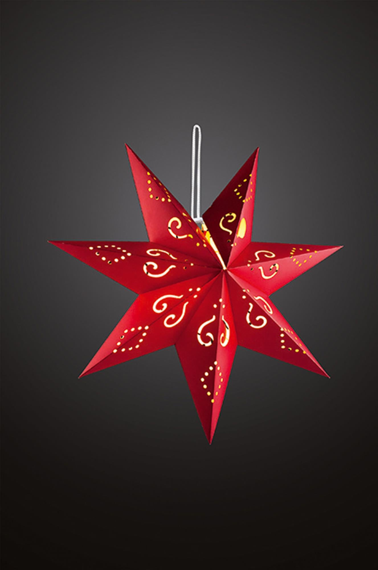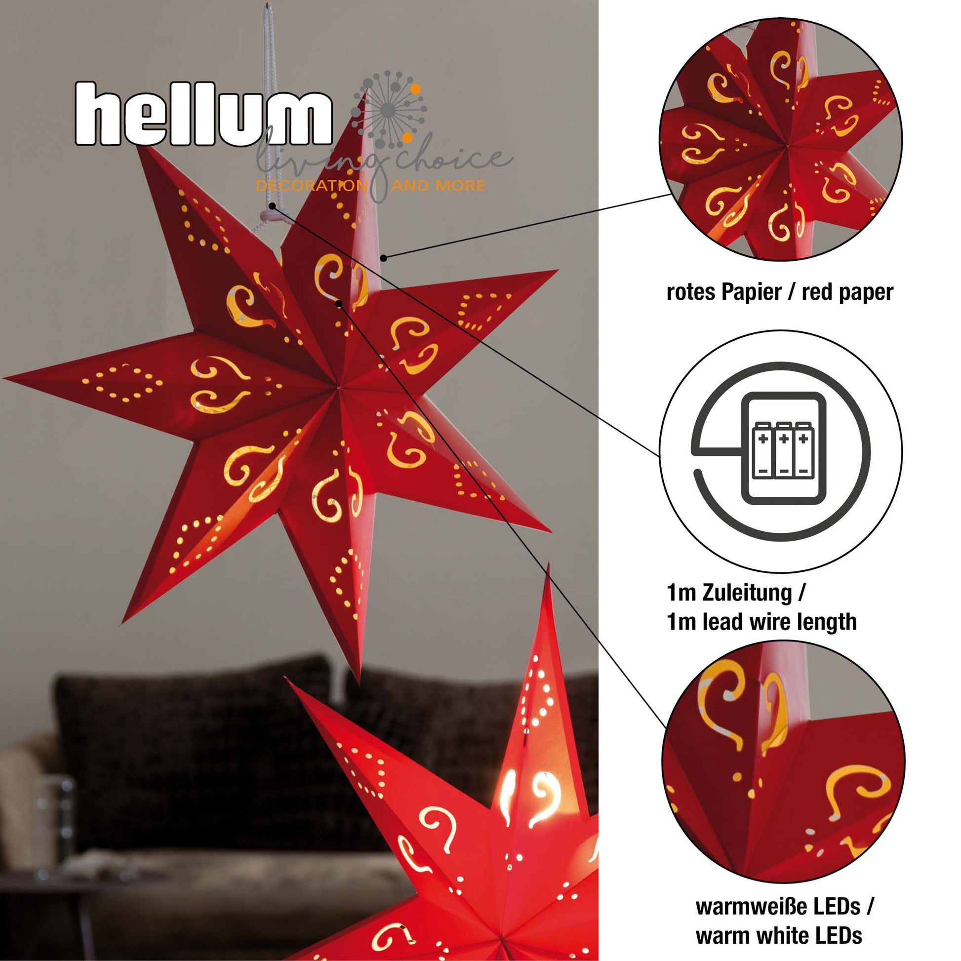 LED-Papierstern zum Aufhängen, rot, 30 LEDs ww, mit FB, batteriebetrieben