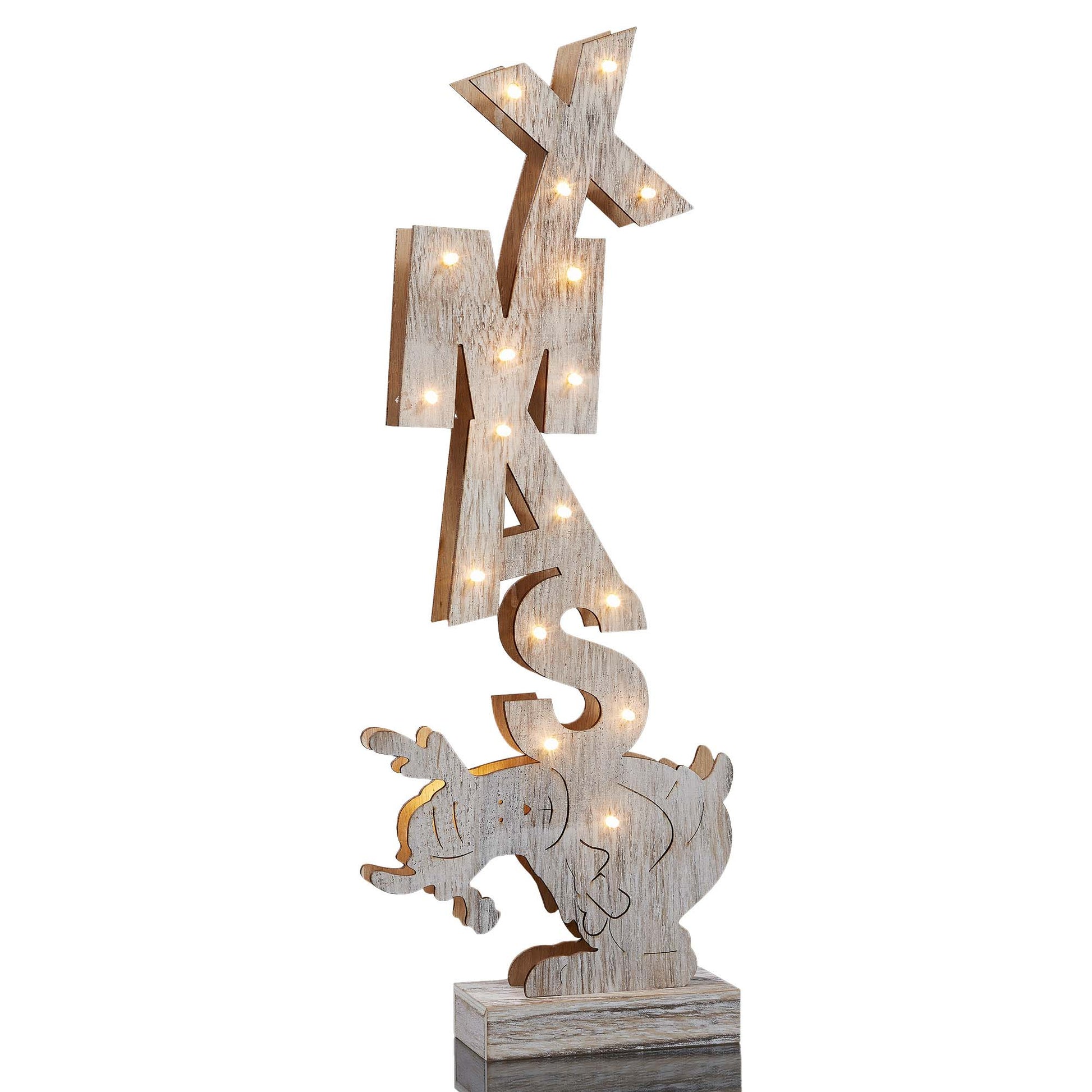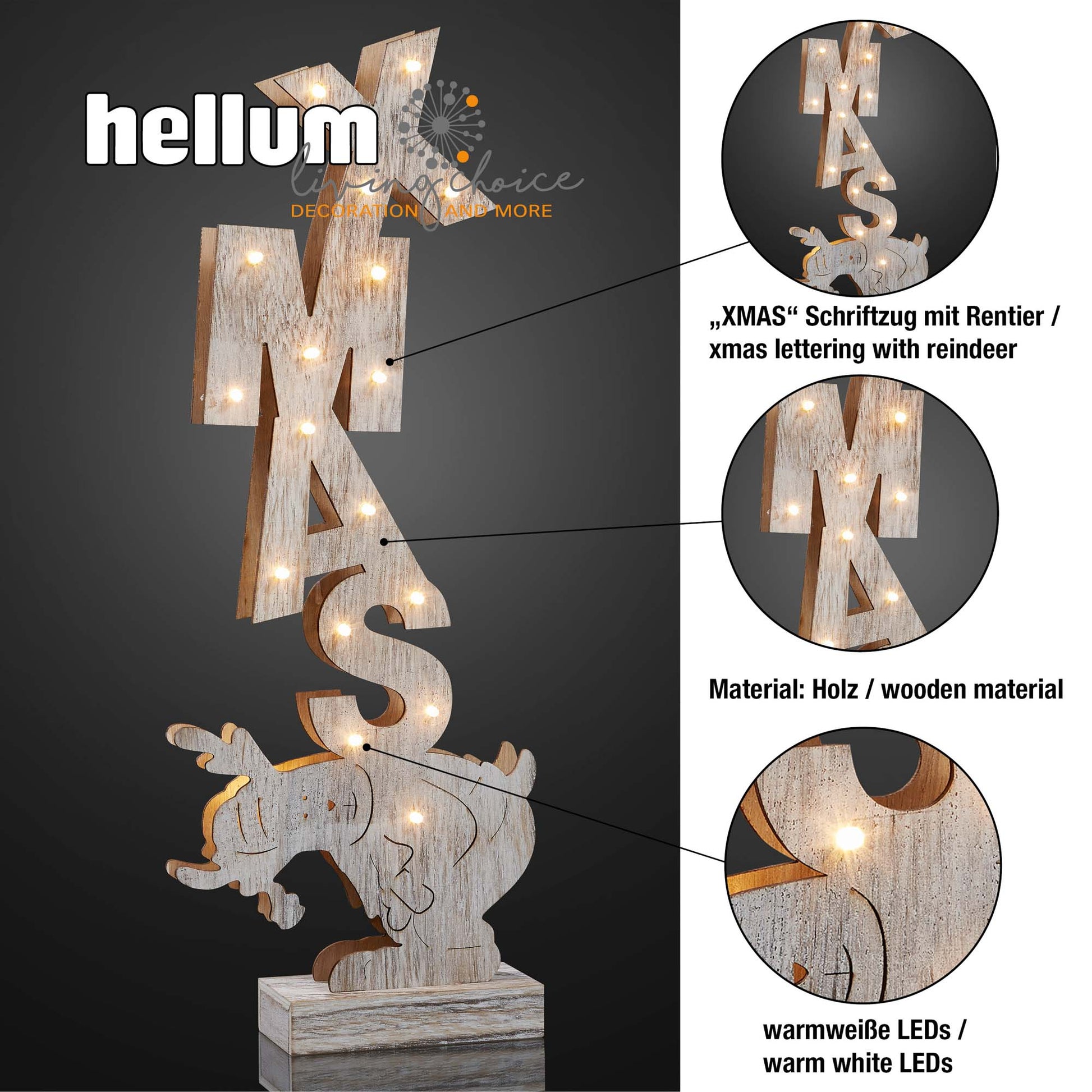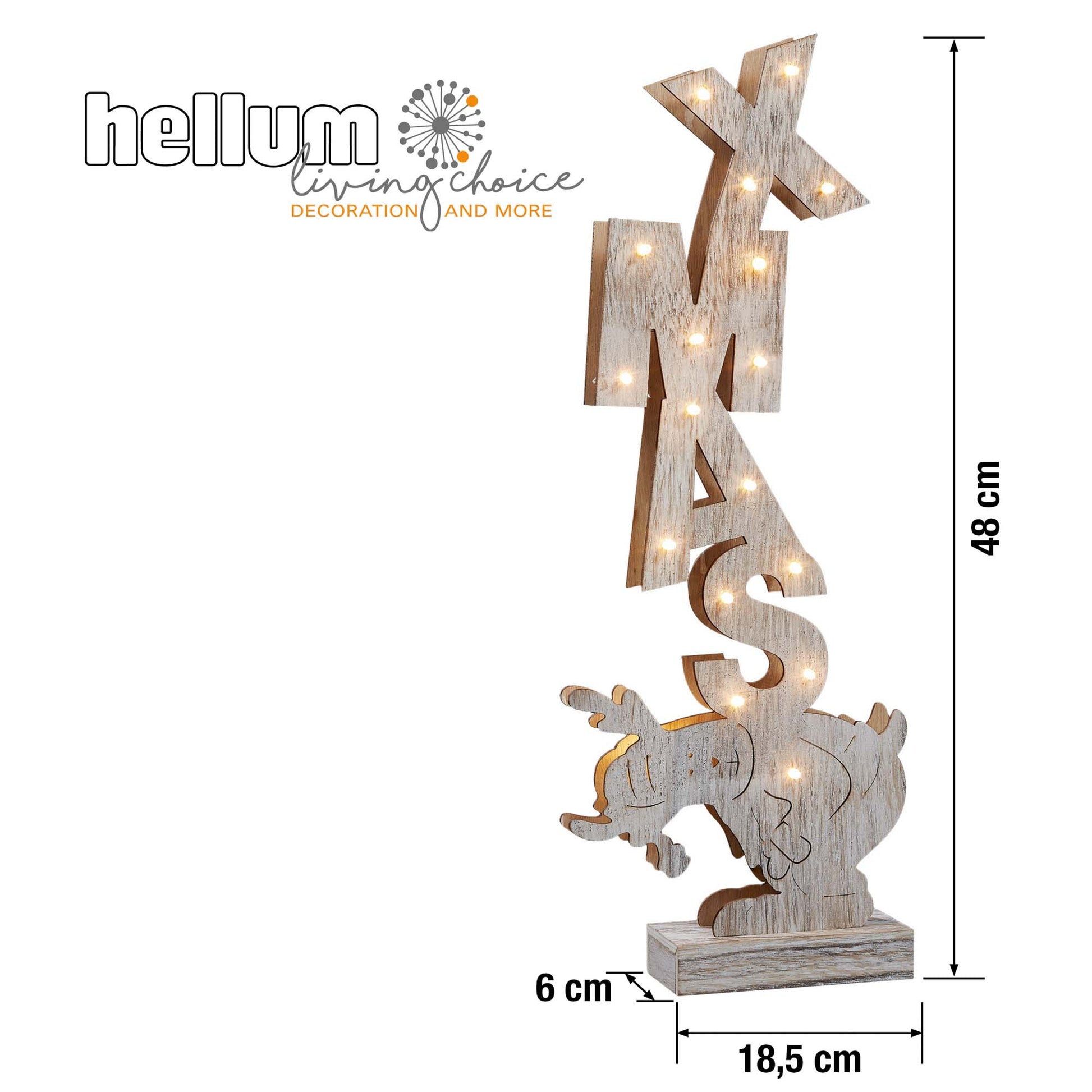 LED-Rentier aus Holz "Xmas", 18 LEDs warm-weiß, batteriebetrieben