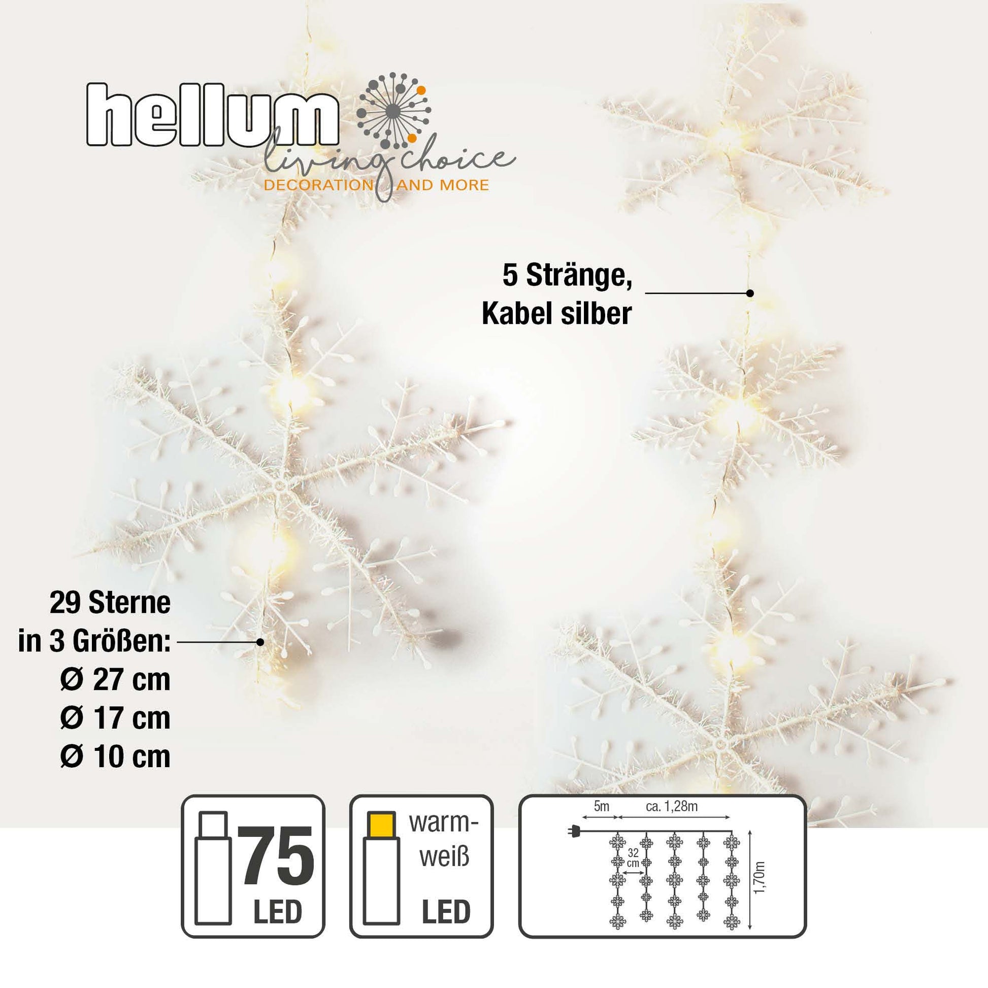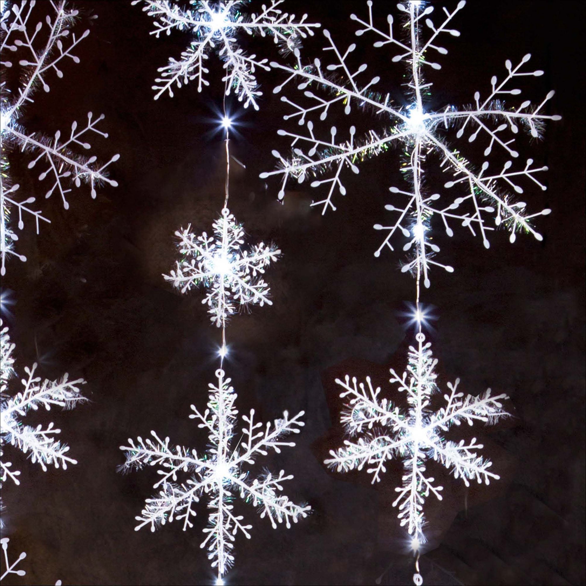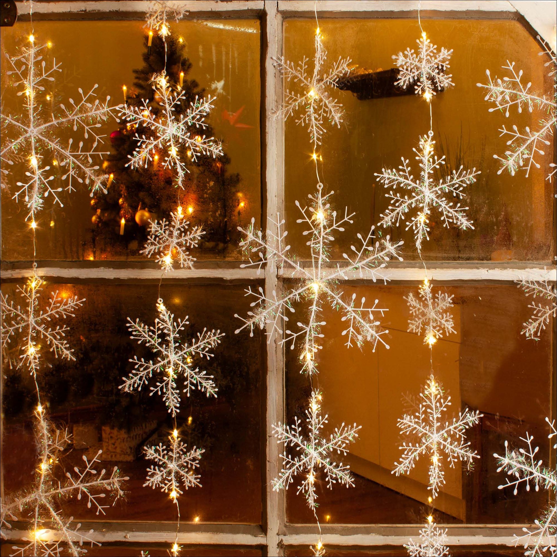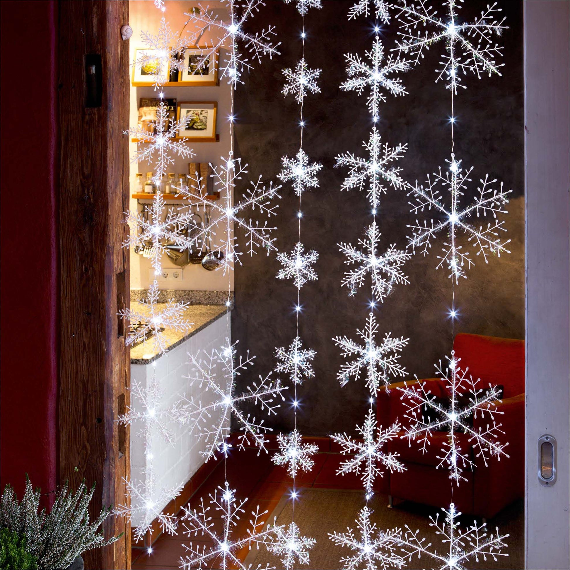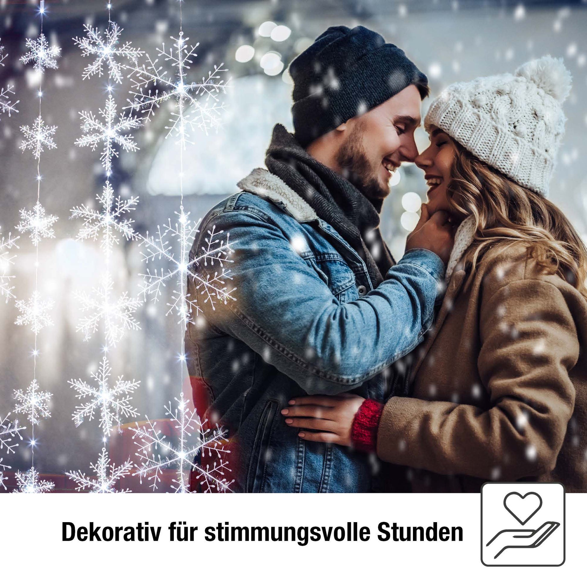 Der Schneeflockenvorhang besticht durch seinen unverwechselbaren Lichterglanz: 75 Lichter auf 5 Strängen sorgen für sehr angenehmes warmweißes Licht. Durch seine flexible Anbringung im Außen- und Innenbereich sorgt er für stimmungsvolle Beleuchtung - Wohlfühlatmosphäre inklusive. Lassen Sie sich inspirieren!