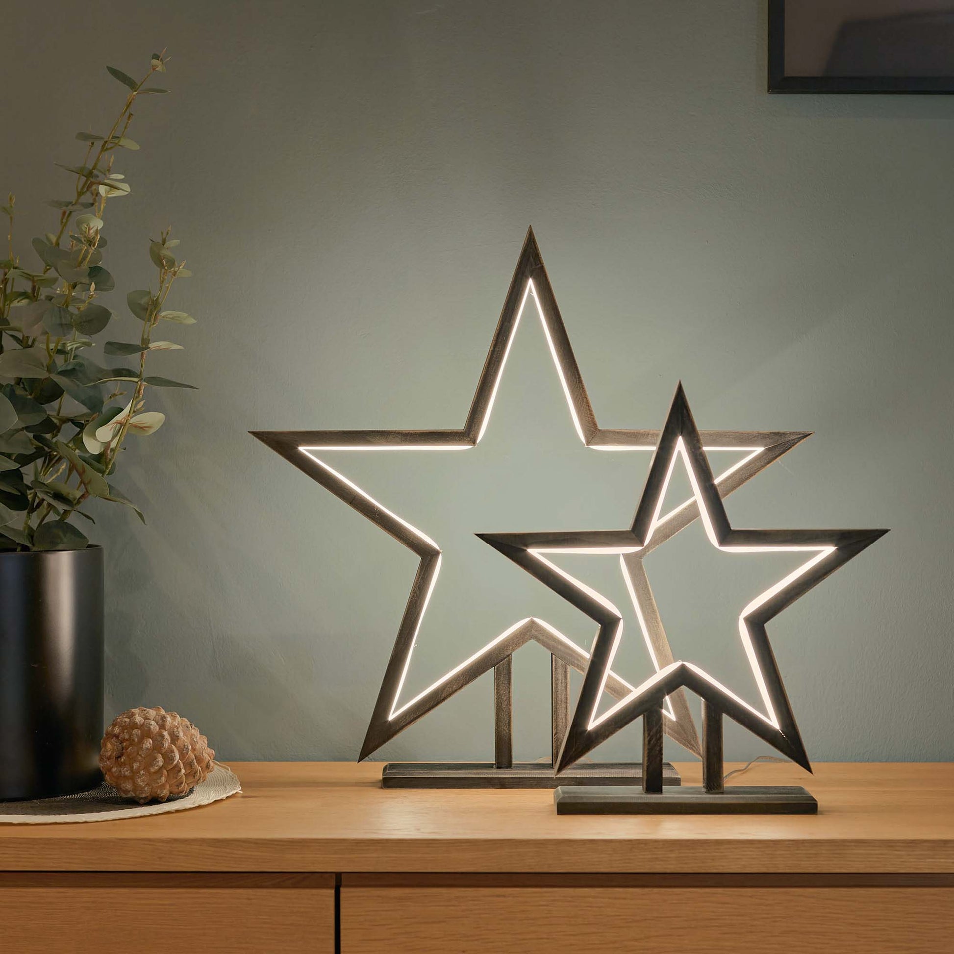 Stern aus Bambus, schwarz, Ø 35cm, mit LED-Neon Lichtschlauch, Innen-Transformator