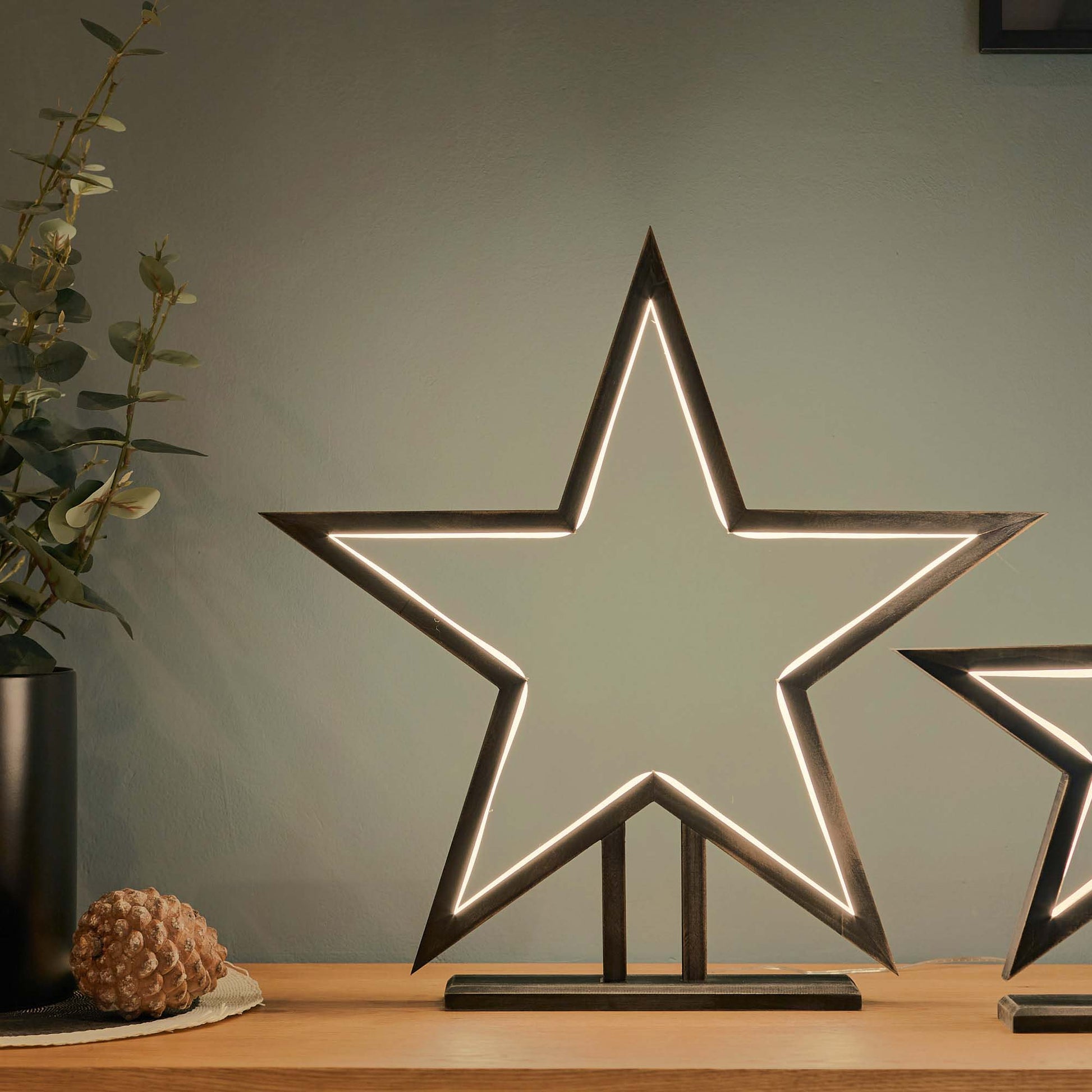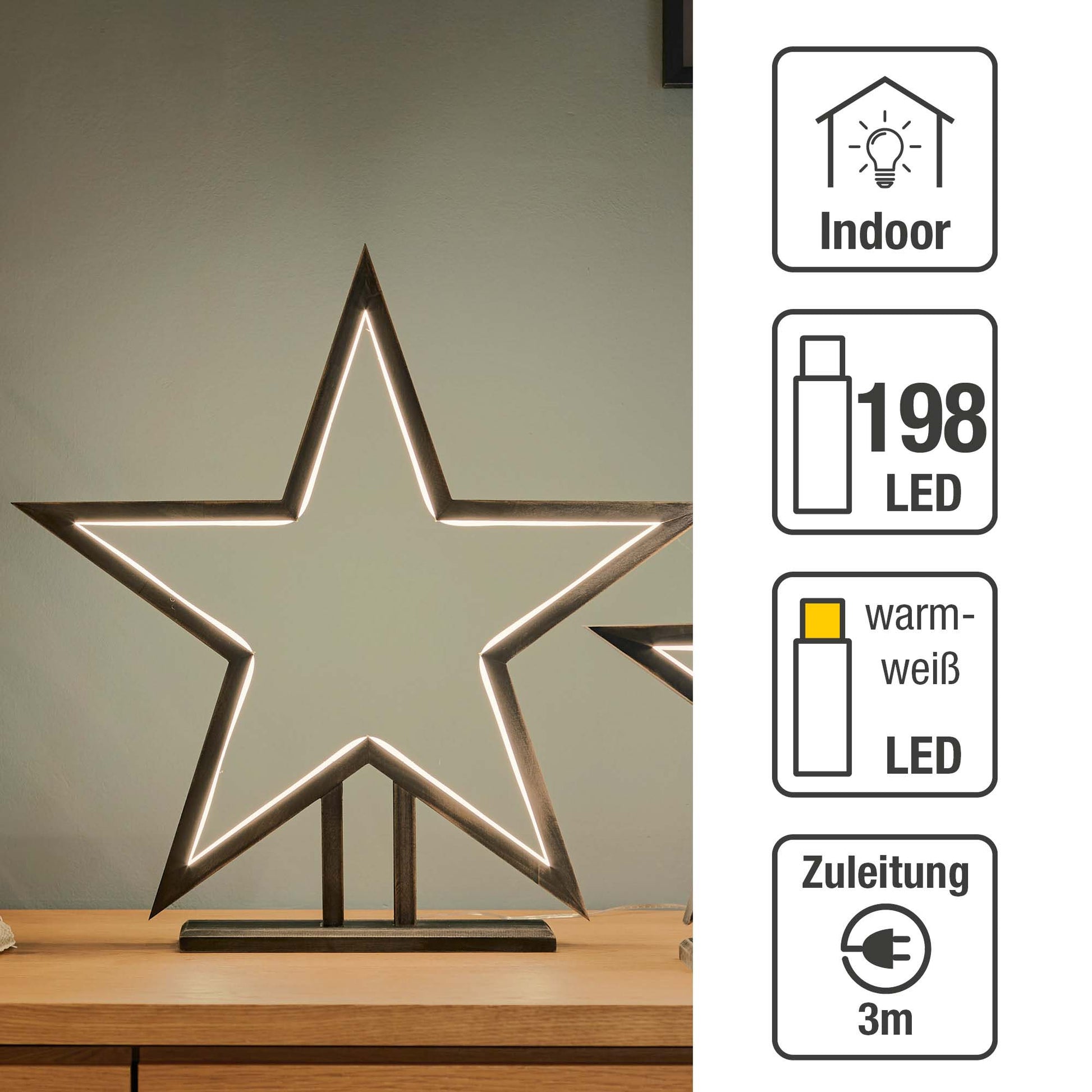 Stern aus Bambus, schwarz, Ø 50cm, mit LED-Neon Lichtschlauch, Innen-Transformator
