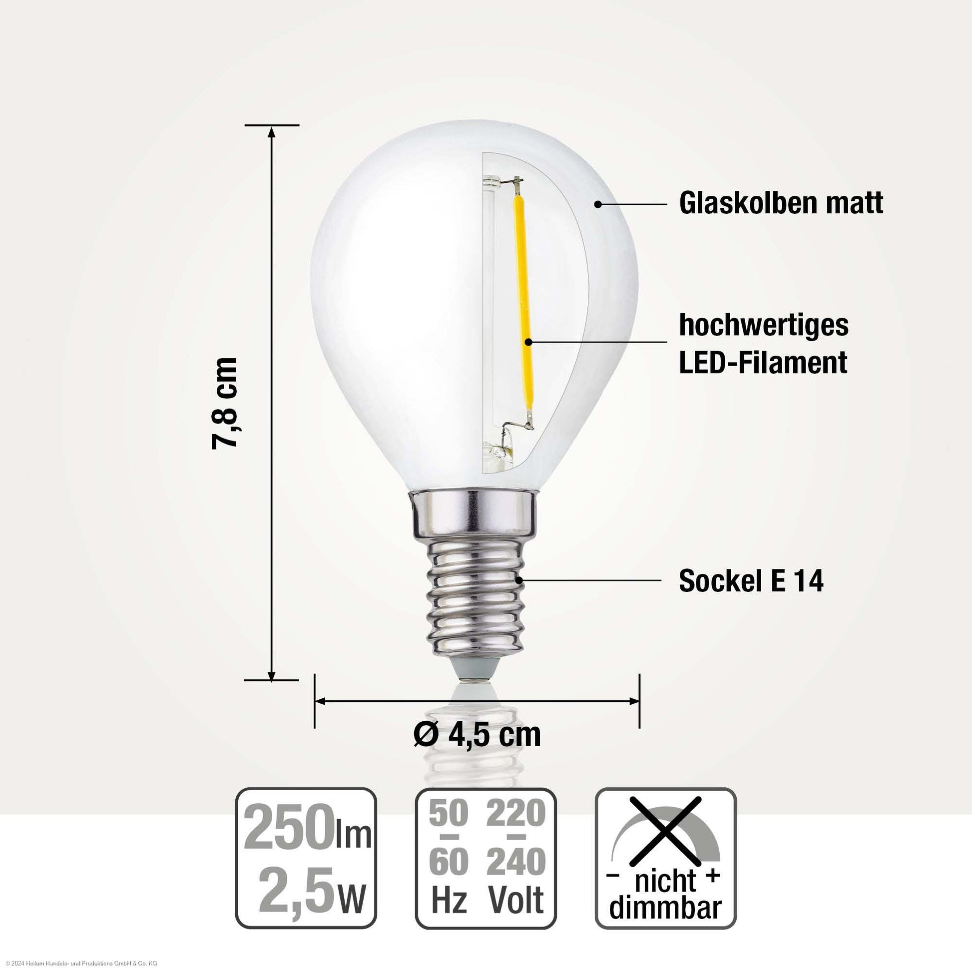 LED-Tropfenlampe G45, E14, 2,2 W, Glas matt, 250 lm