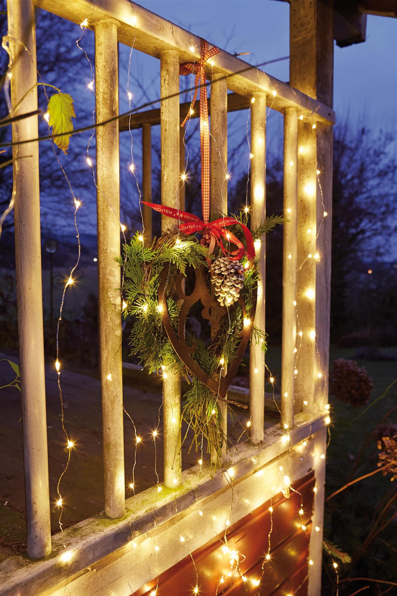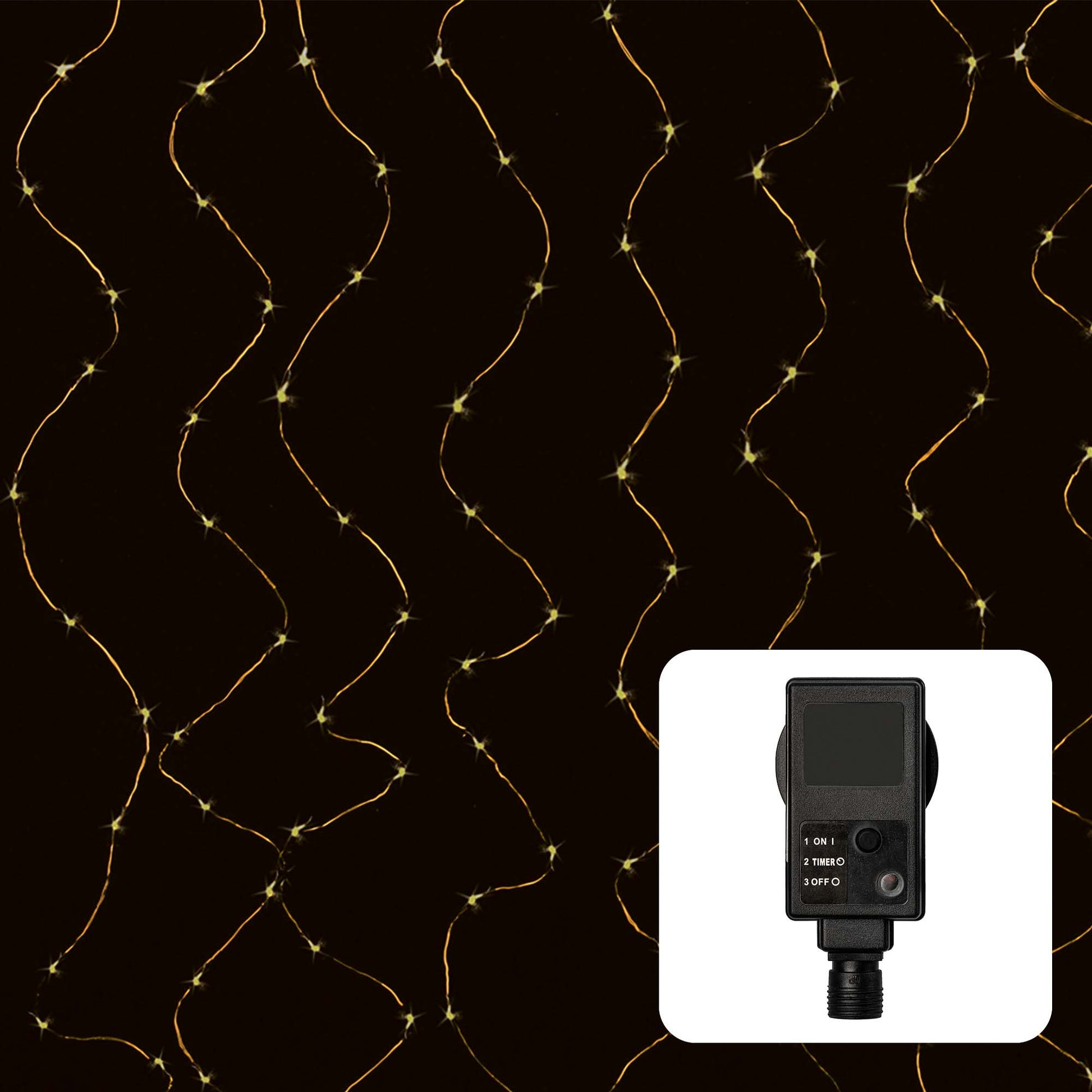 LED-Vorhang "Tauperlen", 180 LEDs ww, 12 Stränge,optionaler Timer, Außen-Transformator