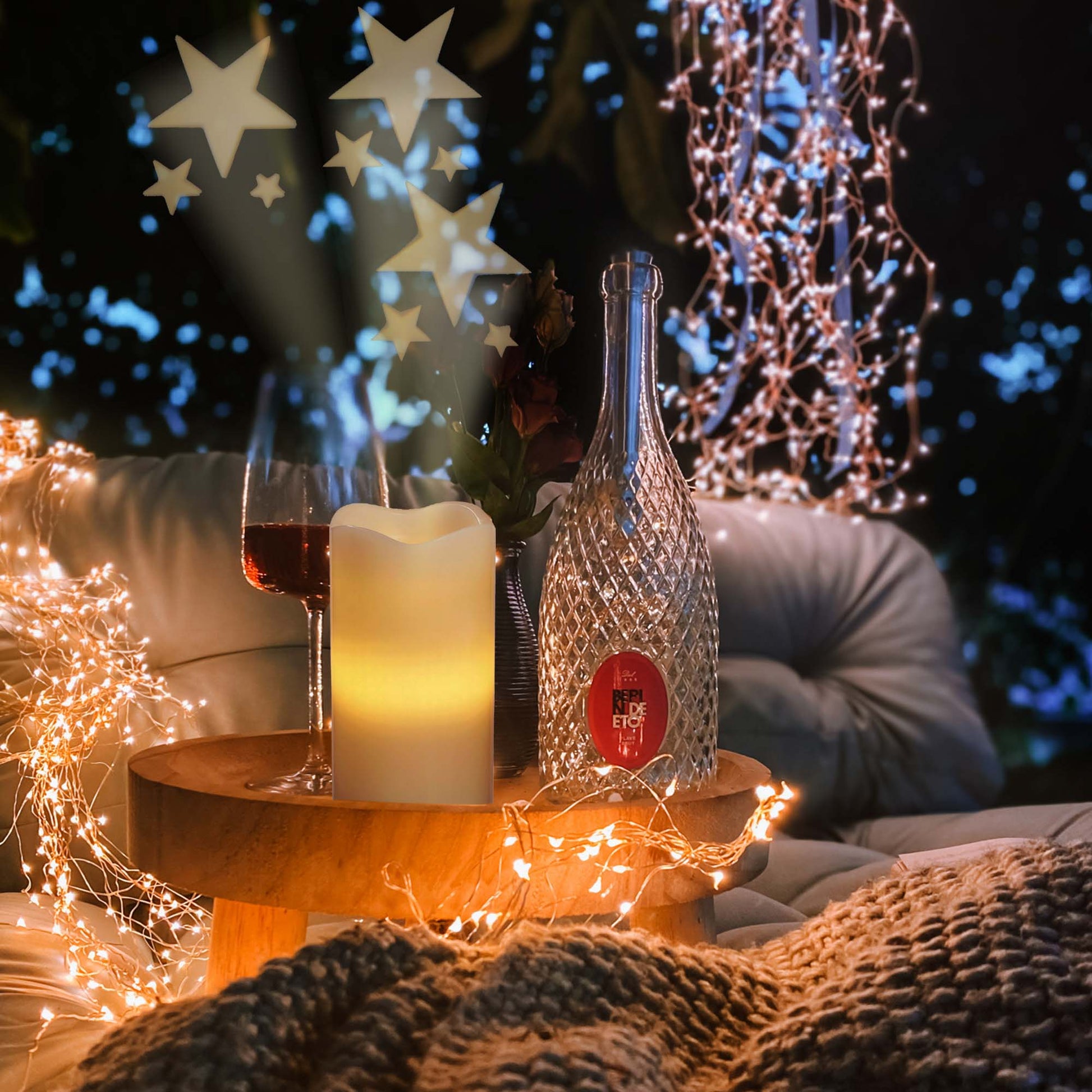 Die große Kerze sorgt mir ihrer bewegten Sternenprojektion für ein stimmungsvolles Raumambiente. Der intergrierte Timer sorgt für eine optimale und resourcensparende Nutzung ohne großen Aufwand.