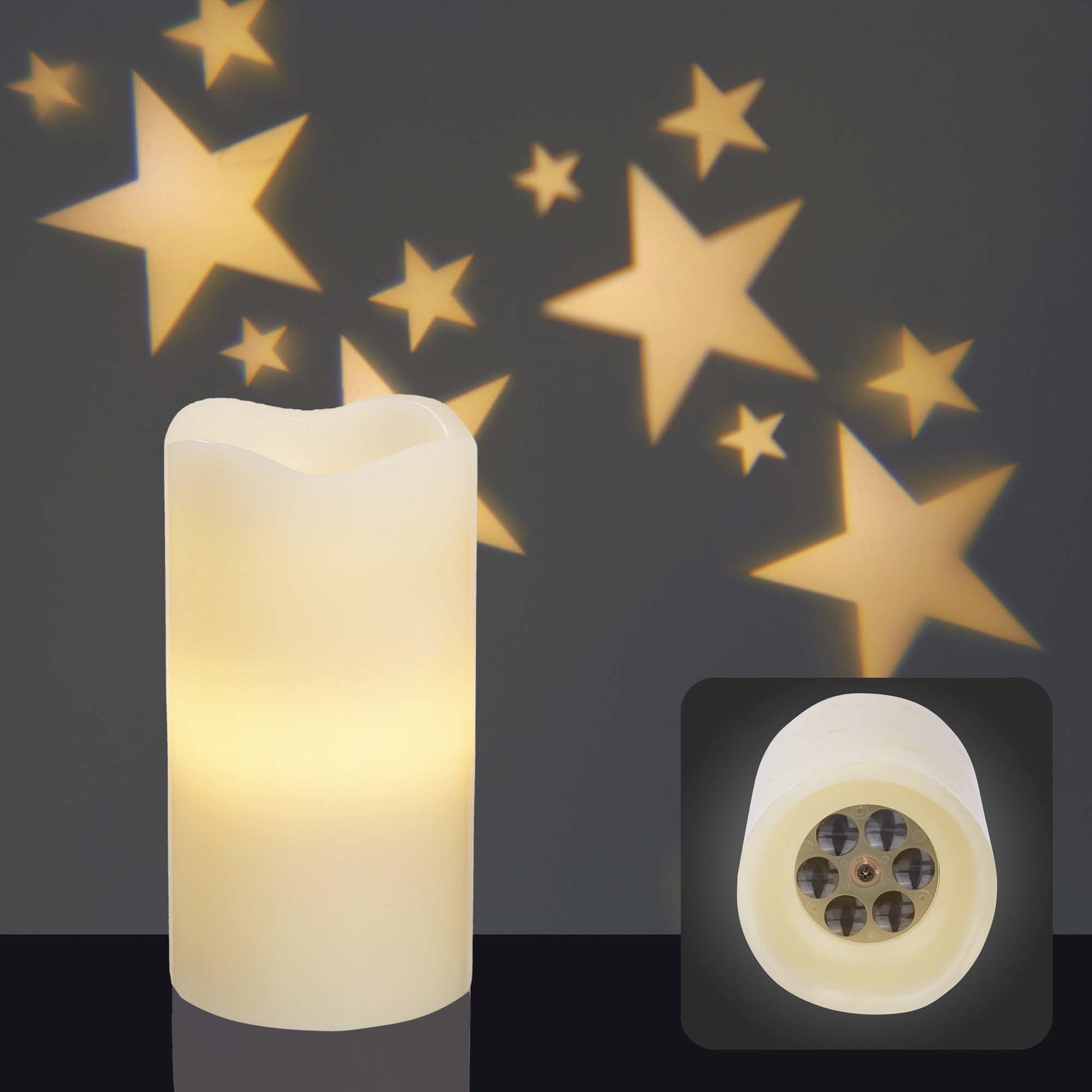 LED-Wachskerze mit Sternenprojektion, mit Timer, batteriebetrieben