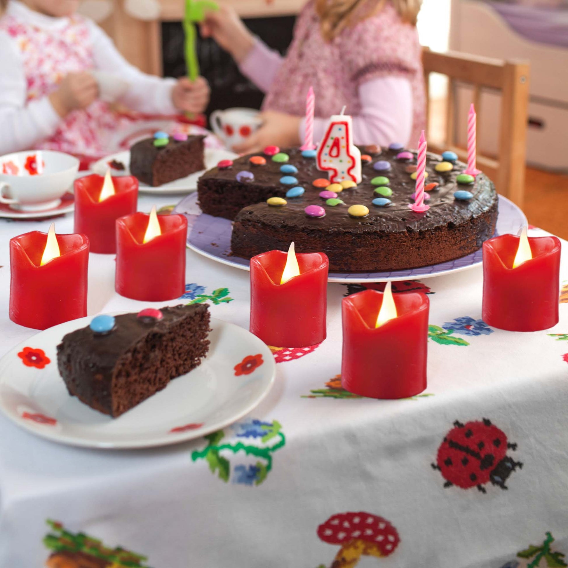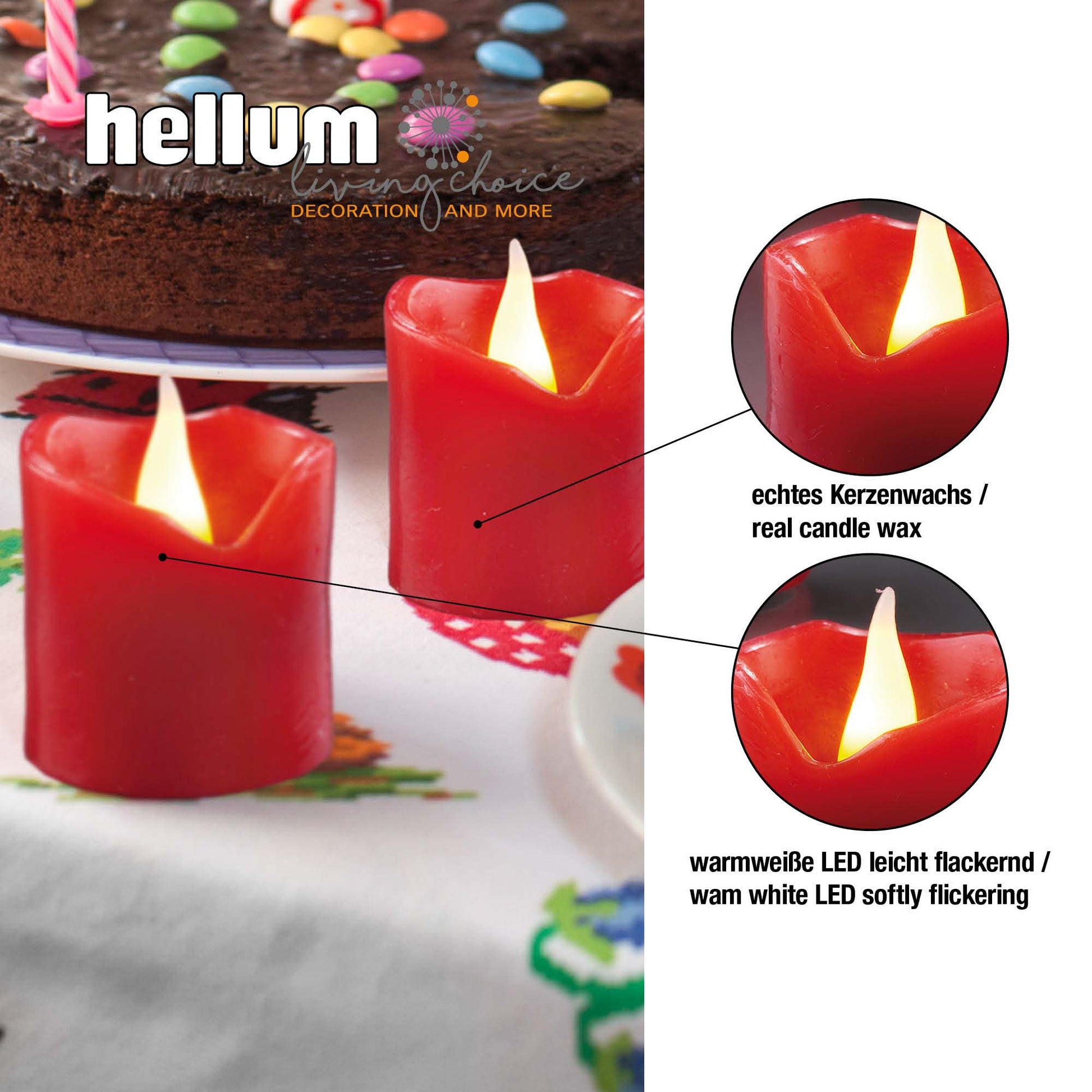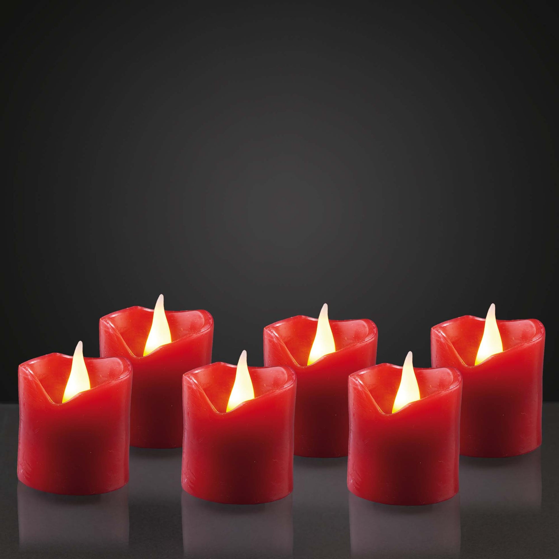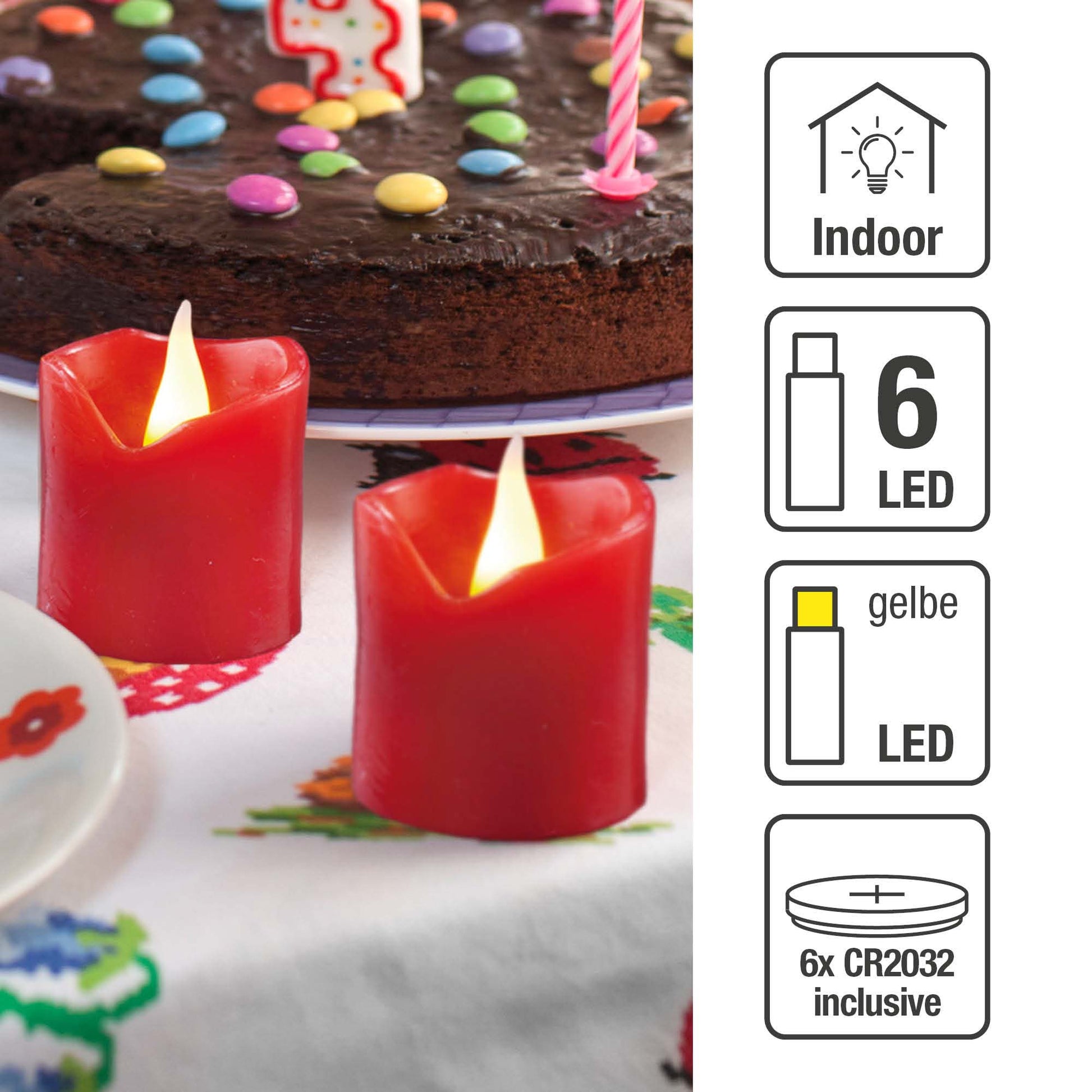 LED-Wachskerzen, 6er-Set, 5 cm hoch, 4 cm Ø, rot, gelbe LED, batteriebetrieben