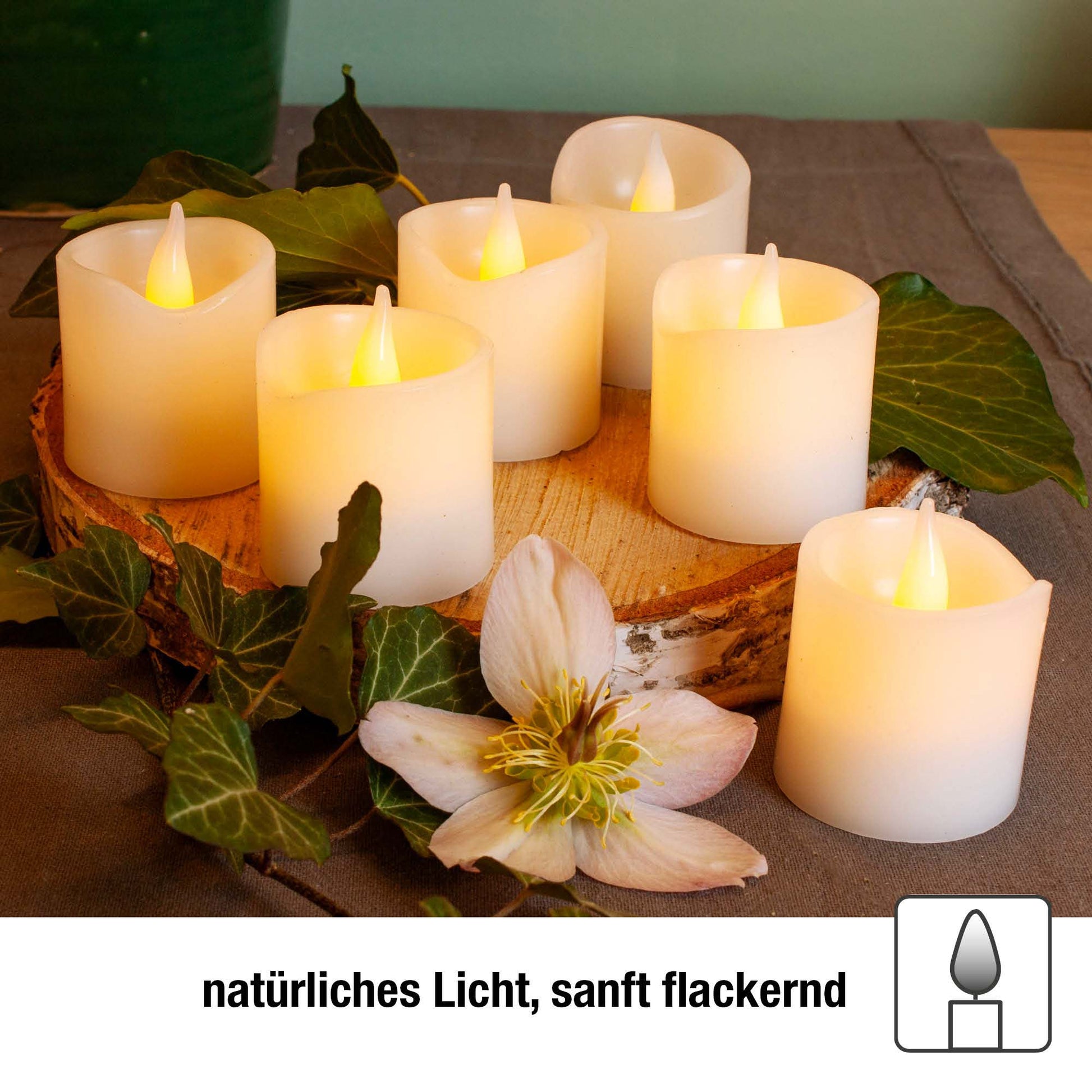 LED-Wachskerzen, 6er Set, weiß, 5x5cm, inkl. Batterien_572100