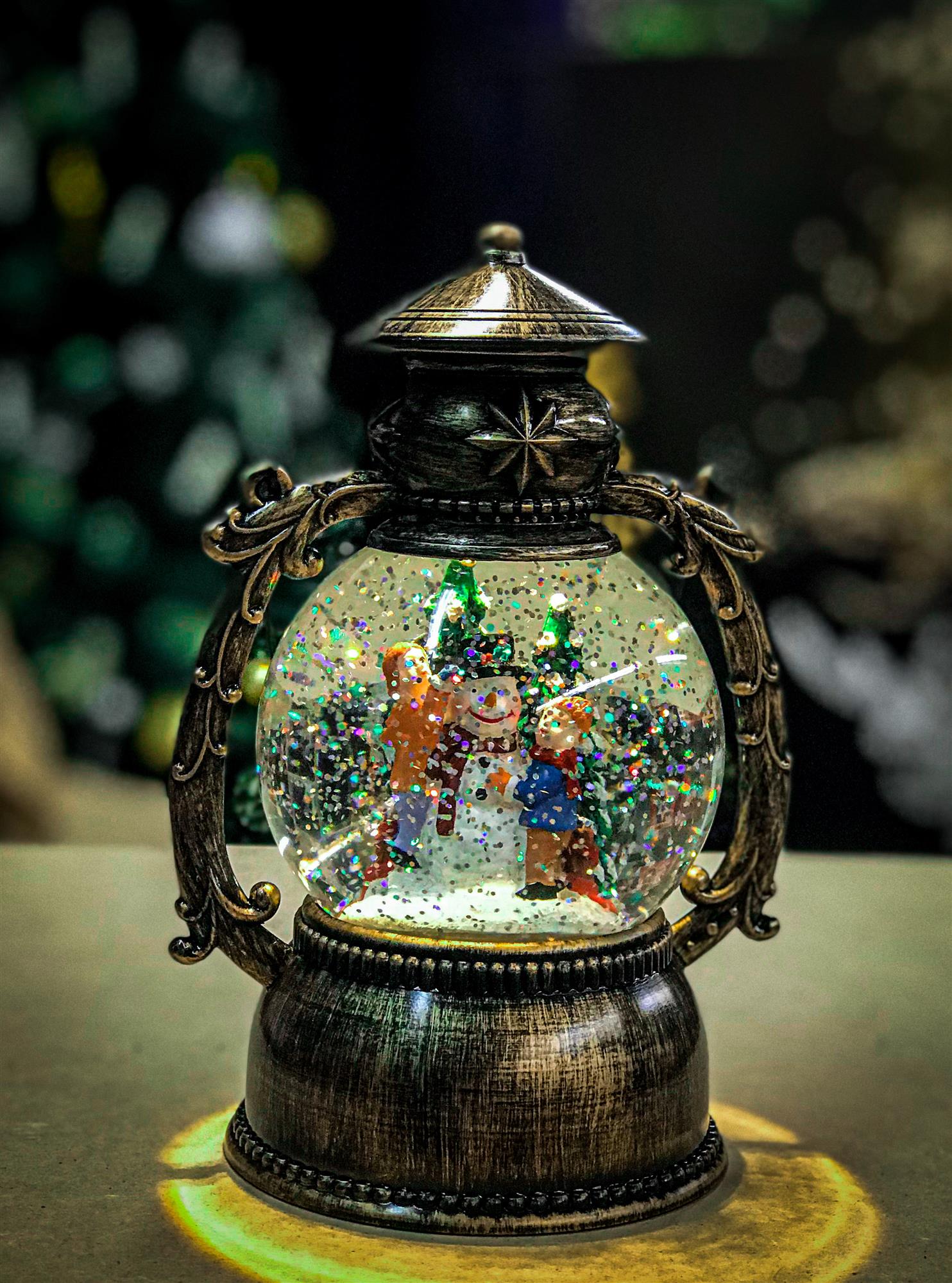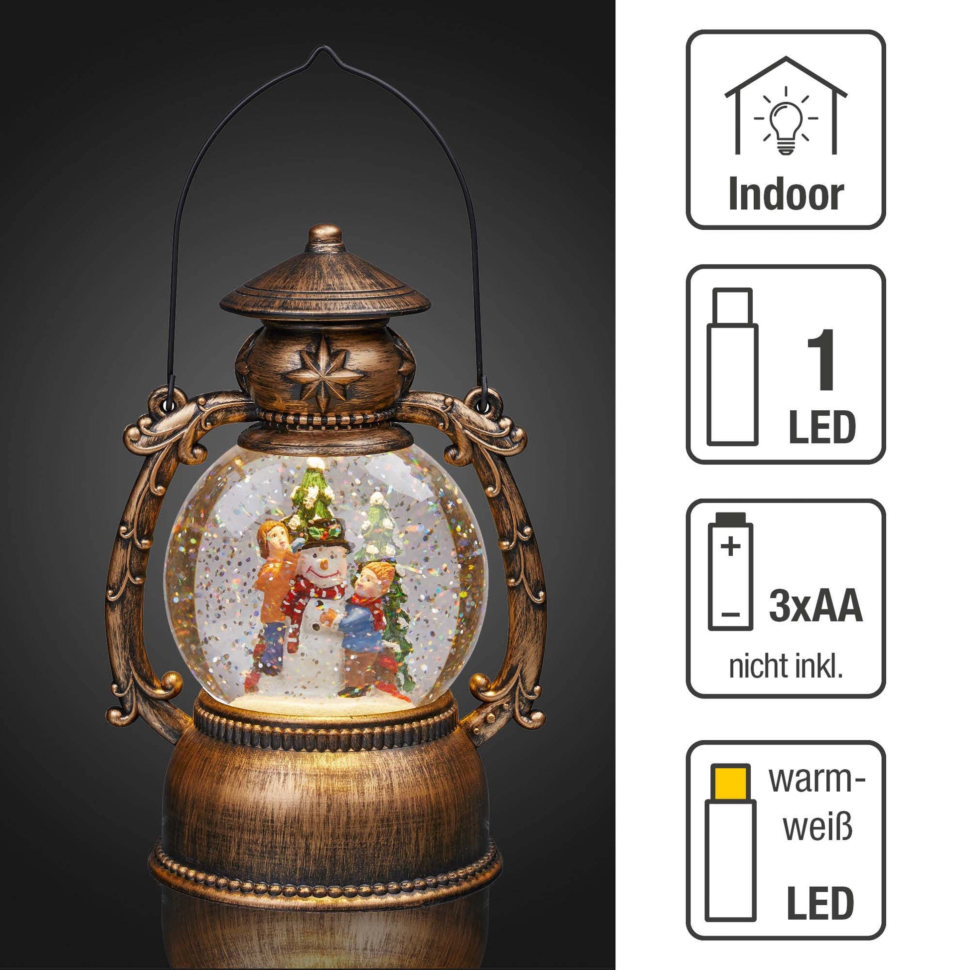 LED-Wasser-Kugellaterne mit Schneemann und Weihnachtsbaum, batteriebetrieben