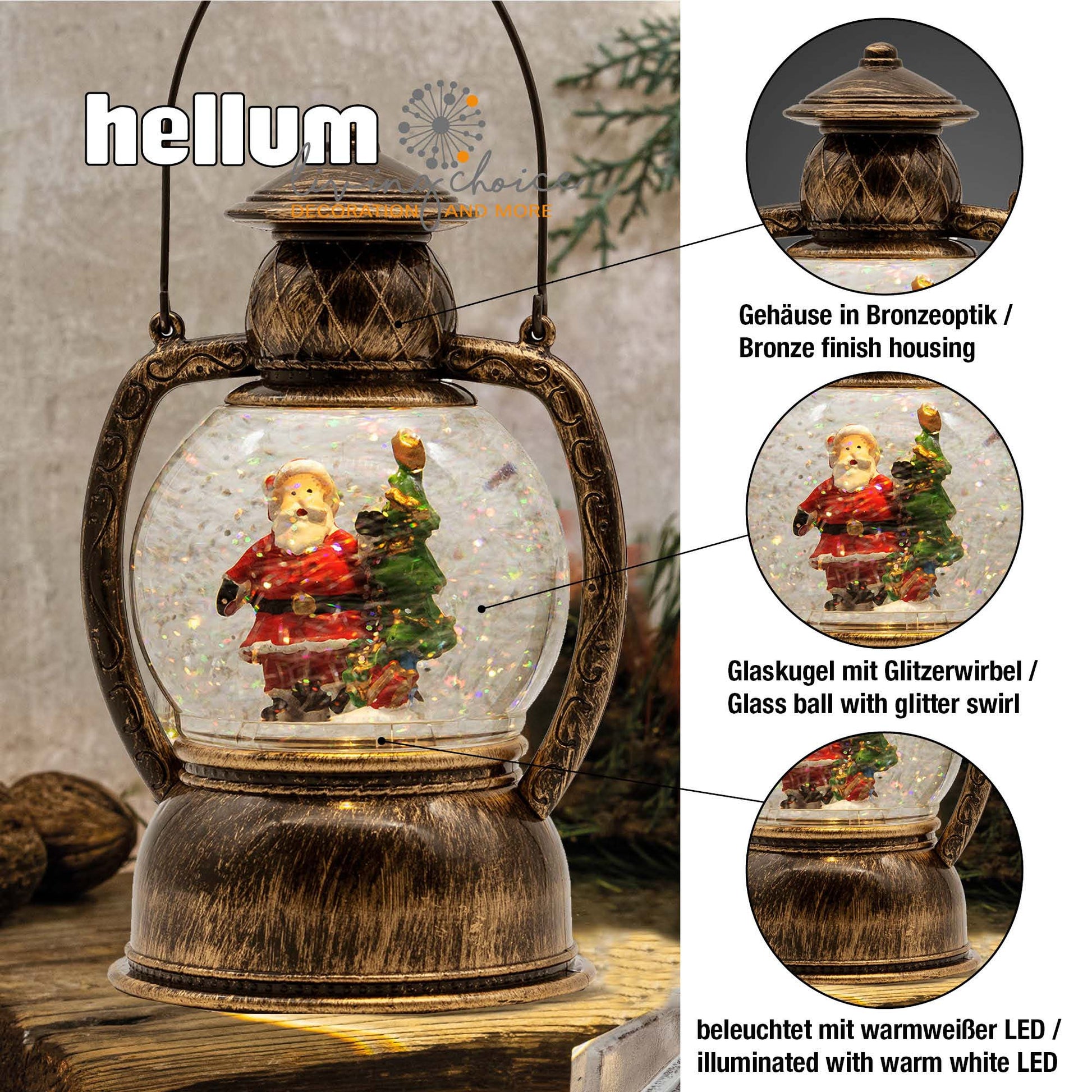 LED-Wasser-Kugellaterne mit Weihnachtsmann und Weihnachtsbaum, batteriebetrieben