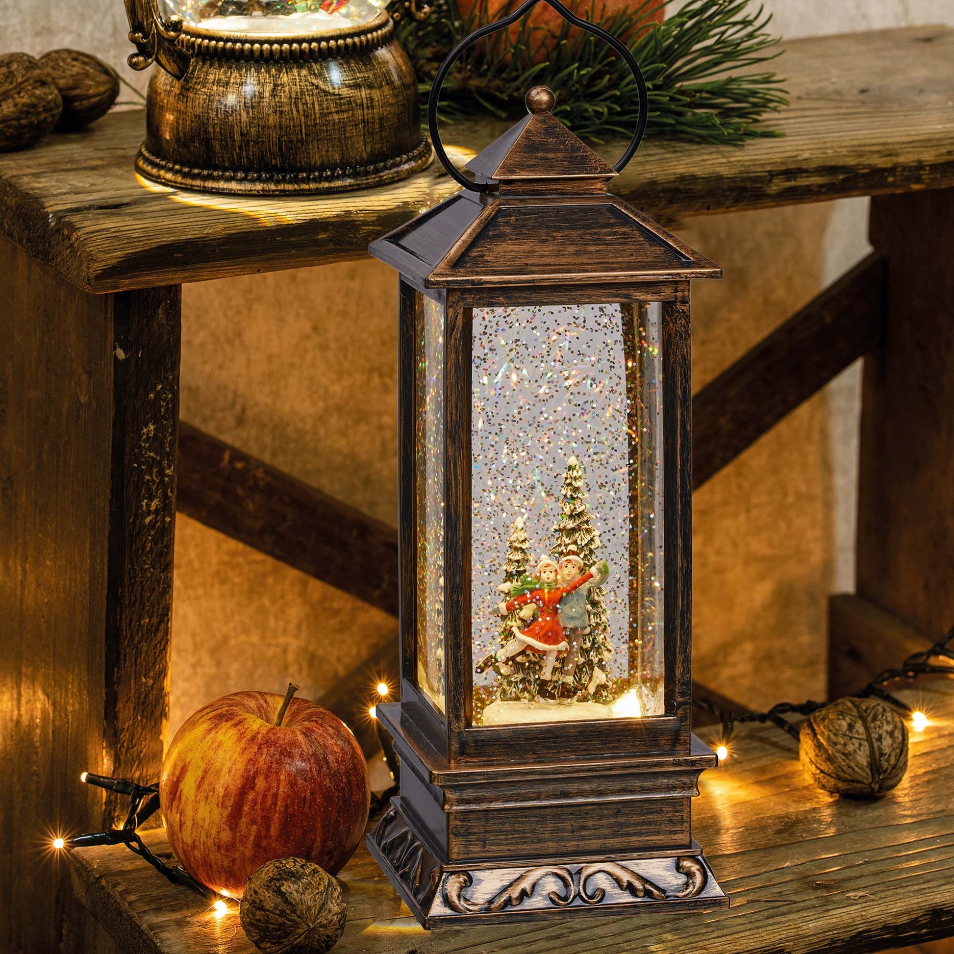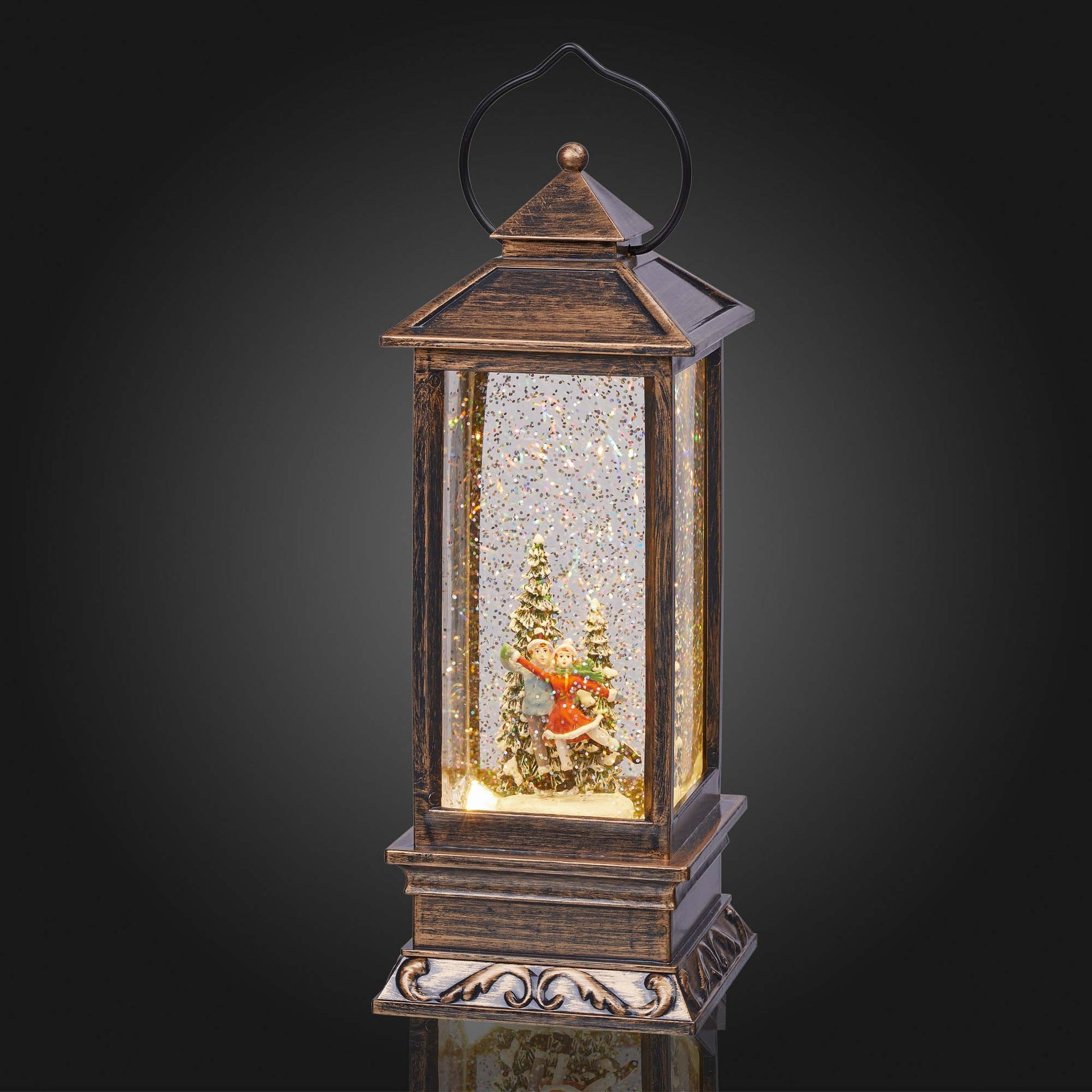 LED-Wasser-Turmlaterne mit Eislaufpaar, batteriebetrieben