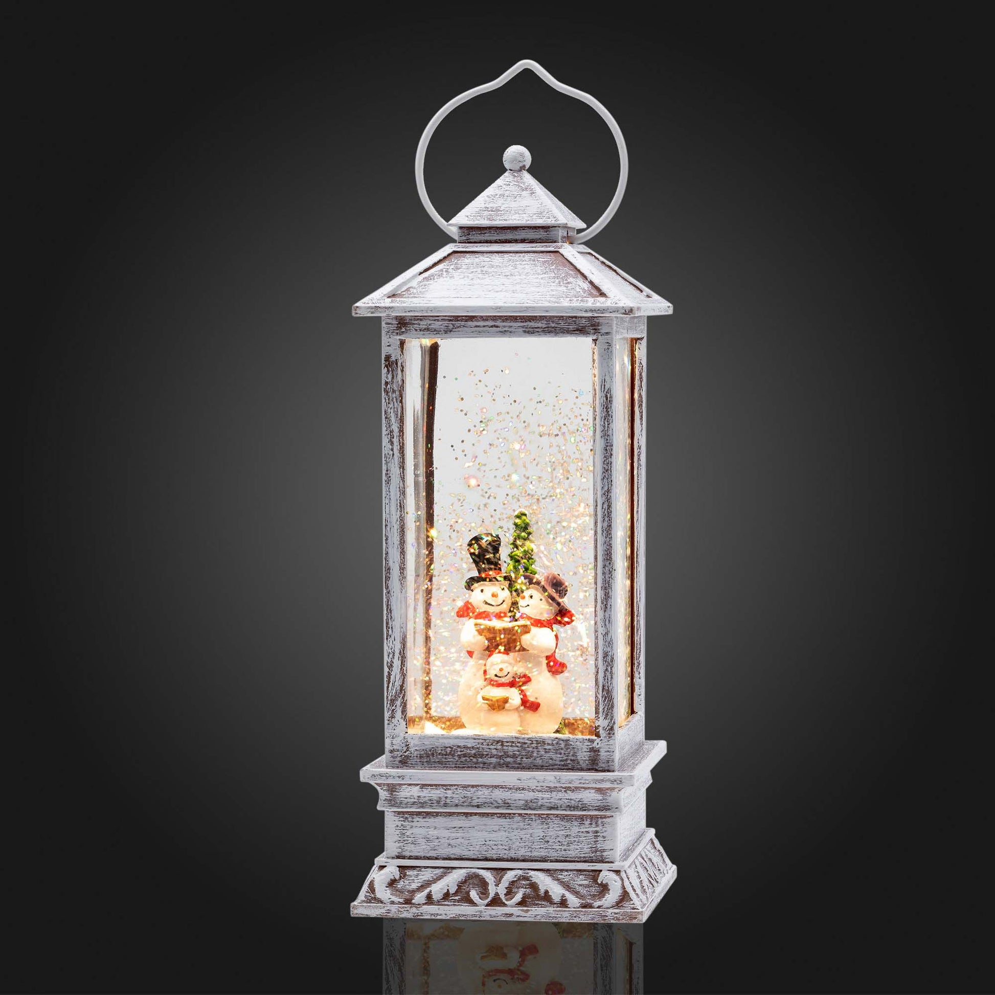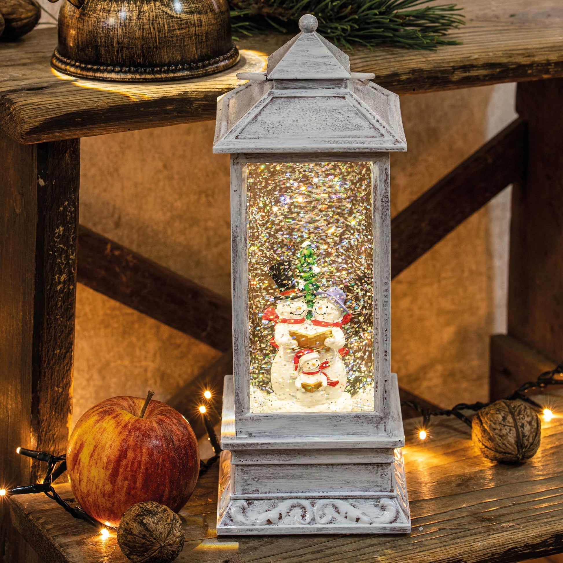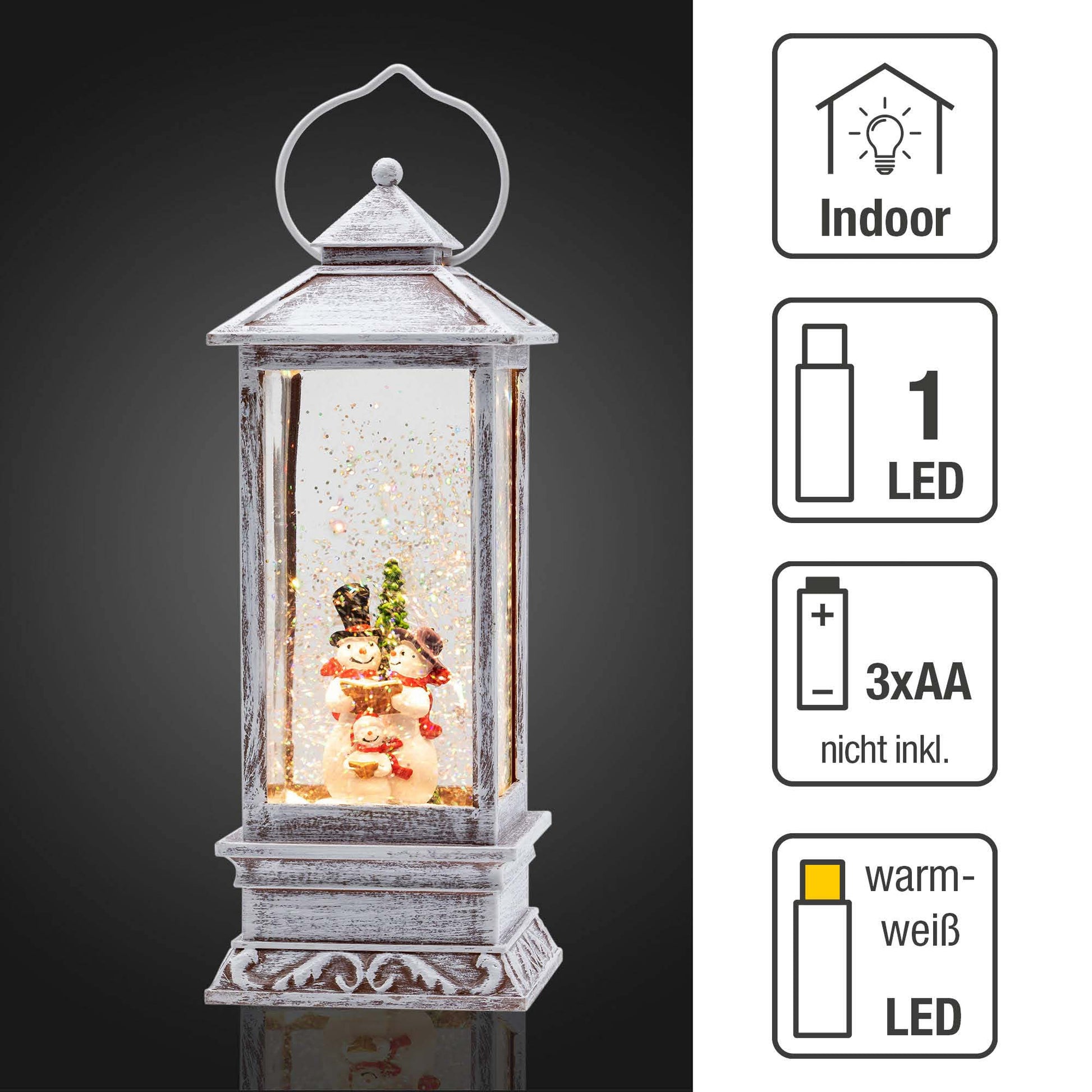 LED-Wasser-Turmlaterne, weiß, mit Schneemann-Familie, batteriebetrieben