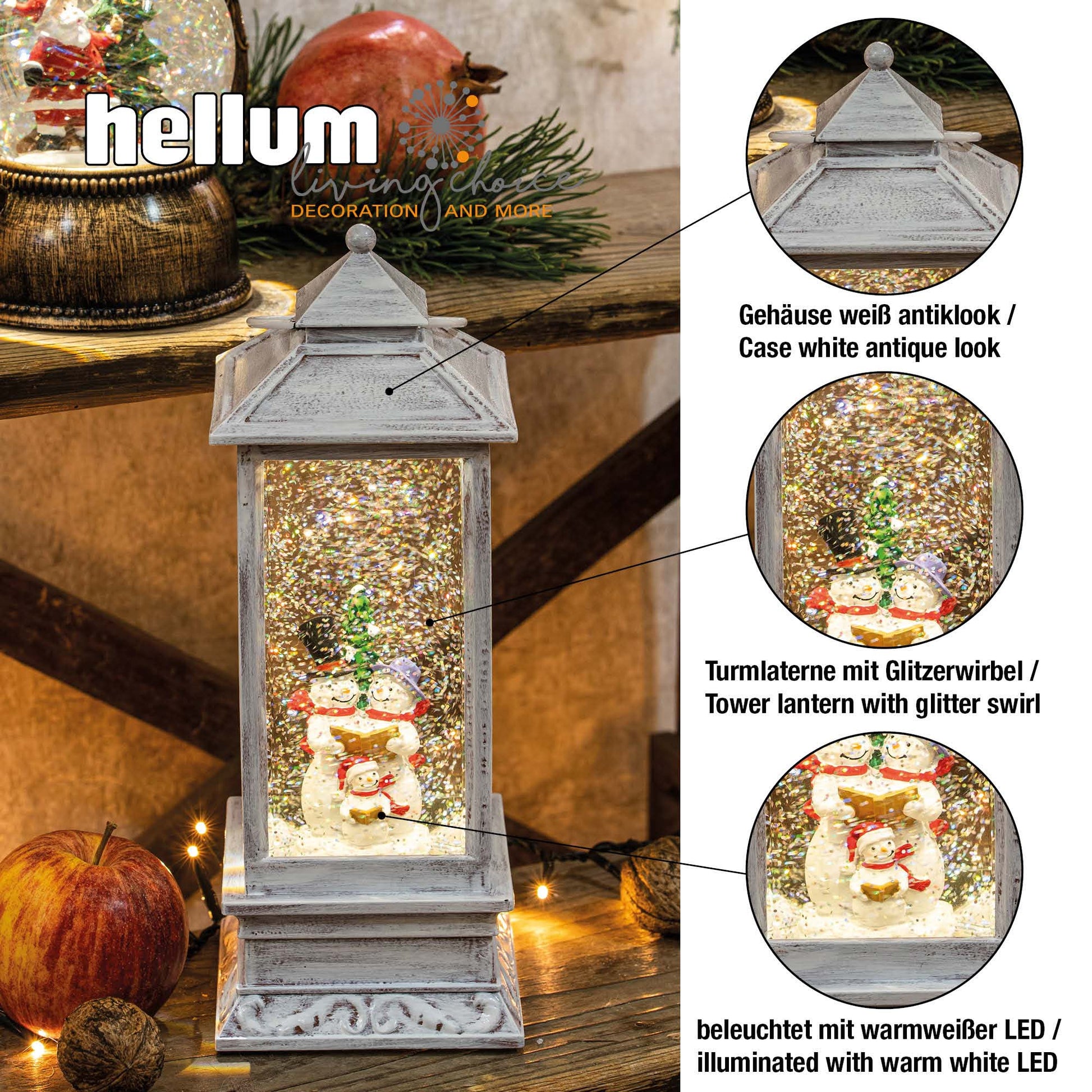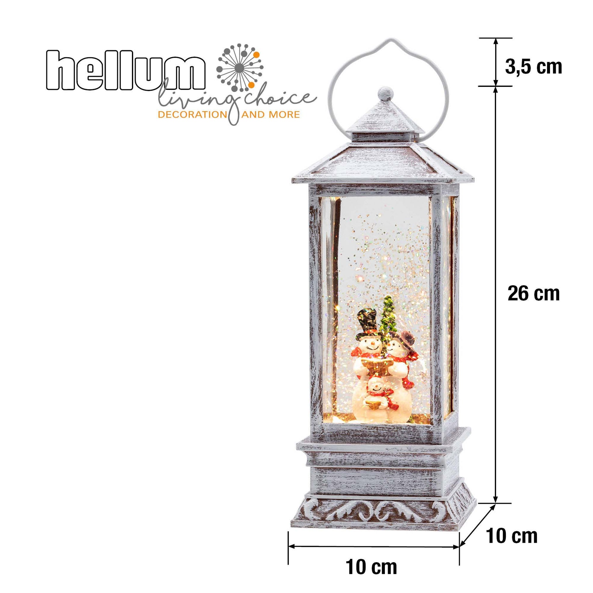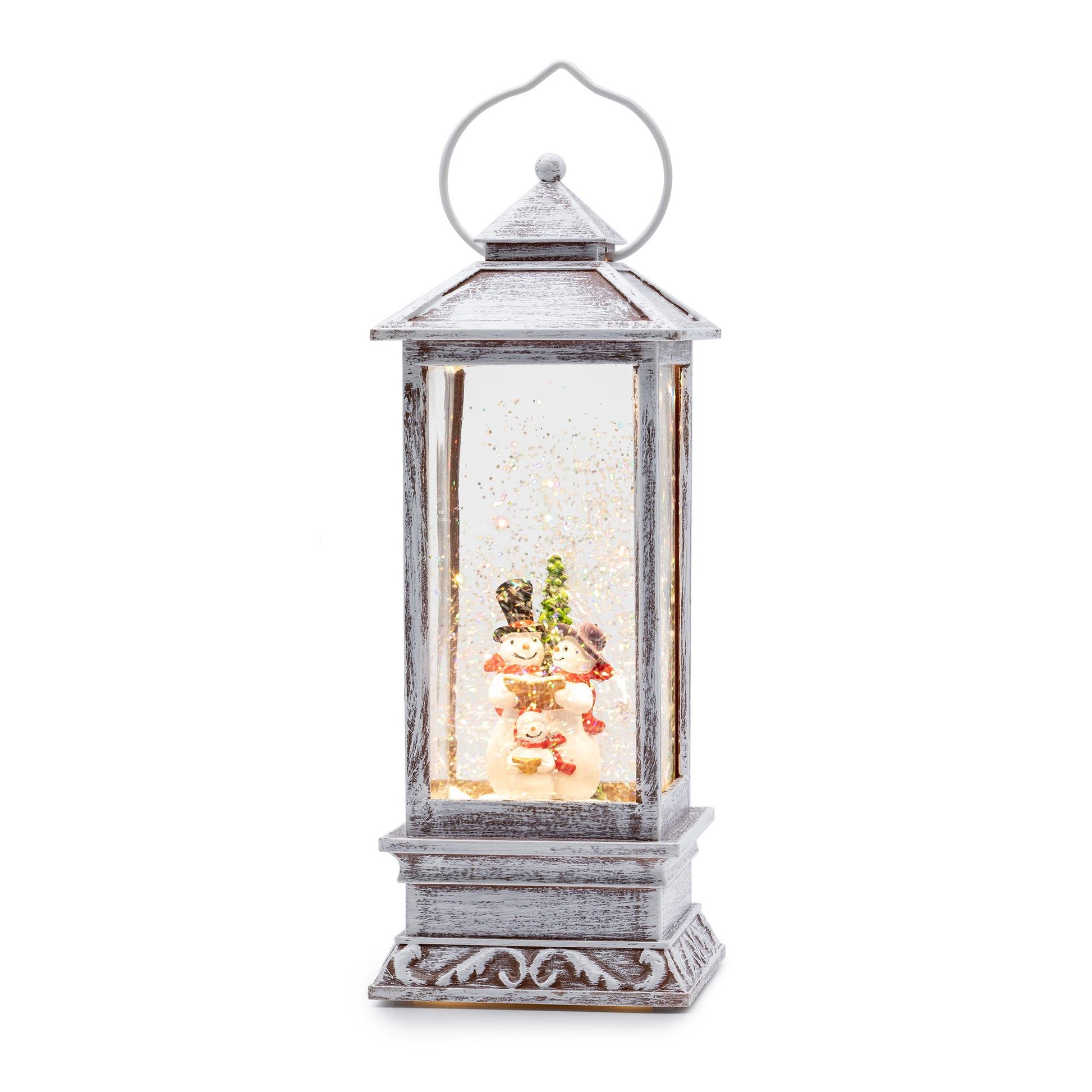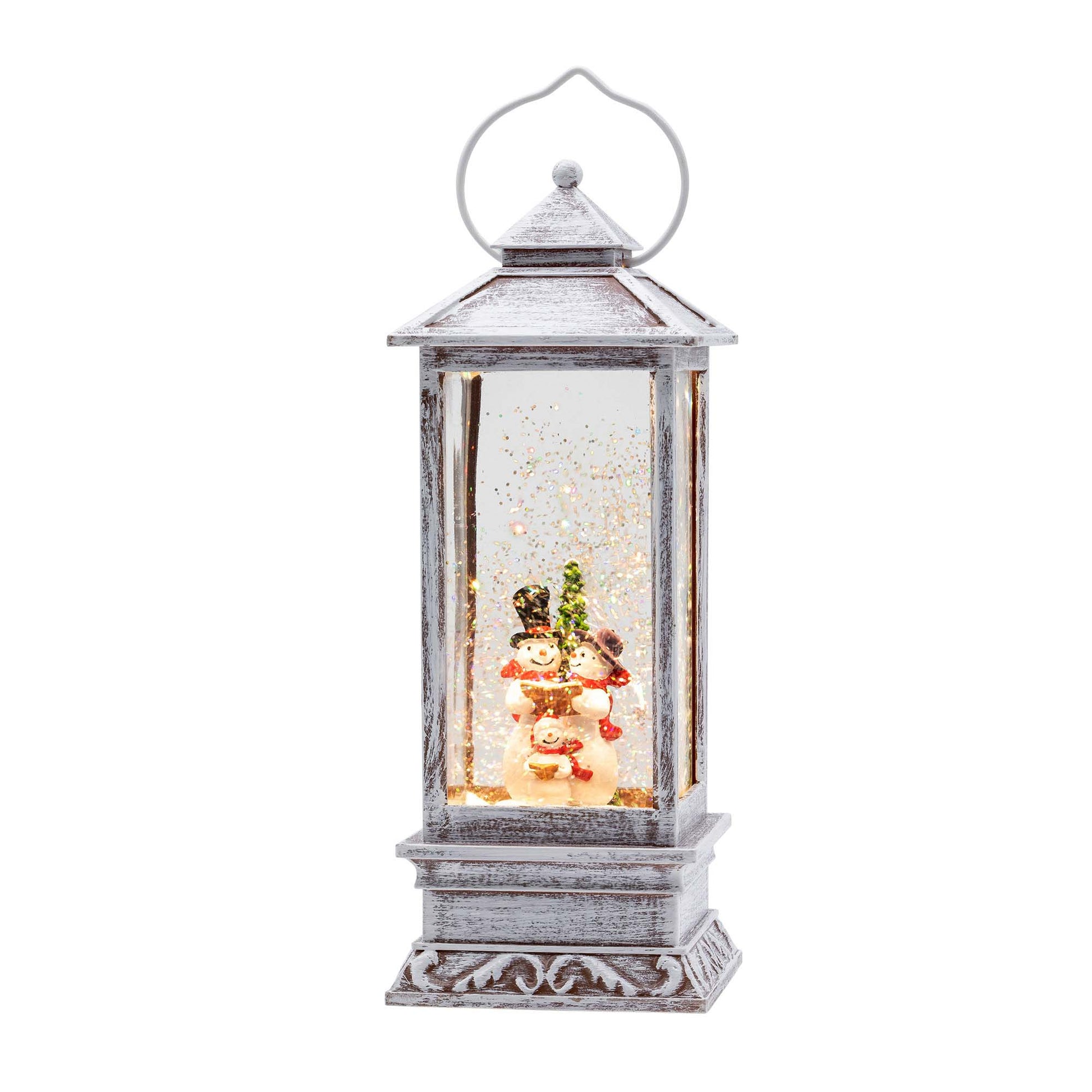 LED-Wasser-Turmlaterne, weiß, mit Schneemann-Familie, batteriebetrieben