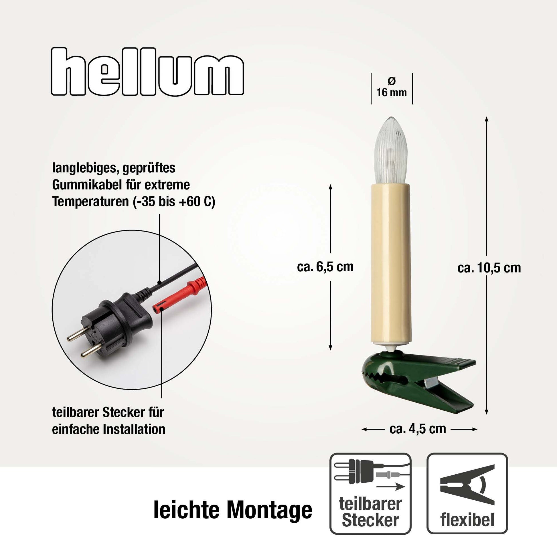 Die praktische Aufteilung dank teilbarem Stecker und der großzügige Abstand von 70 cm zwischen den Kerzen machen das Schmücken deines Baumes besonders einfach. Du erhältst im Handumdrehen eine gleichmäßige, harmonische Beleuchtung, die deinen Weihnachtsbaum in ein strahlendes Zentrum der Festlichkeit verwandelt.