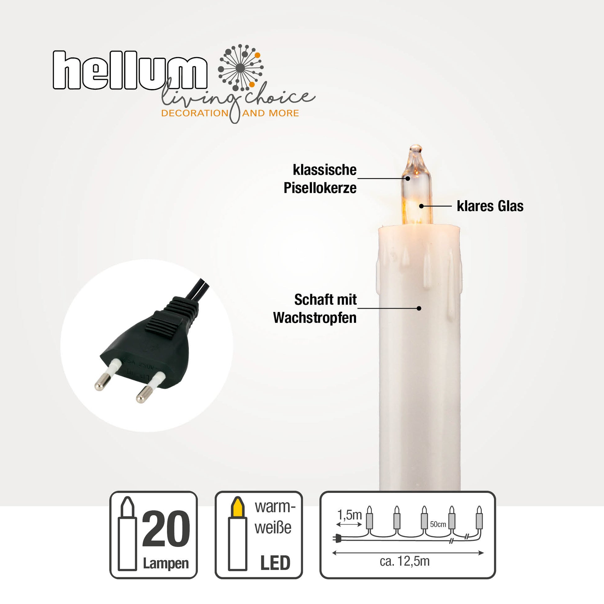 Lichterkette Mini mit 20 Schaftkerzen für innen 12,5m weiß 622010