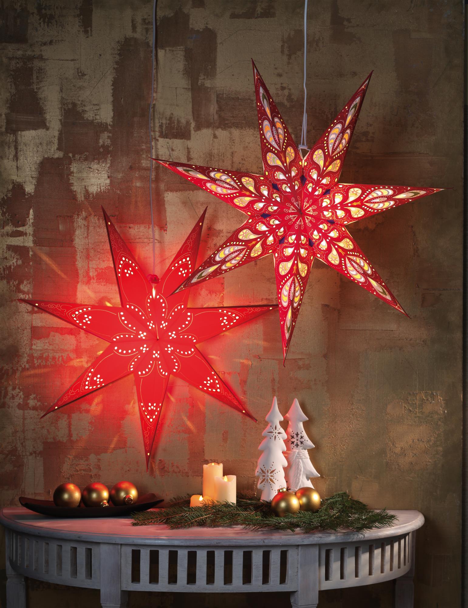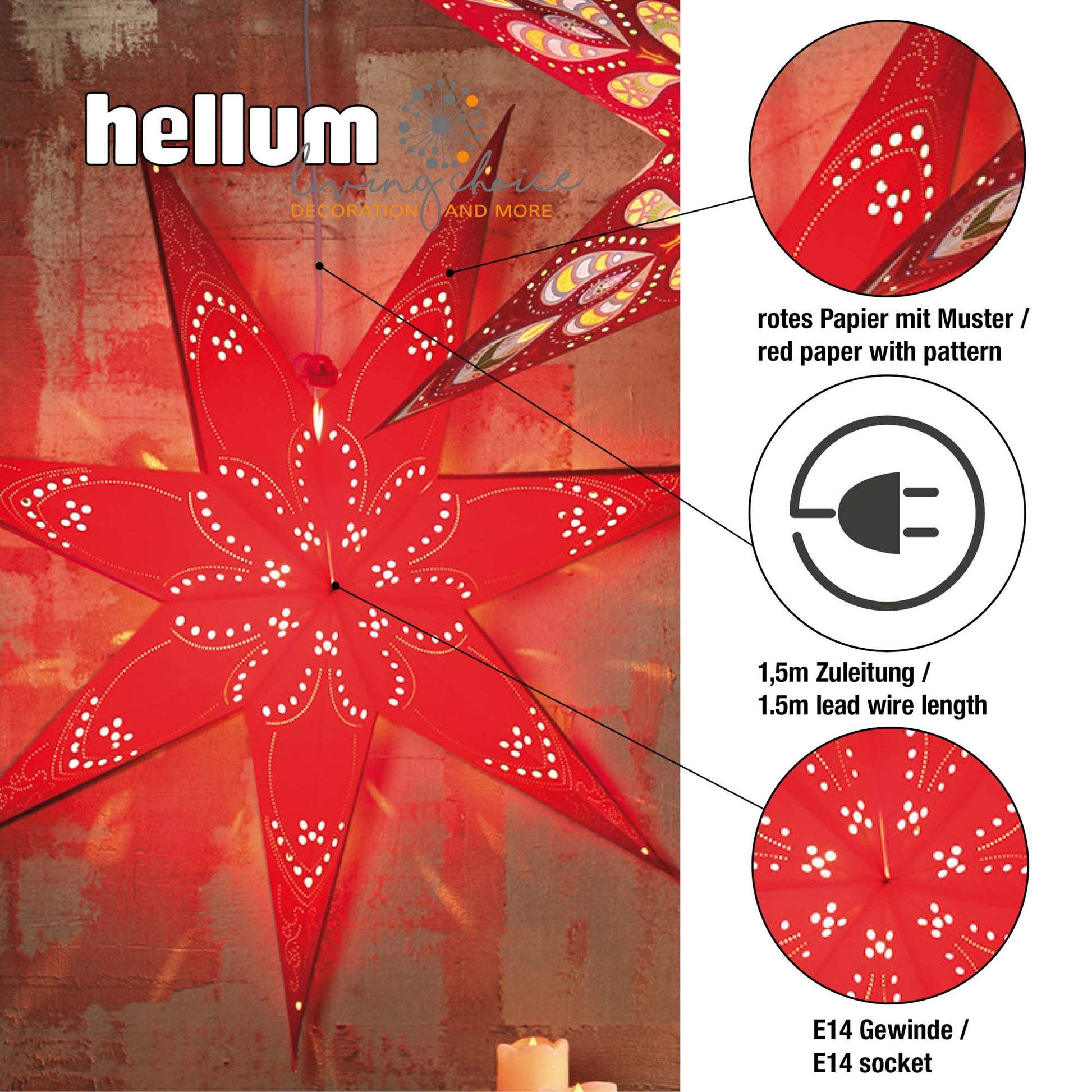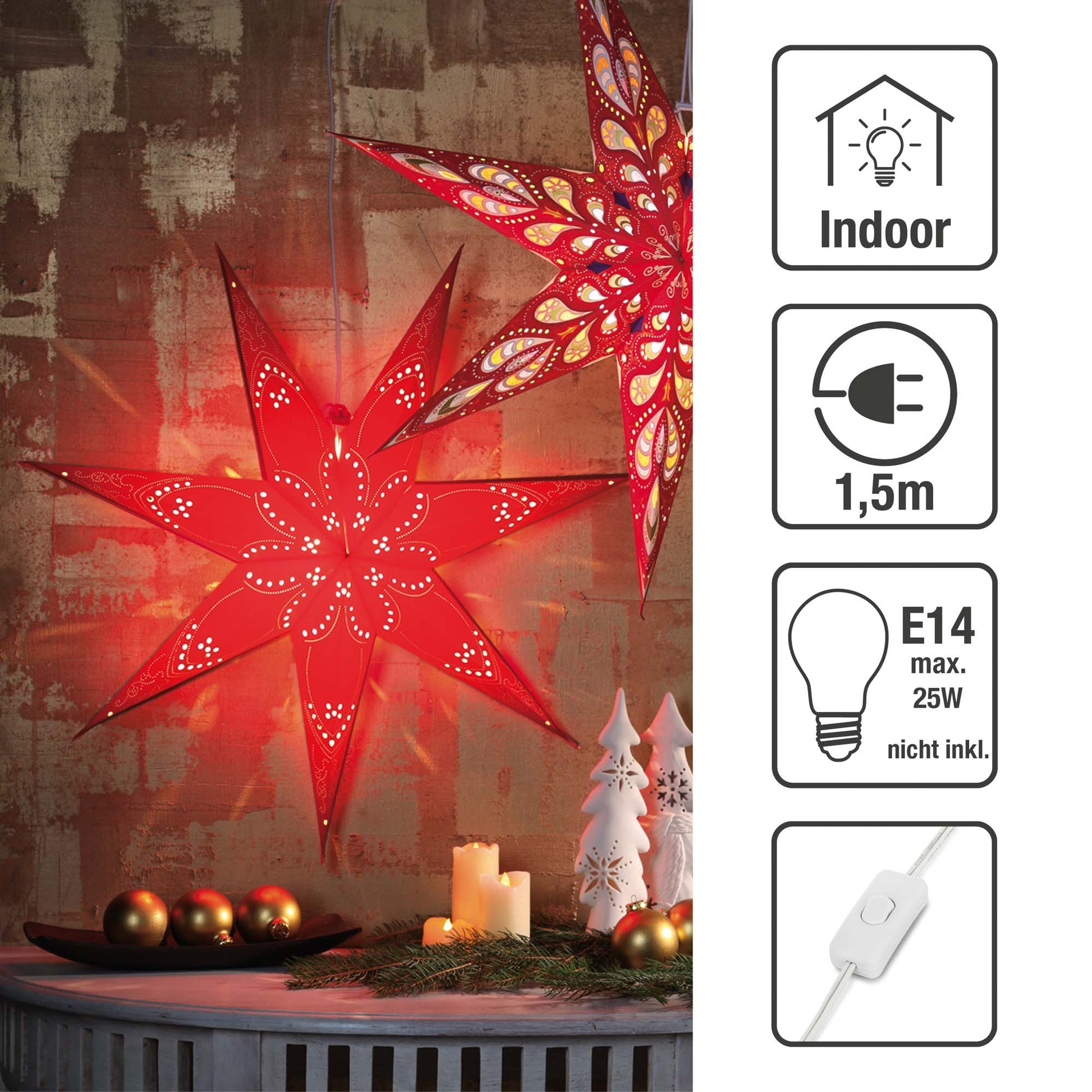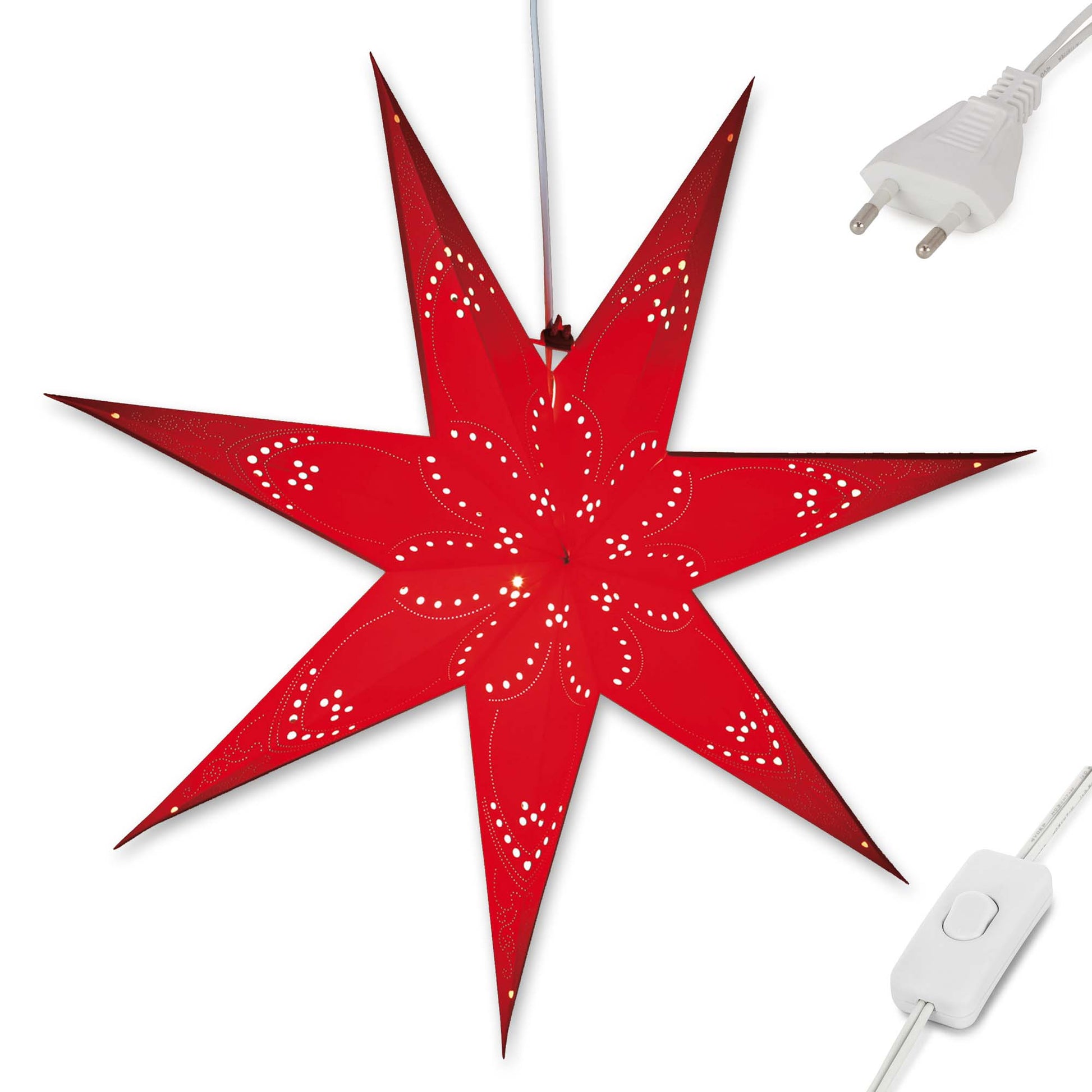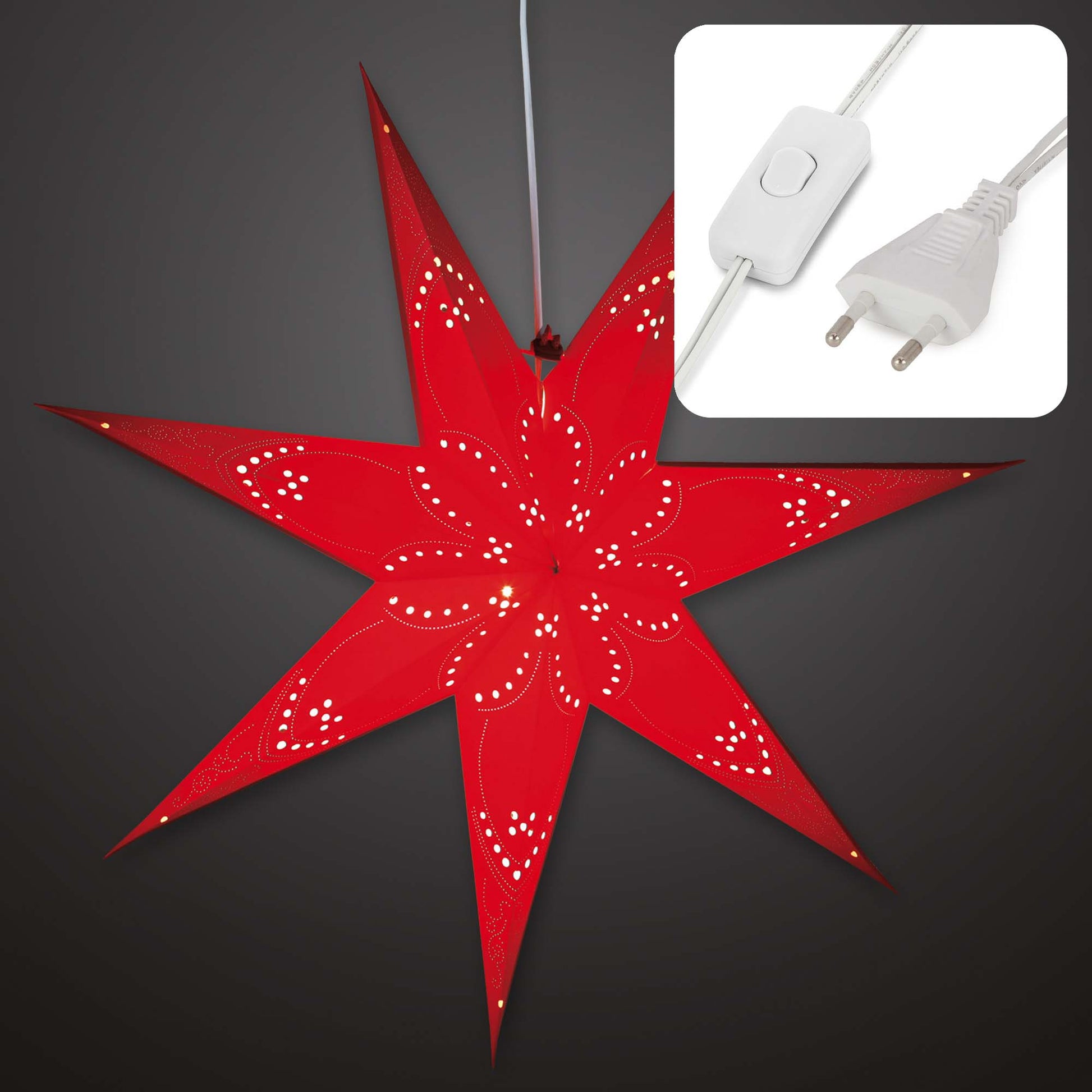 Papier-Stern, 5 zackig, mit Anschlußkabel, An/Aus Schalter, DIA 60cm