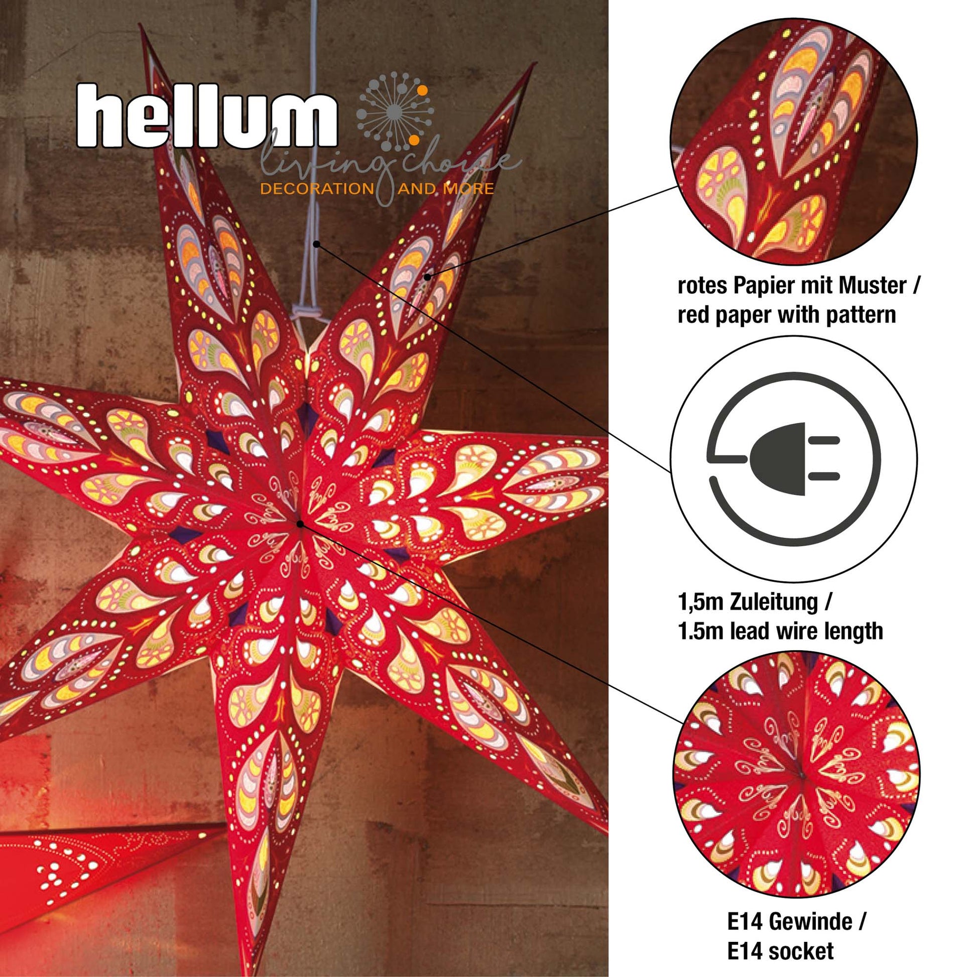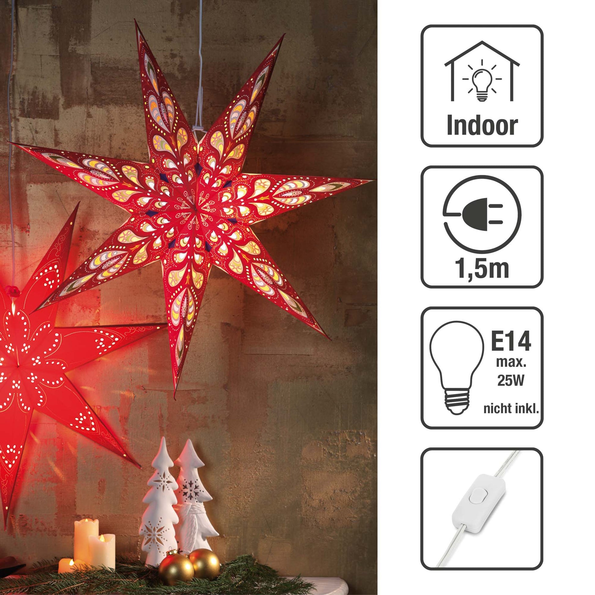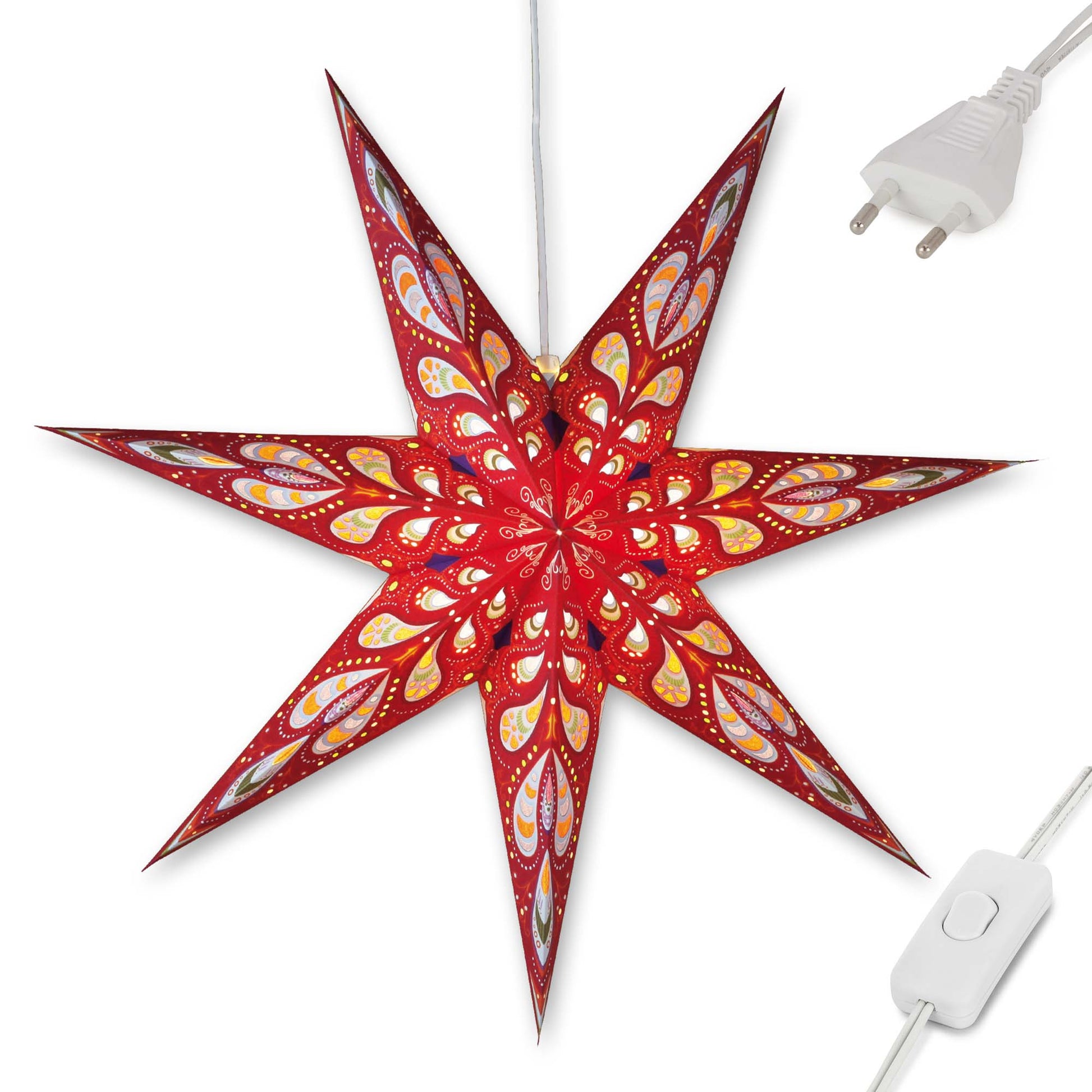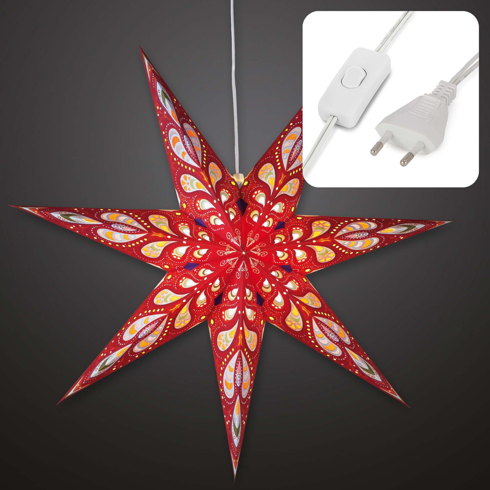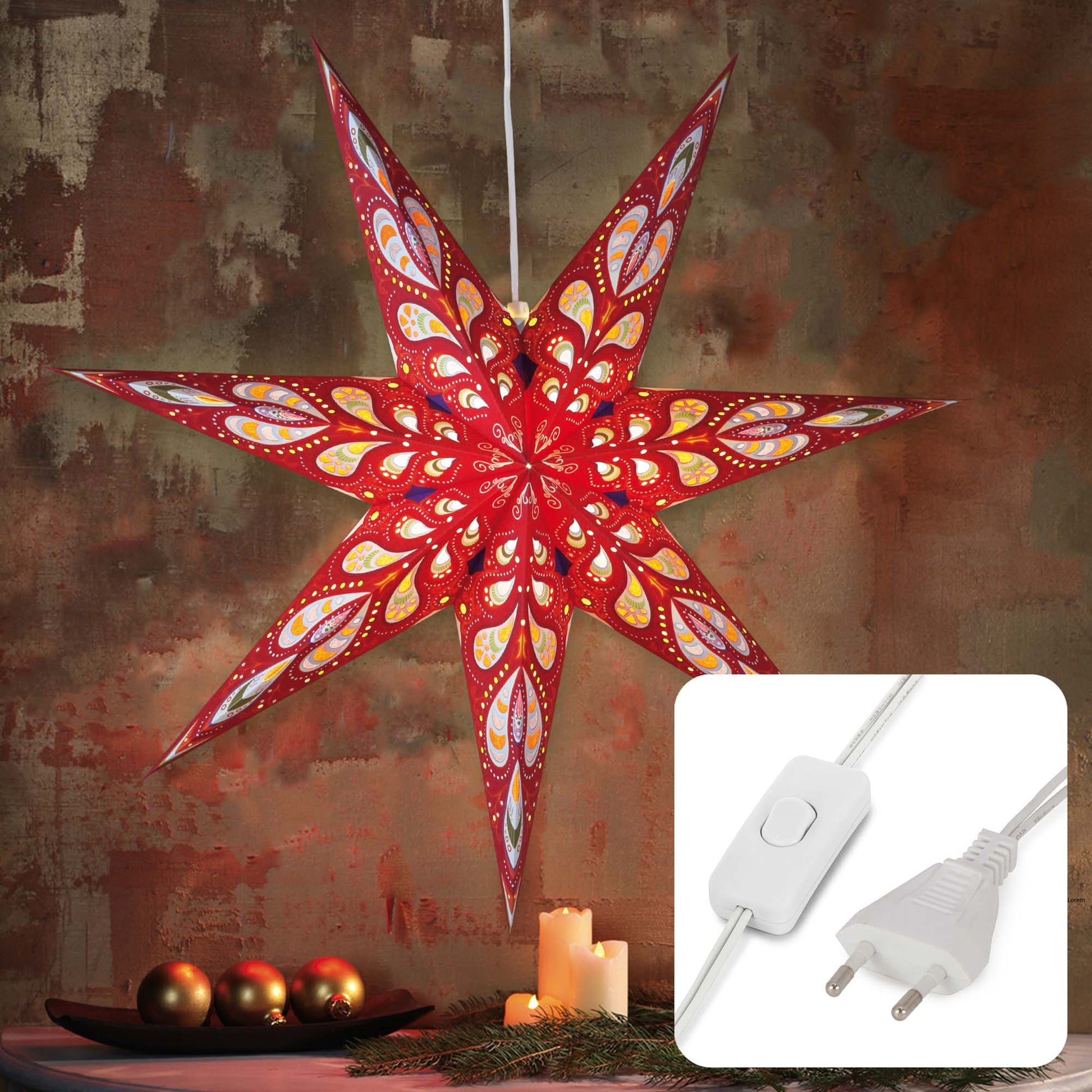 Papier-Stern, 7 zackig, mit Anschlußkabel, An/Aus Schalter, DIA 75cm