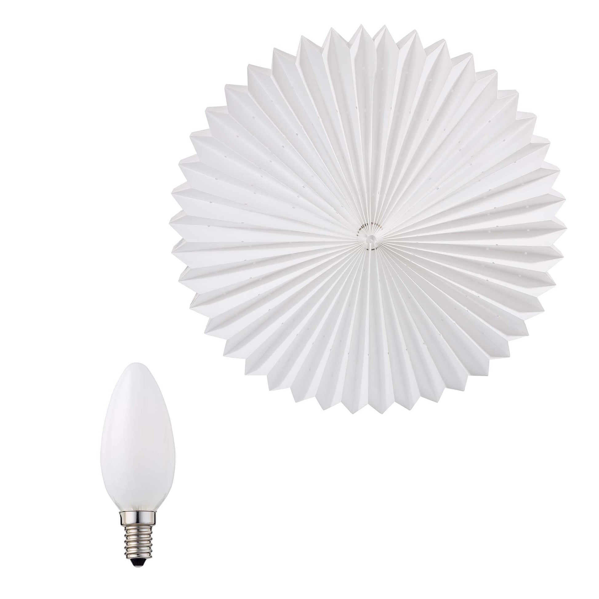 Papierlampion "Sunny", weiß, hängend, weißes Kabel, E14 Sockel, Ø 60 cm, für außen, inkl. Lampe