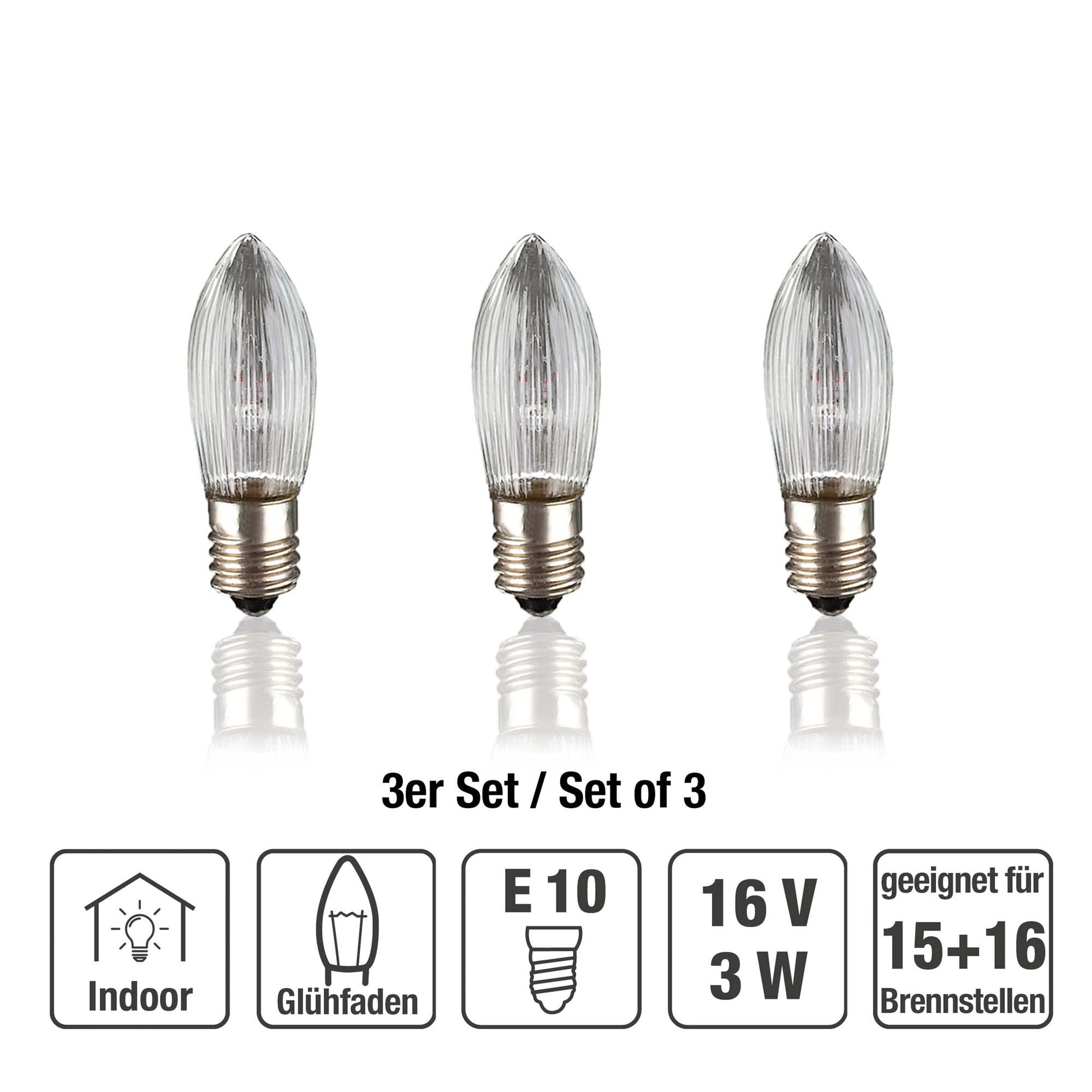 Riffelkerze, klar, 16 V / 3 W, 3er Blister