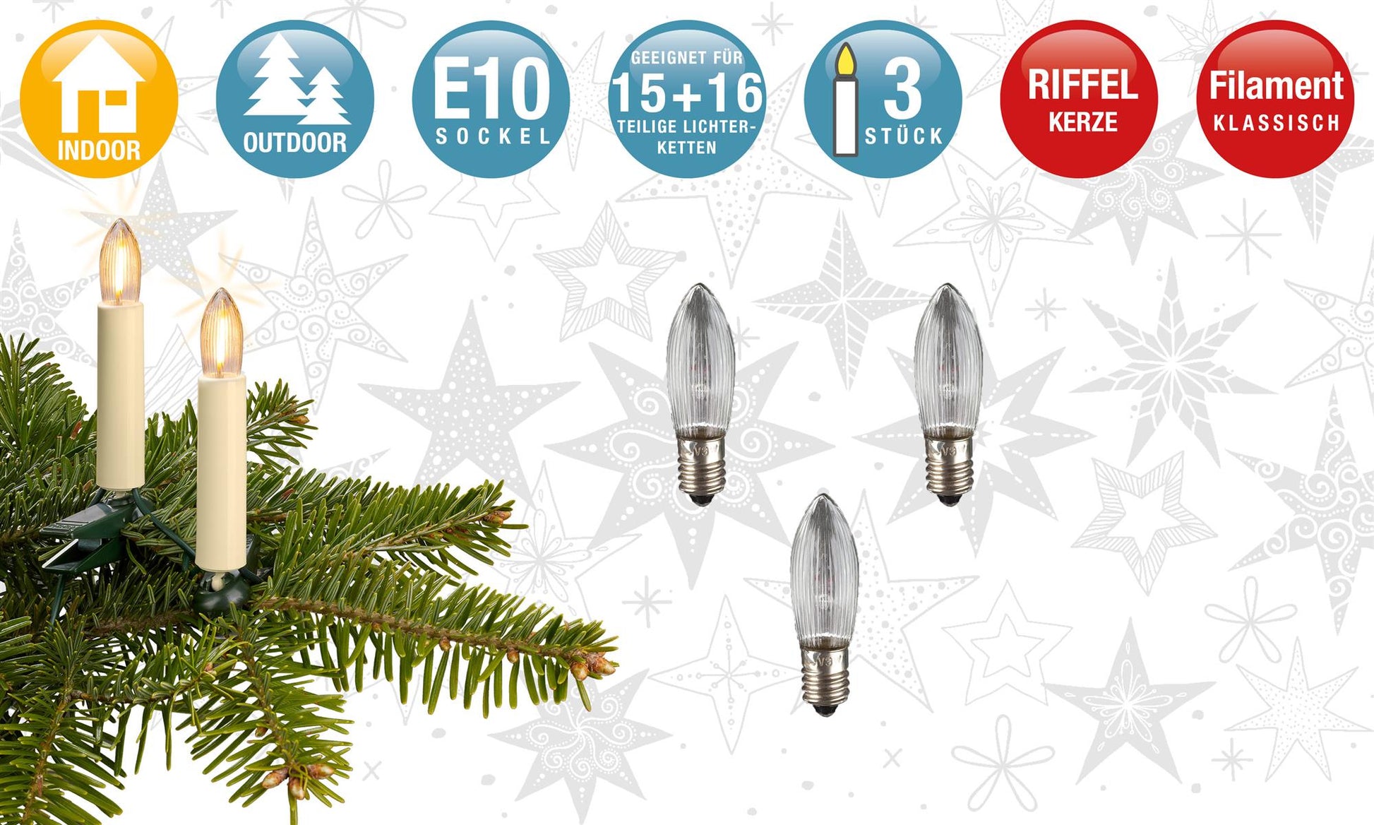 Unsere Ersatzbirnchen sind Marken- und Herstellerunabhängig und damit ideal zum Austausch für defekte Leuchtmittel in vielen Lichterketten geeignet. Häufig ist für eine nicht mehr vollständig funktionierende Lichterkette oder Schwibbogen ein defektes Leuchtmittel der Grund. Durch den Austausch der kaputten Birnchen können Sie die Weihnachtsbaumbeleuchtung kostengünstig in Stand setzen und das Weihnachtsfest genießen.