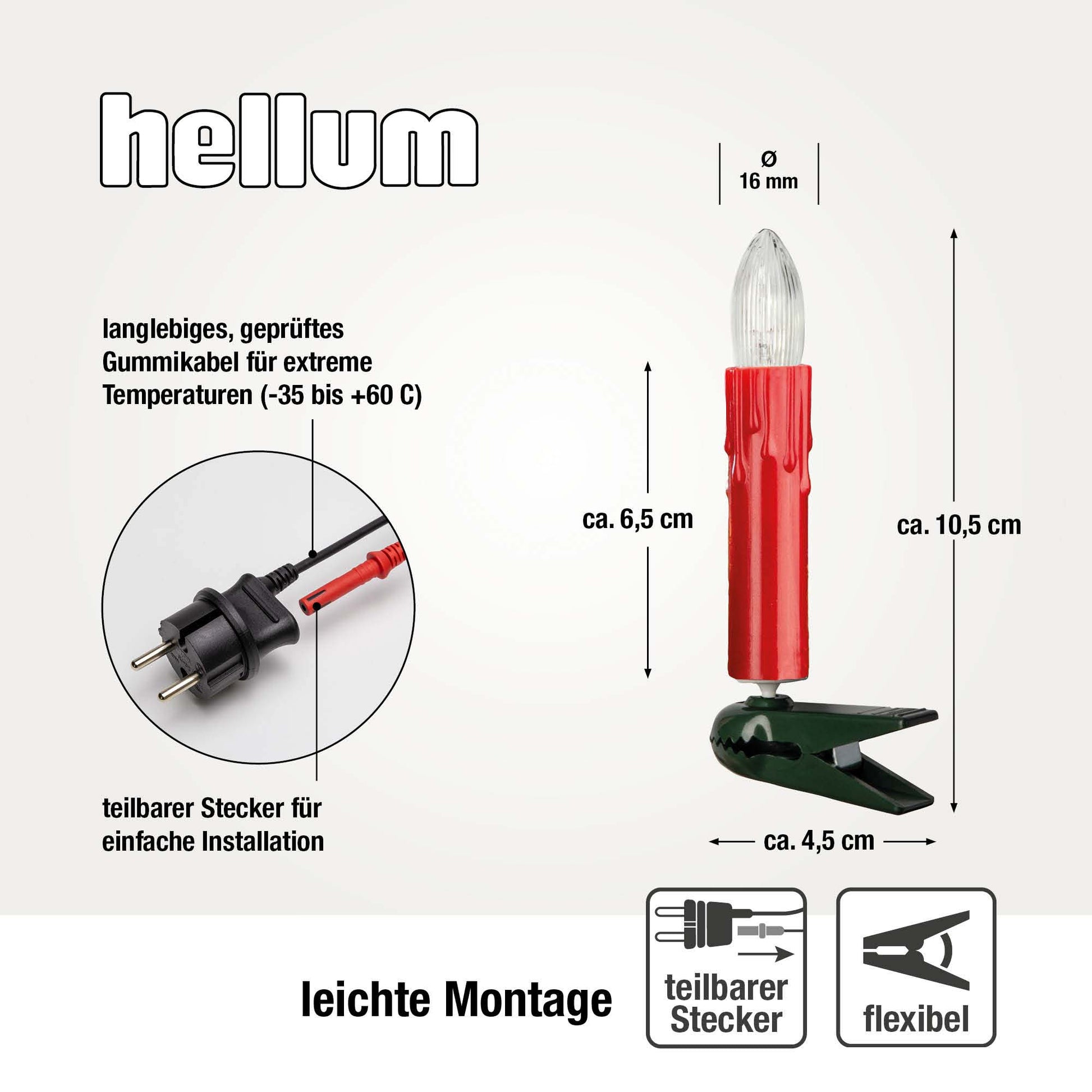 Die in Deutschland gefertigte Lichterkette steht für Sorgfalt, Qualität und eine lange Lebensdauer. Mithilfe der Klammern kannst du die Kerzenlichterketter einfach anbringen und gleichmäßig im Baum verteilen. Der teilbare Stecker macht das Aufhängen besonders unkompliziert – ganz ohne lästiges Entwirren.